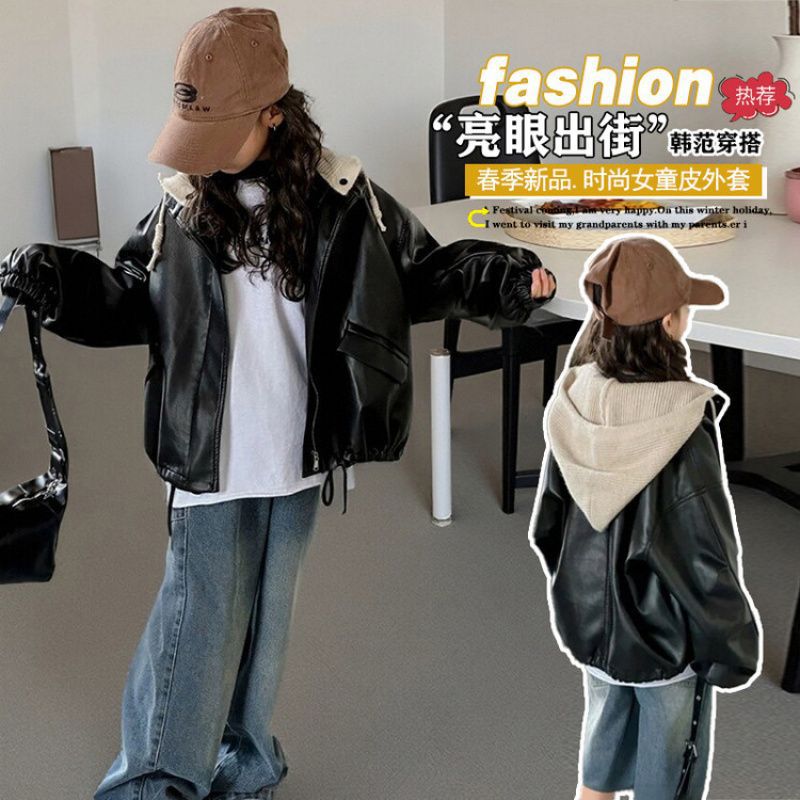 품질 원래 큰 재고 소녀 옷깃 가죽 자켓 봄 패션 가죽 자켓 어린이 캐주얼 짧은 가죽 자켓스토어 가기