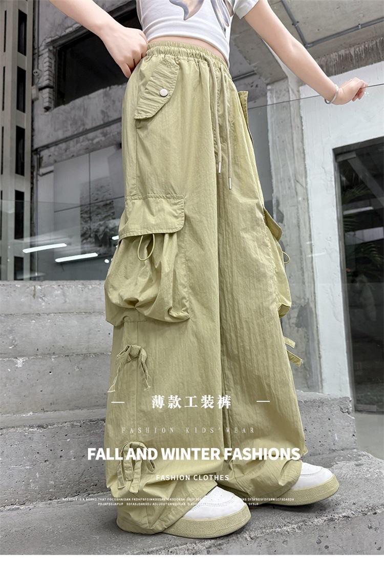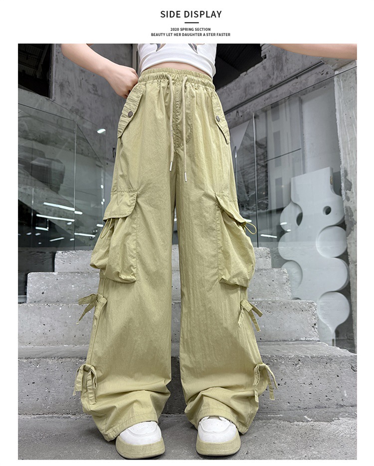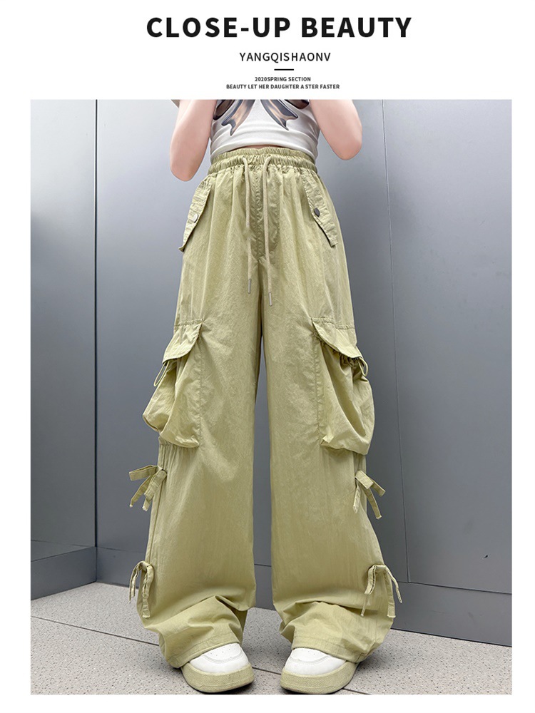 소녀 여름 활 바지 2025 새로운 어린이 캐주얼 바지 큰 어린이 유행 느슨한 넓은 다리 바지