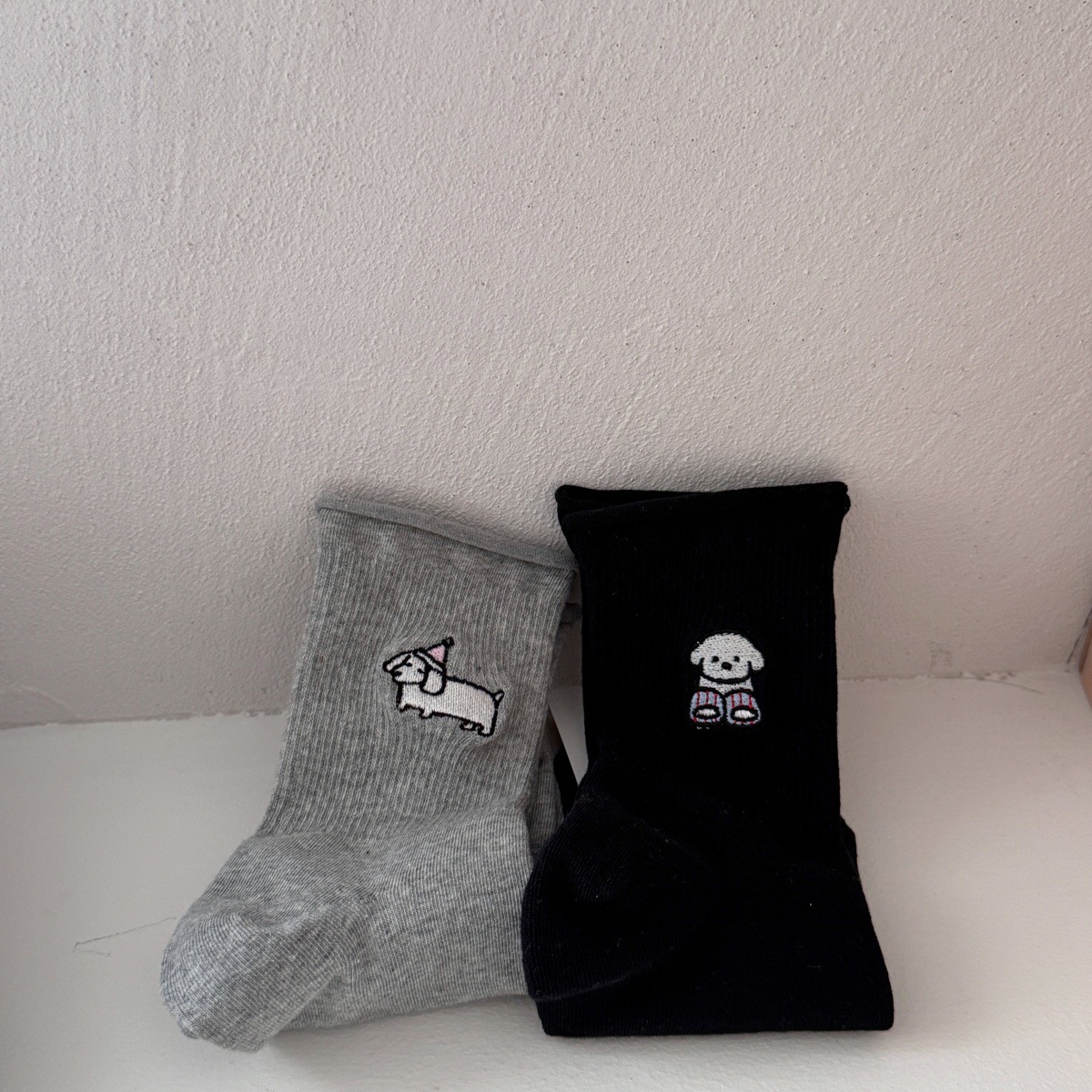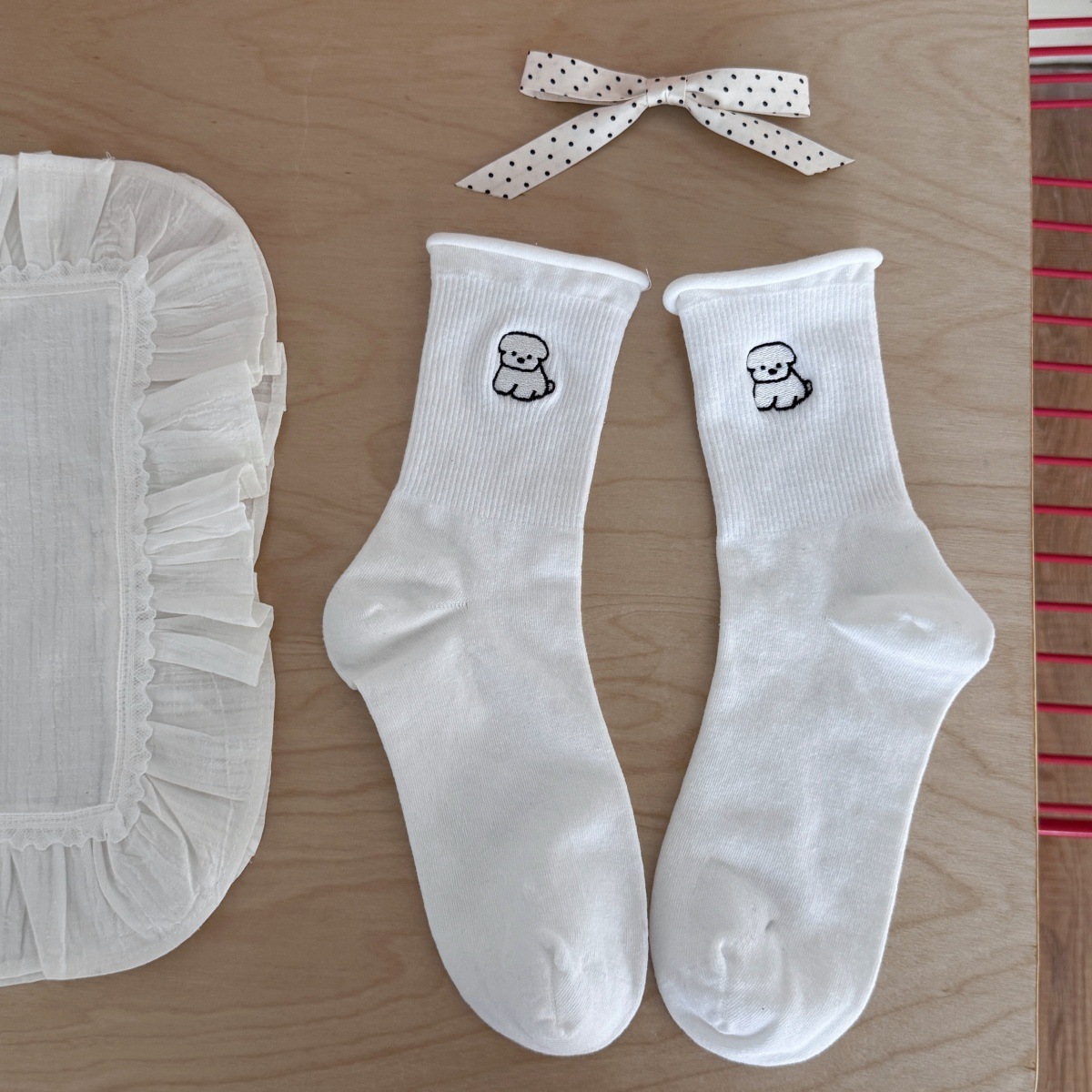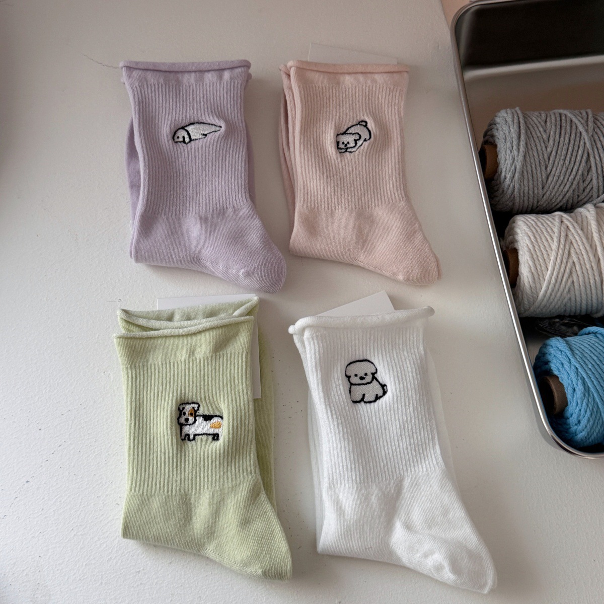 소녀들을 위한 귀여운 강아지 무봉제 양말, 신상 봄 가을 순면 양말, 만능 만화 일본풍 롤업 테두리 편안한 면 양말