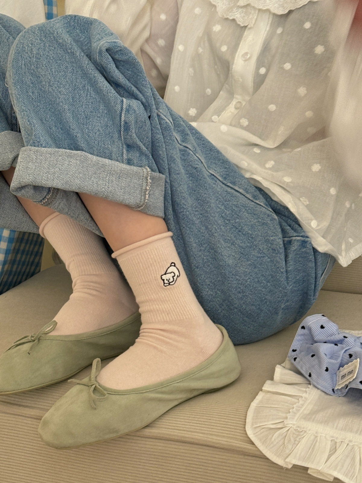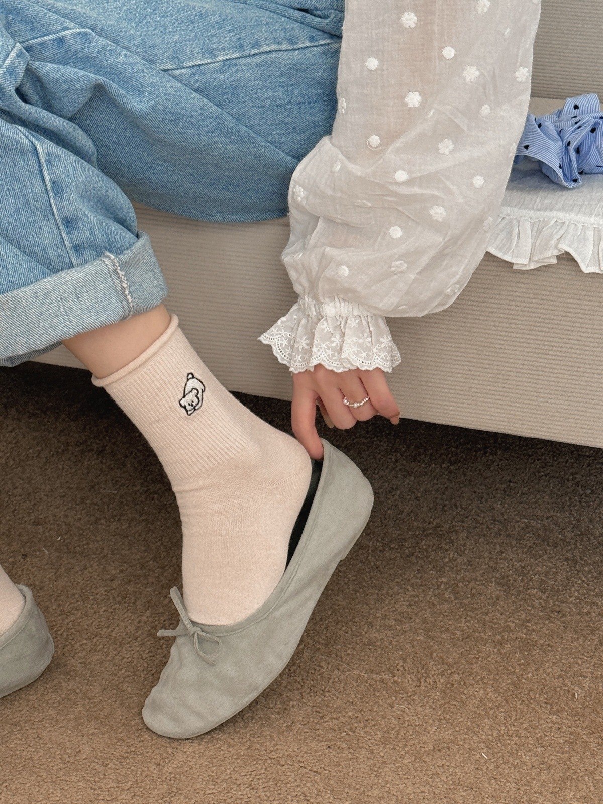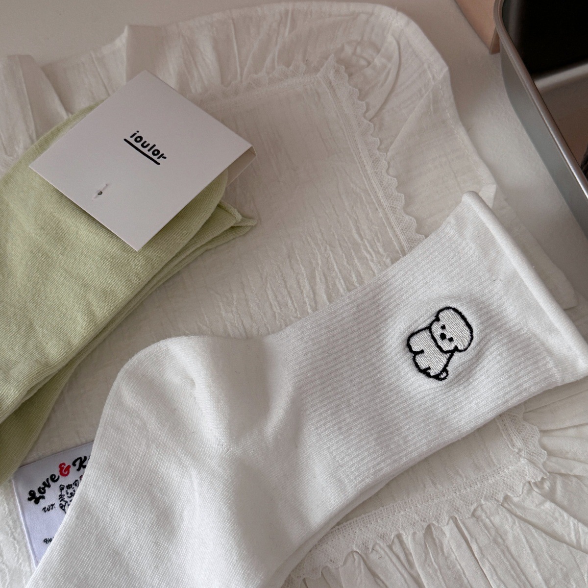 소녀들을 위한 귀여운 강아지 무봉제 양말, 신상 봄 가을 순면 양말, 만능 만화 일본풍 롤업 테두리 편안한 면 양말