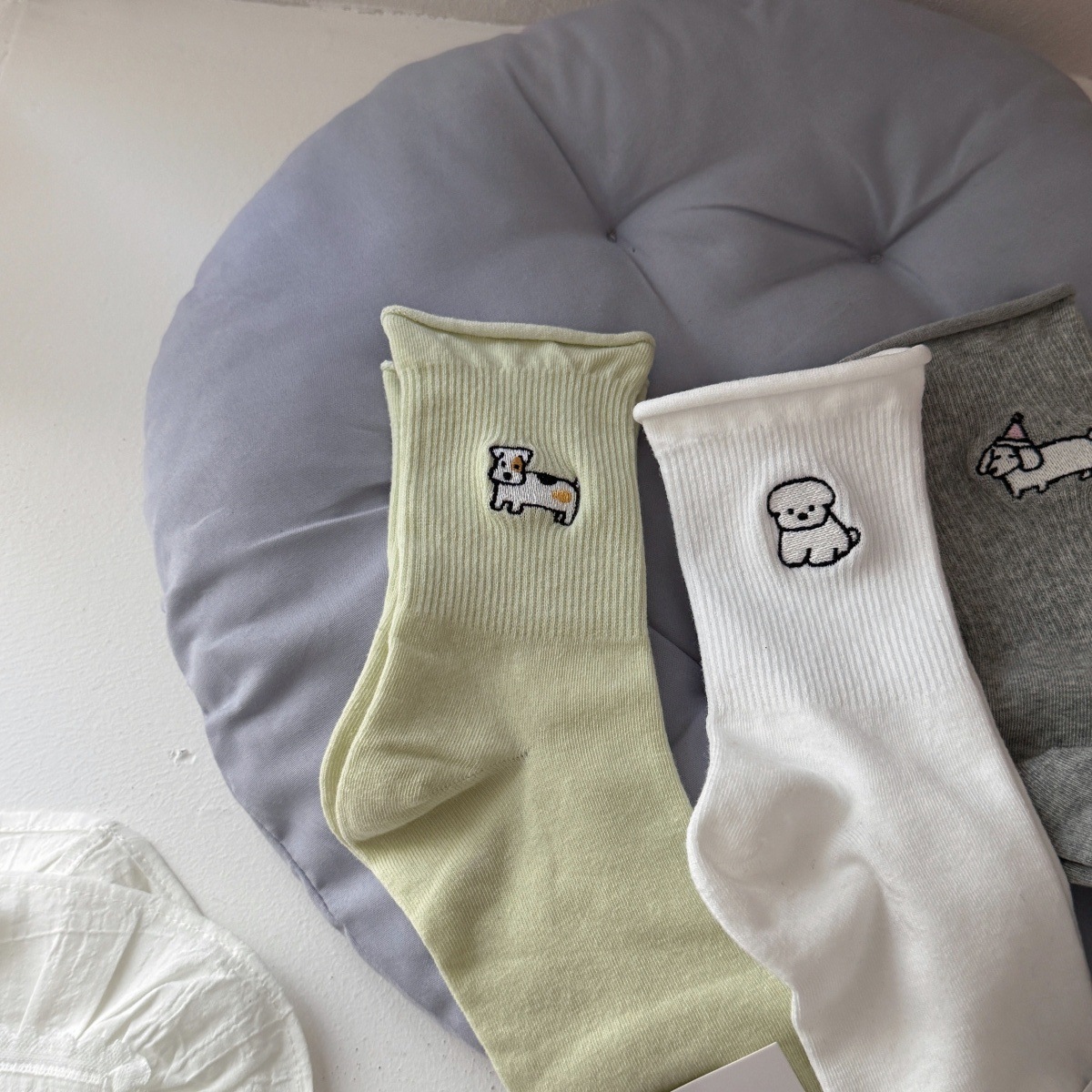 소녀들을 위한 귀여운 강아지 무봉제 양말, 신상 봄 가을 순면 양말, 만능 만화 일본풍 롤업 테두리 편안한 면 양말스토어 가기