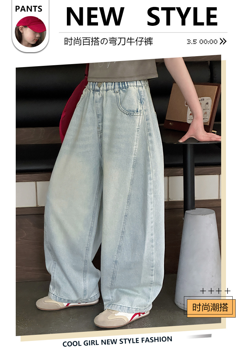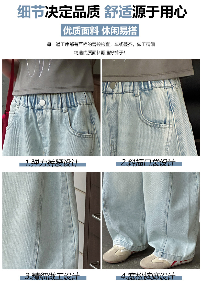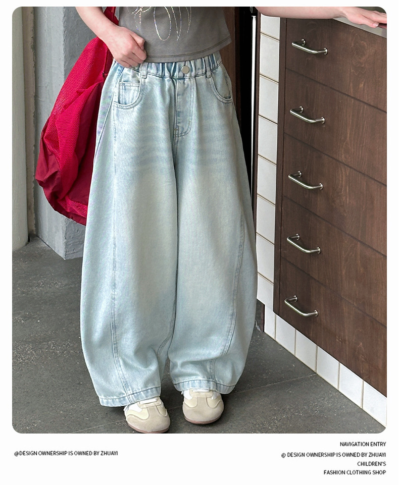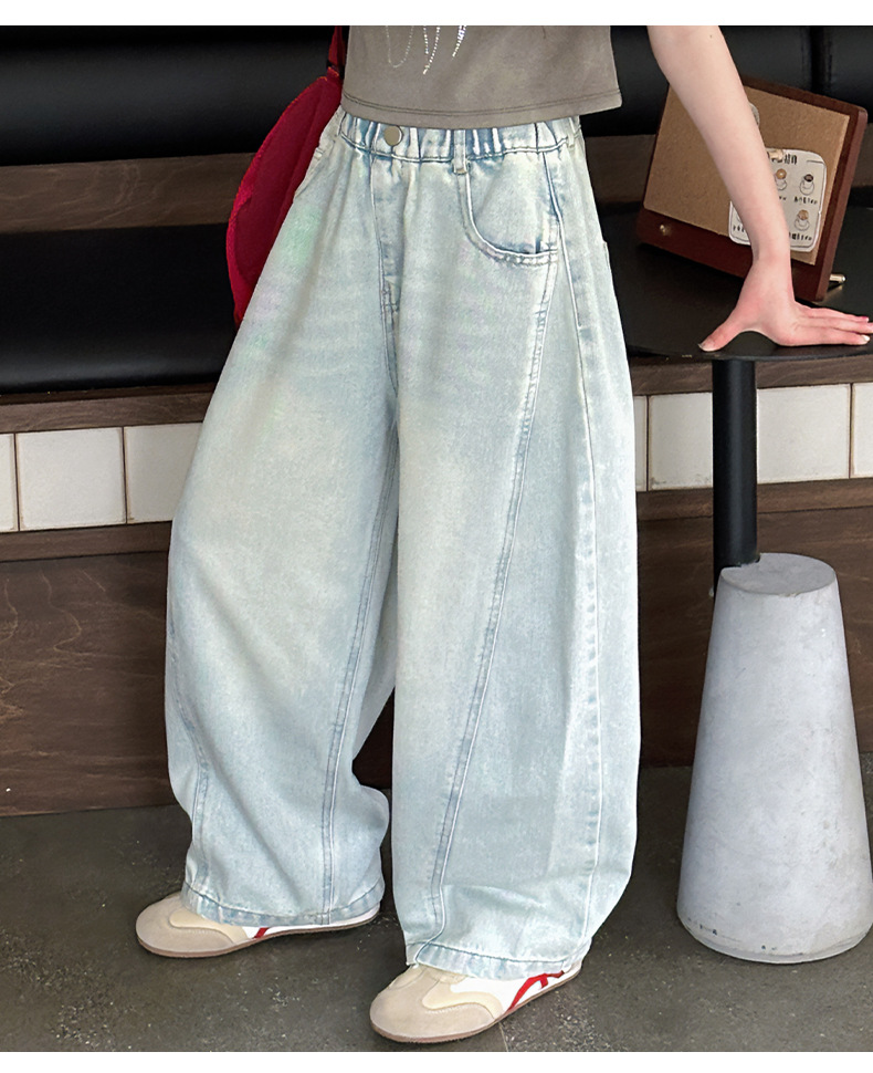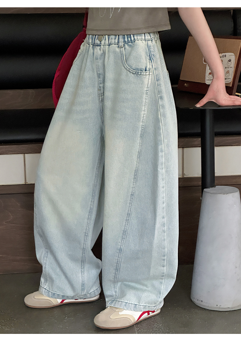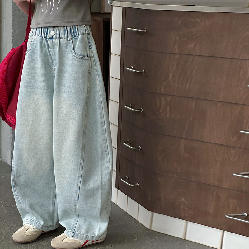 여아용 웨이브 진 2026 가을 신상 스타일리쉬하고 트렌디한 중대형 아동용 한국 스타일 루즈핏 와이드 스트레이트 팬츠스토어 가기
