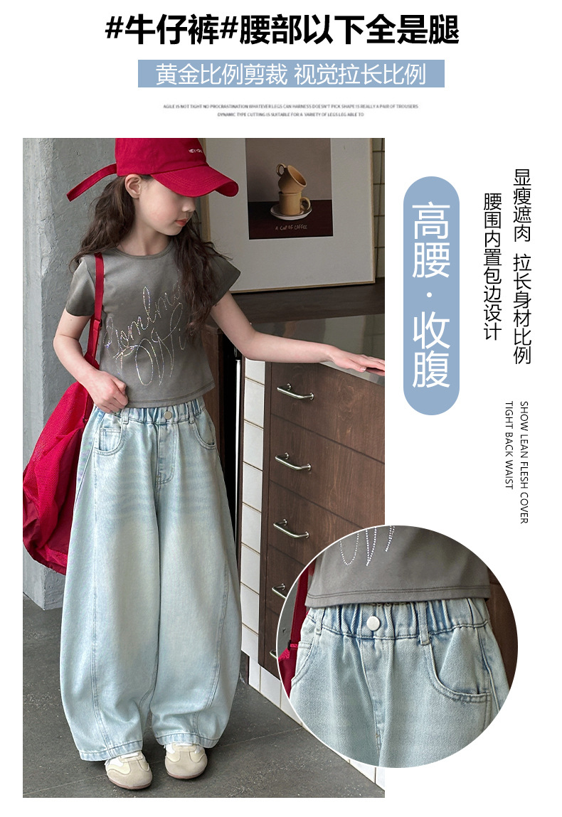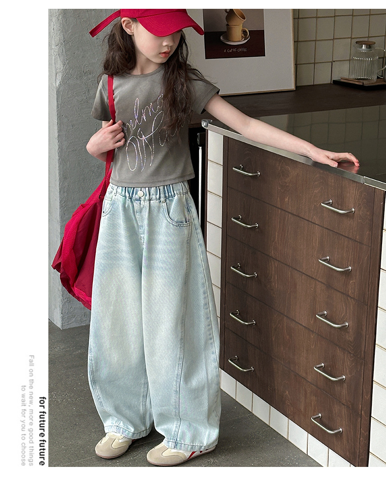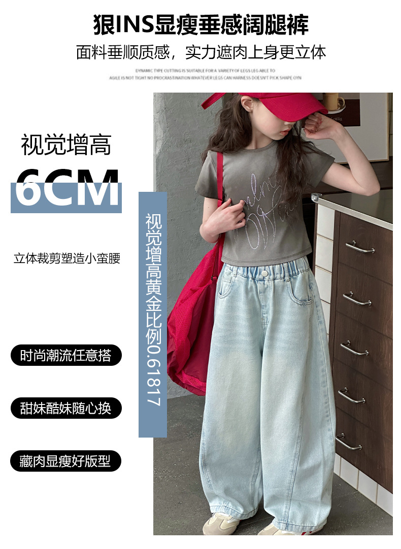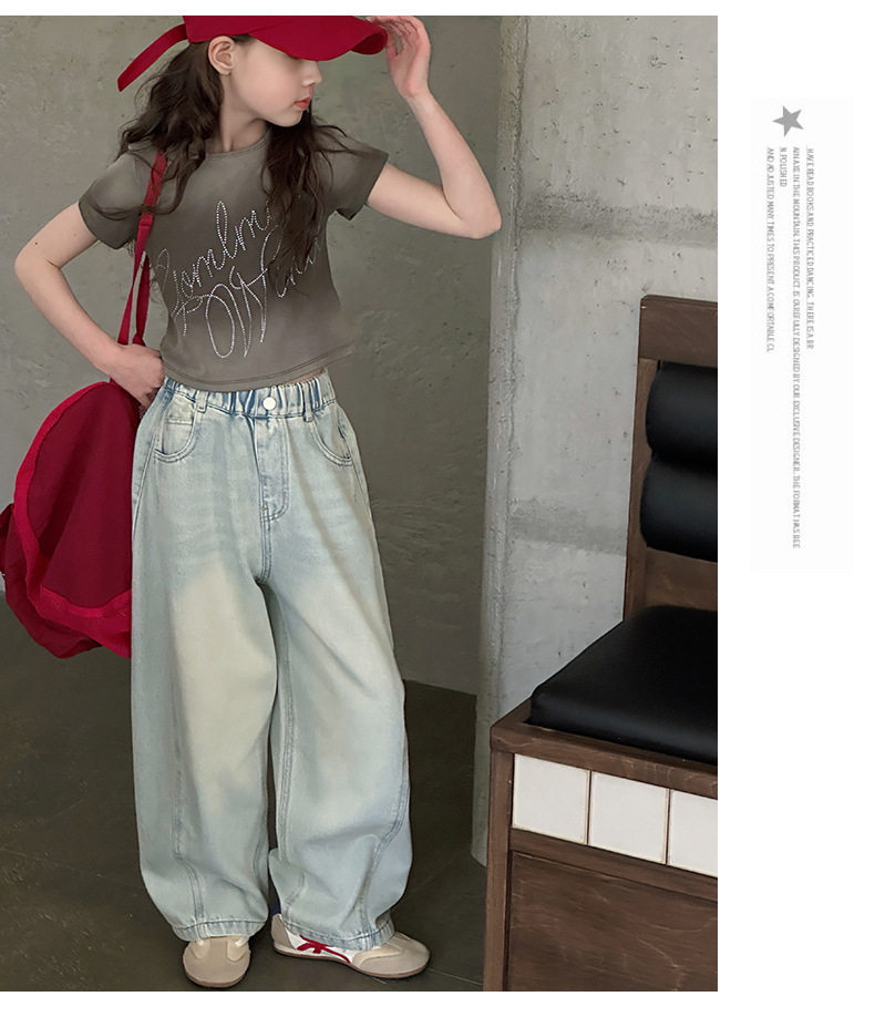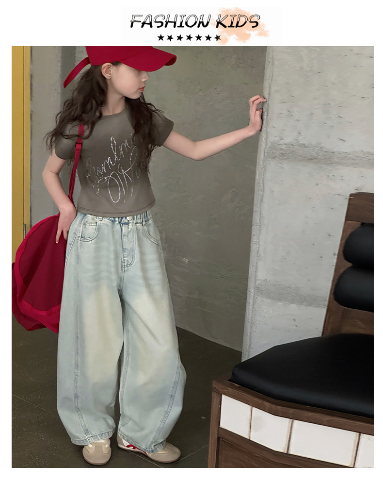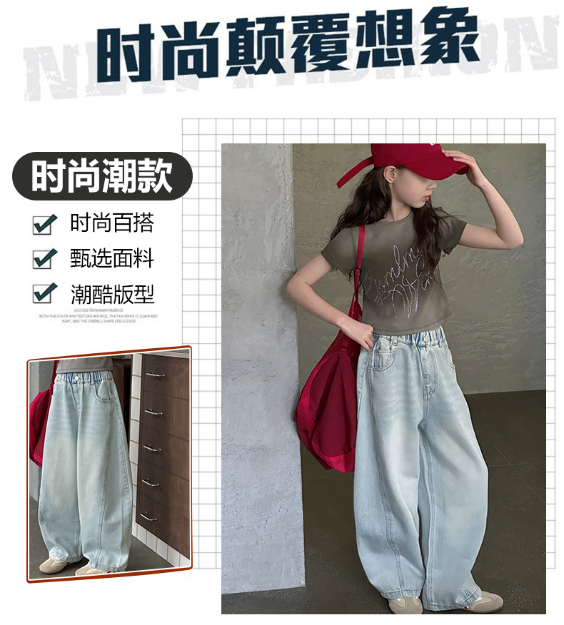 여아용 웨이브 진 2026 가을 신상 스타일리쉬하고 트렌디한 중대형 아동용 한국 스타일 루즈핏 와이드 스트레이트 팬츠스토어 가기