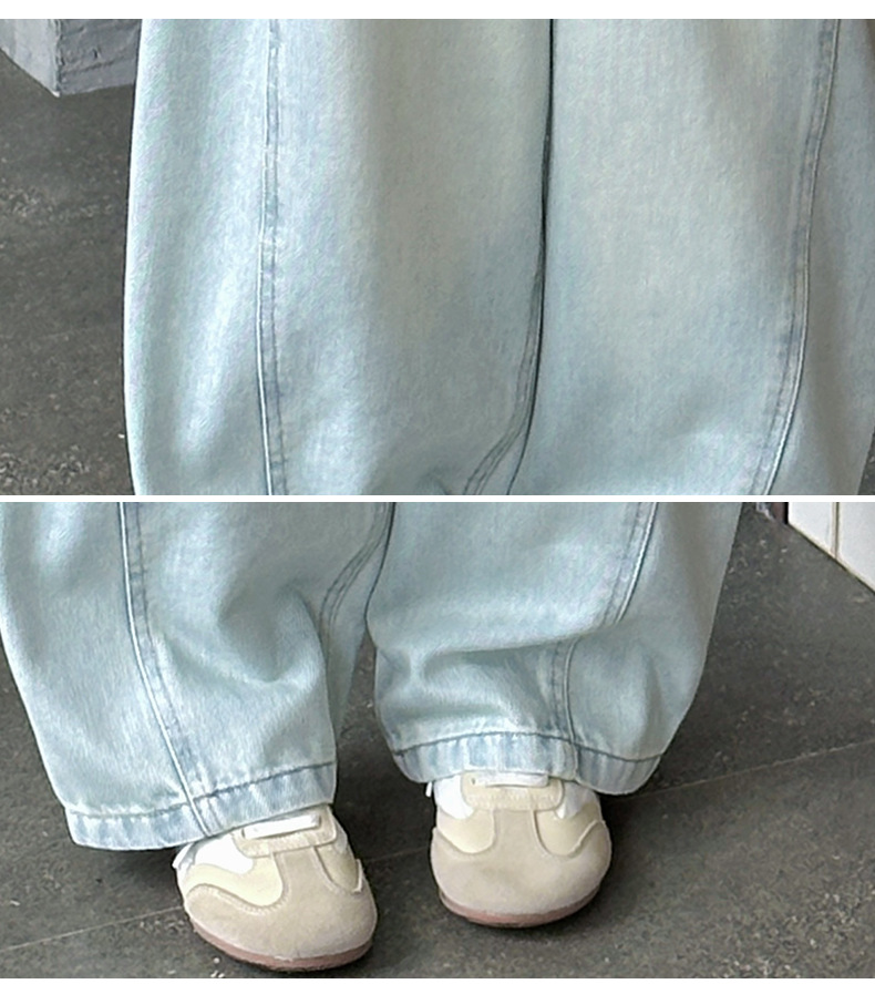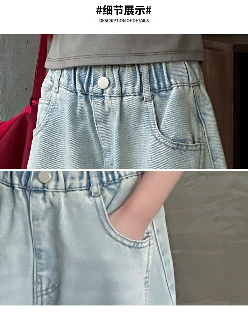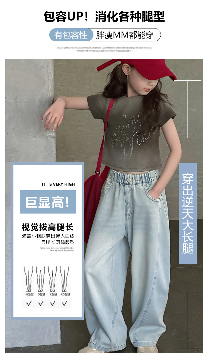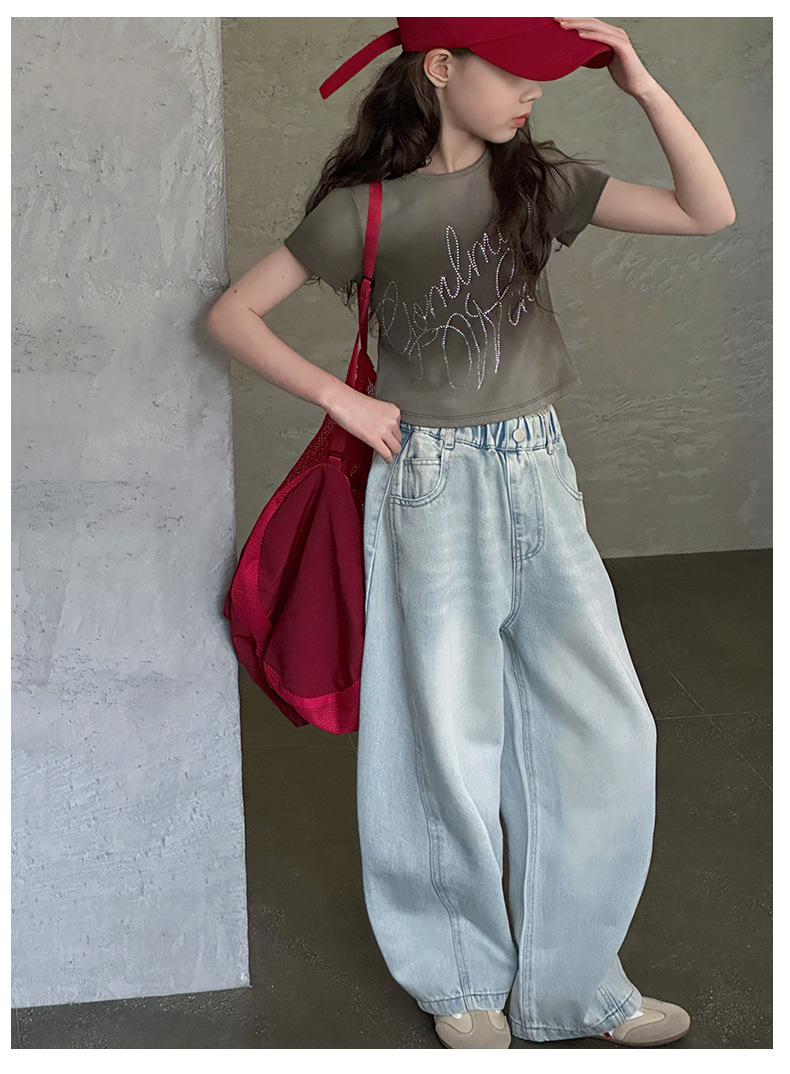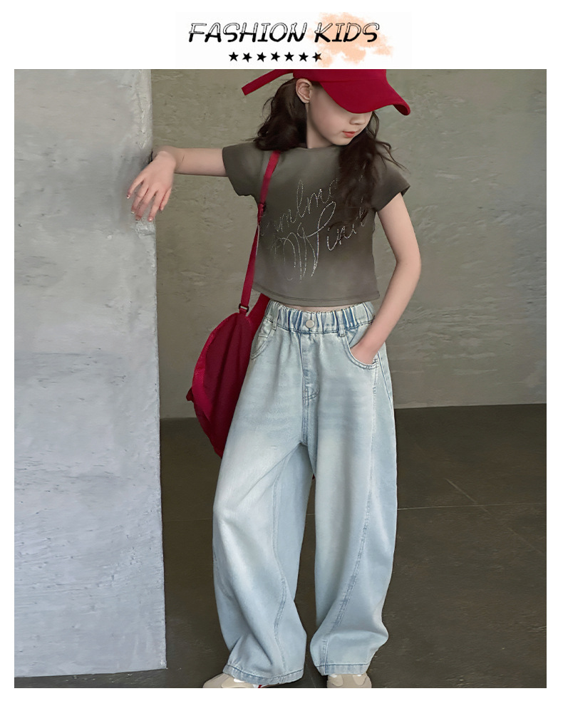 여아용 웨이브 진 2026 가을 신상 스타일리쉬하고 트렌디한 중대형 아동용 한국 스타일 루즈핏 와이드 스트레이트 팬츠스토어 가기