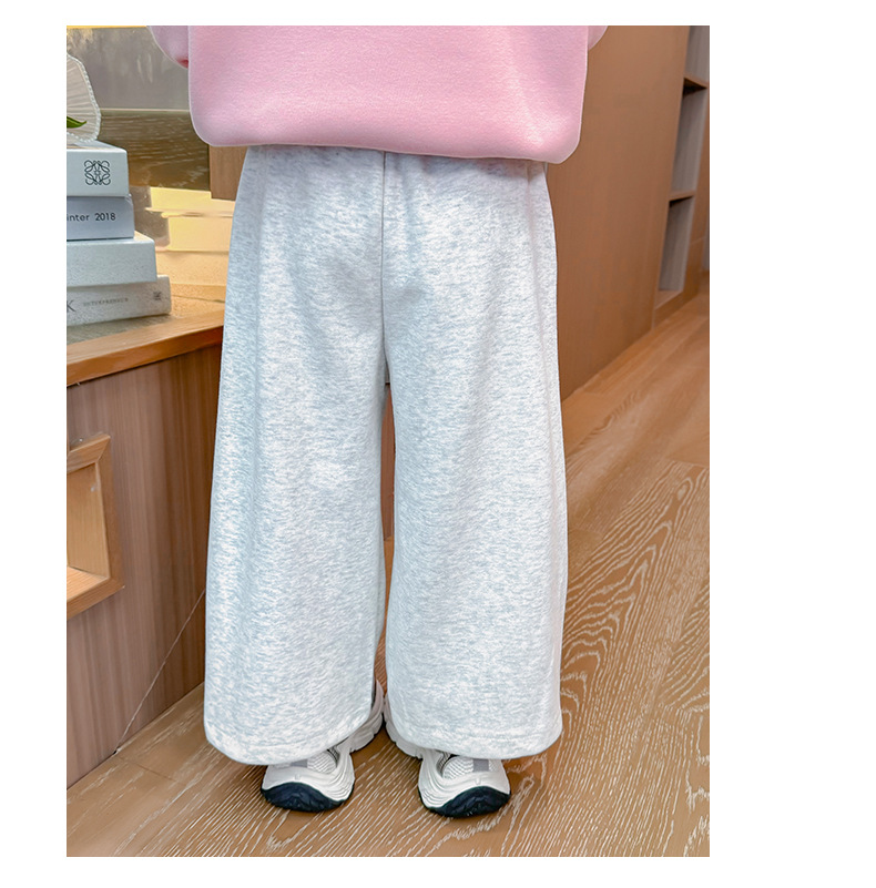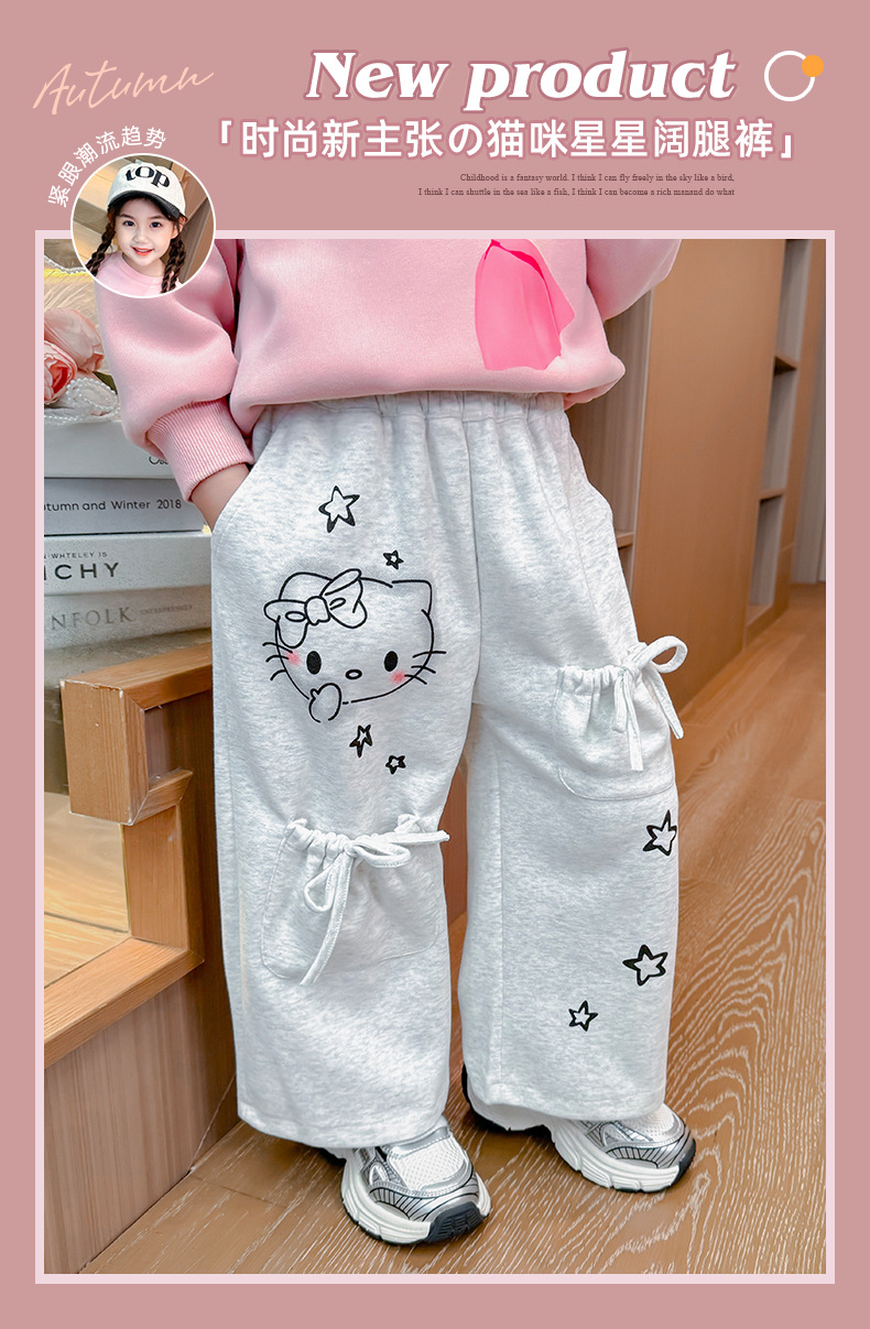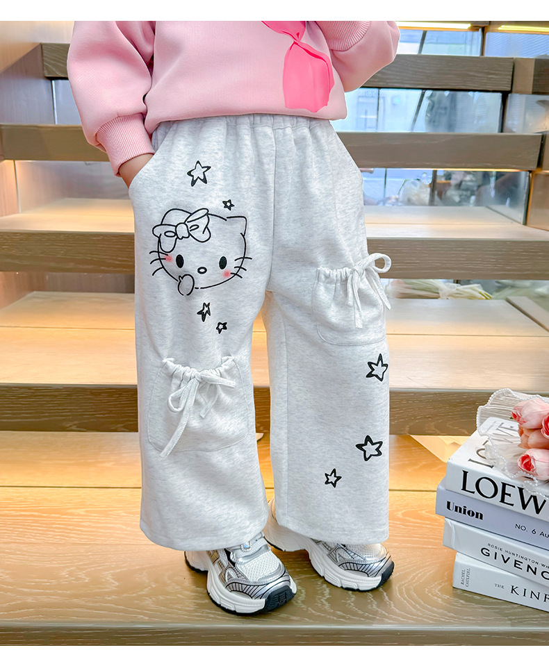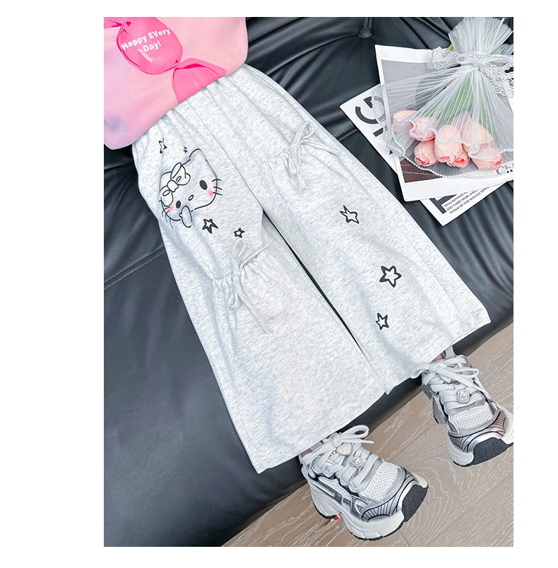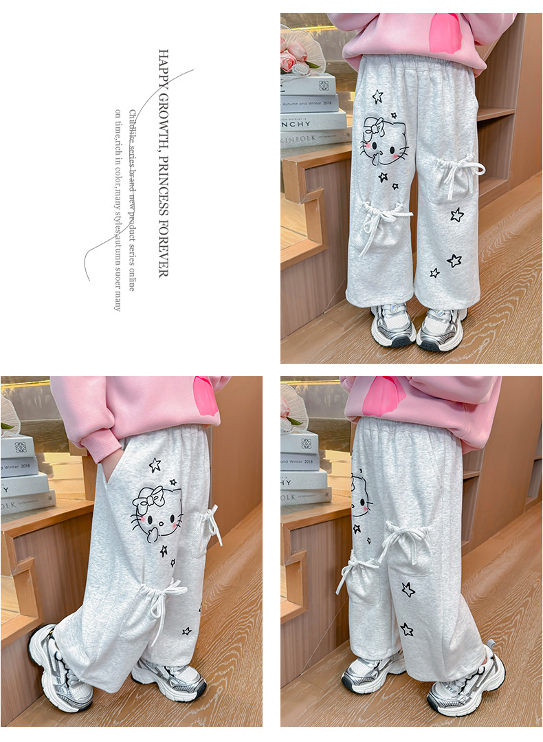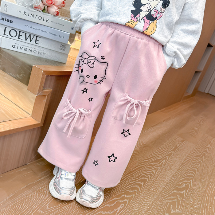 소녀의 봄과 가을 운동복 2025 새로운 레이스 업 포켓 바지 어린이 만화 인쇄 바지스토어 가기