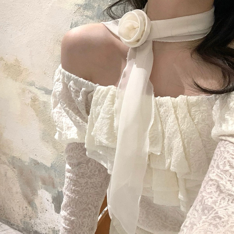 순수한 욕망 스타일 장미 꽃 실크 스카프 여성의 2025 새로운 한국 스타일 분위기 목 스카프 리본 이중 사용 분리