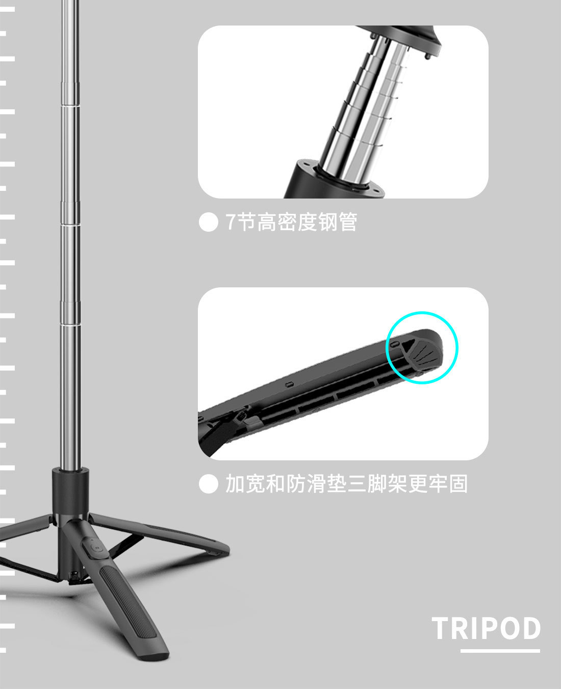 TOKQI 휴대 전화 블루투스 셀카 스틱 Q05 다기능 원피스 텔레스코픽 라이브 플로어 삼각대 셀카 스탠드