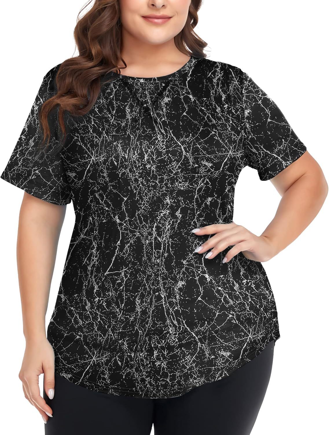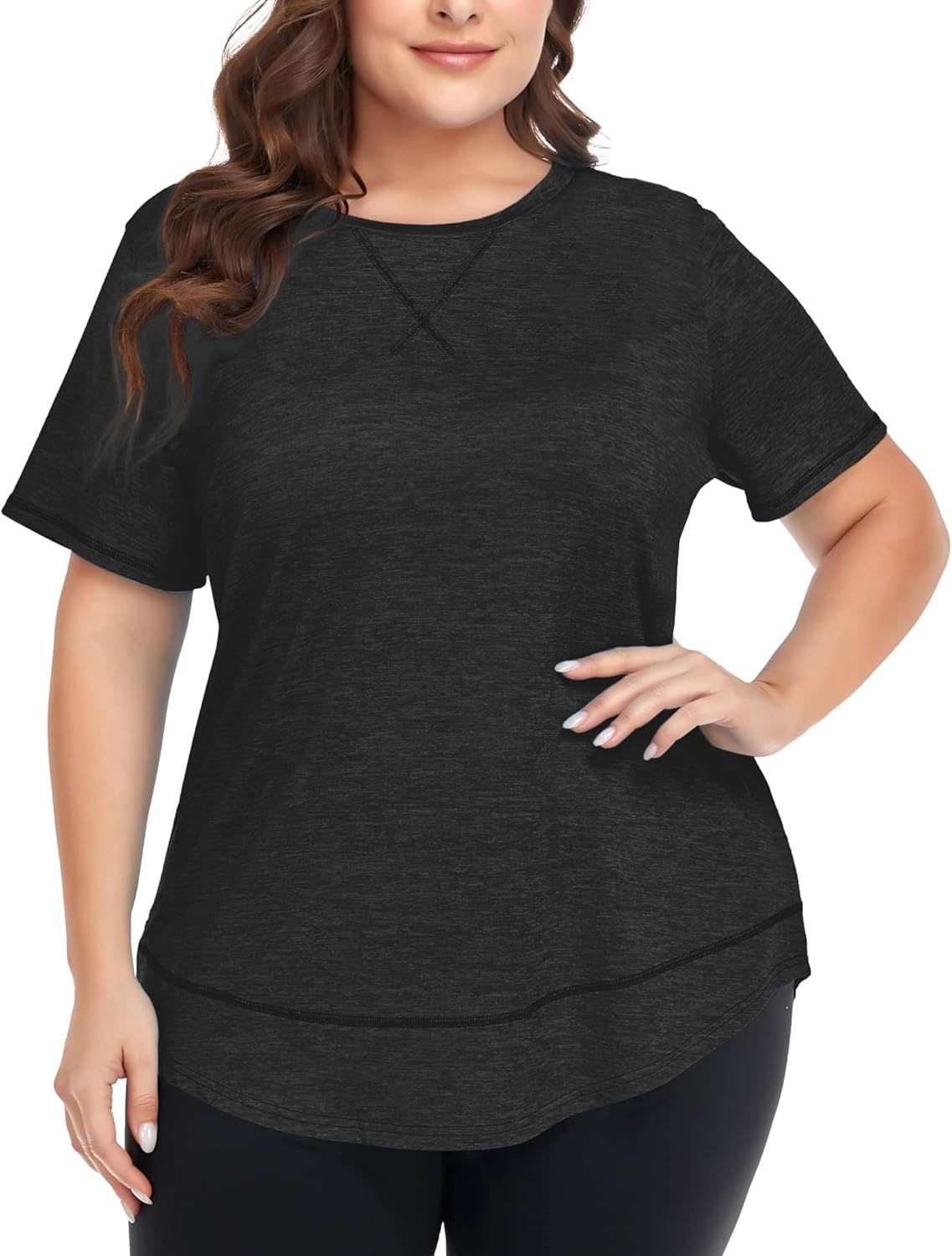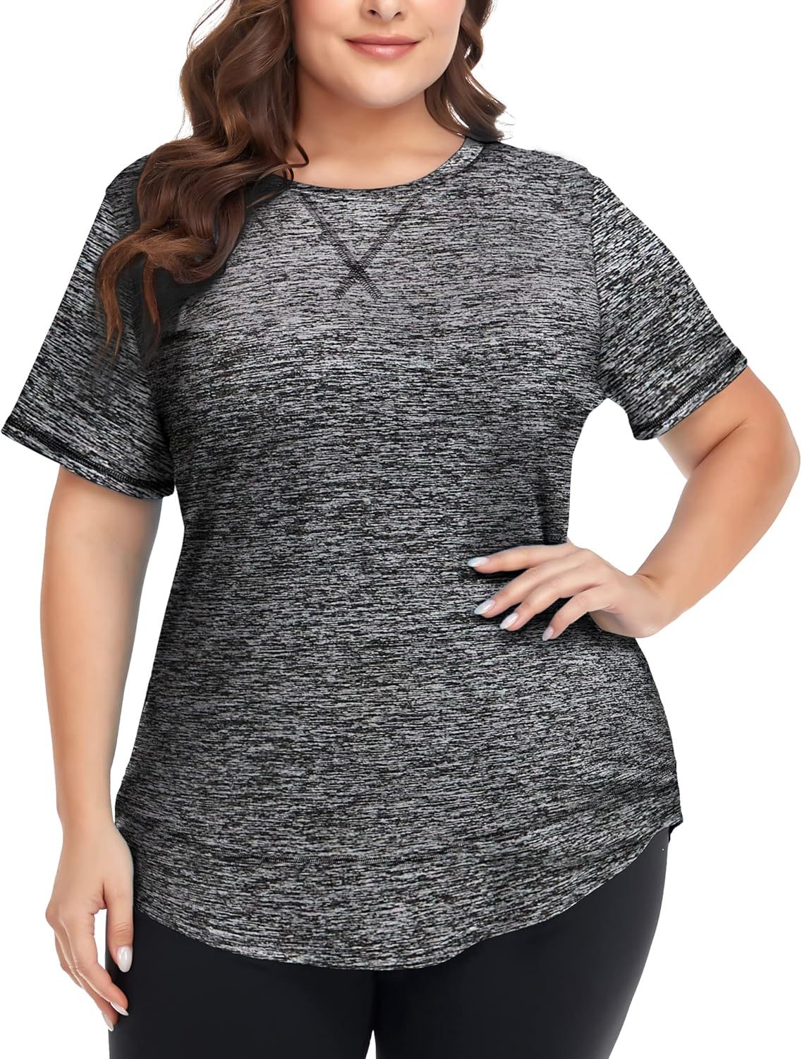 2025 아마존 플러스 사이즈 여자 여름 스포츠 반팔 쿨 티셔츠 요가 피트니스 빠른 건조 양이온 탑