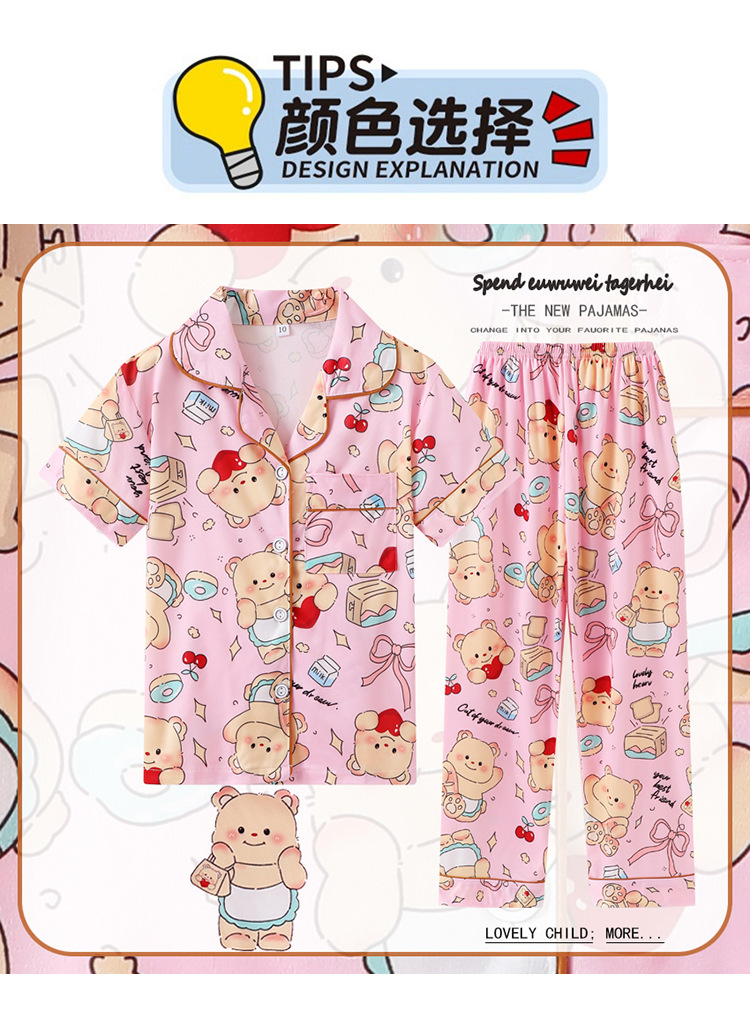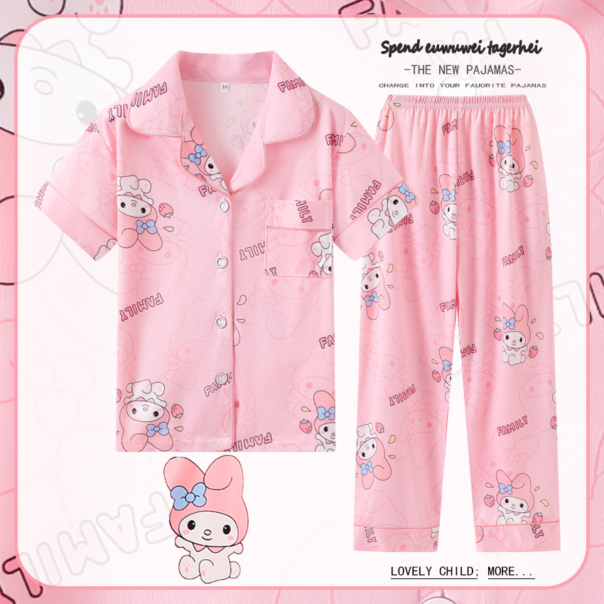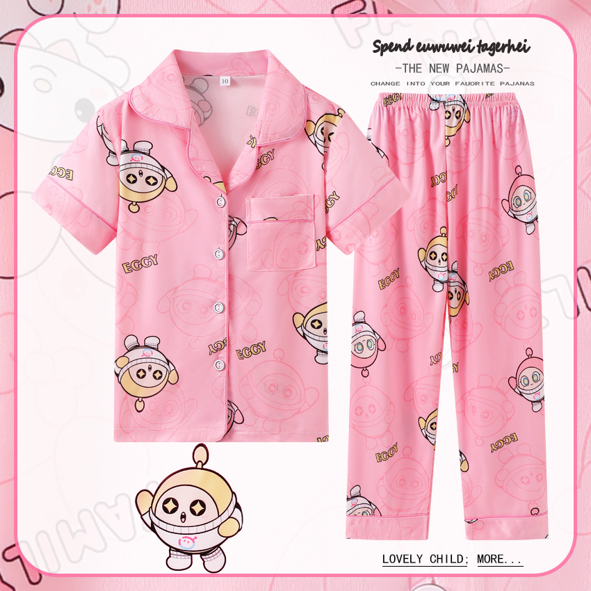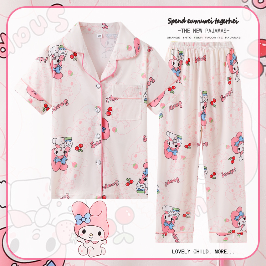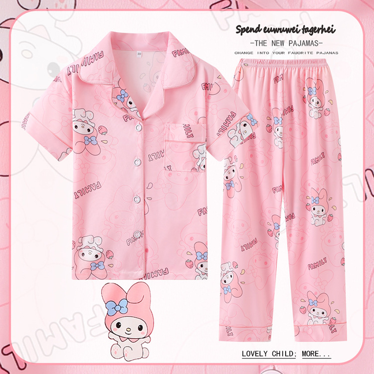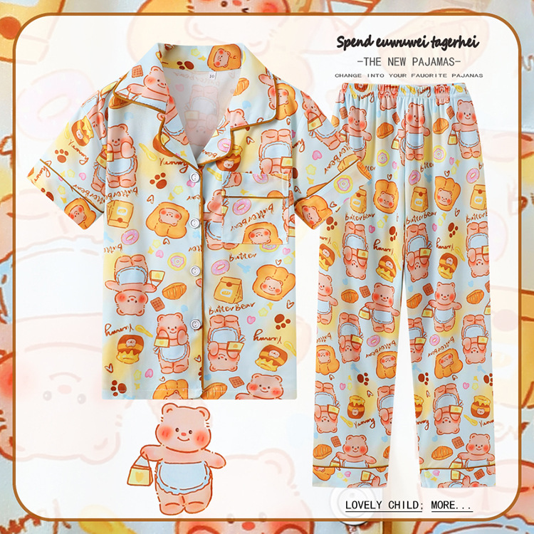 대외 무역 여름과 가을 어린이 잠옷 만화 소녀 귀여운 만화 소녀 반팔 바지 가디건 홈 의류 세트스토어 가기