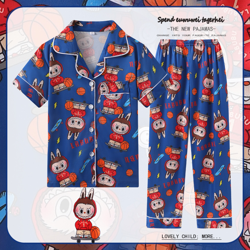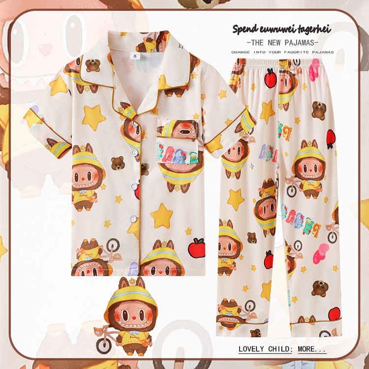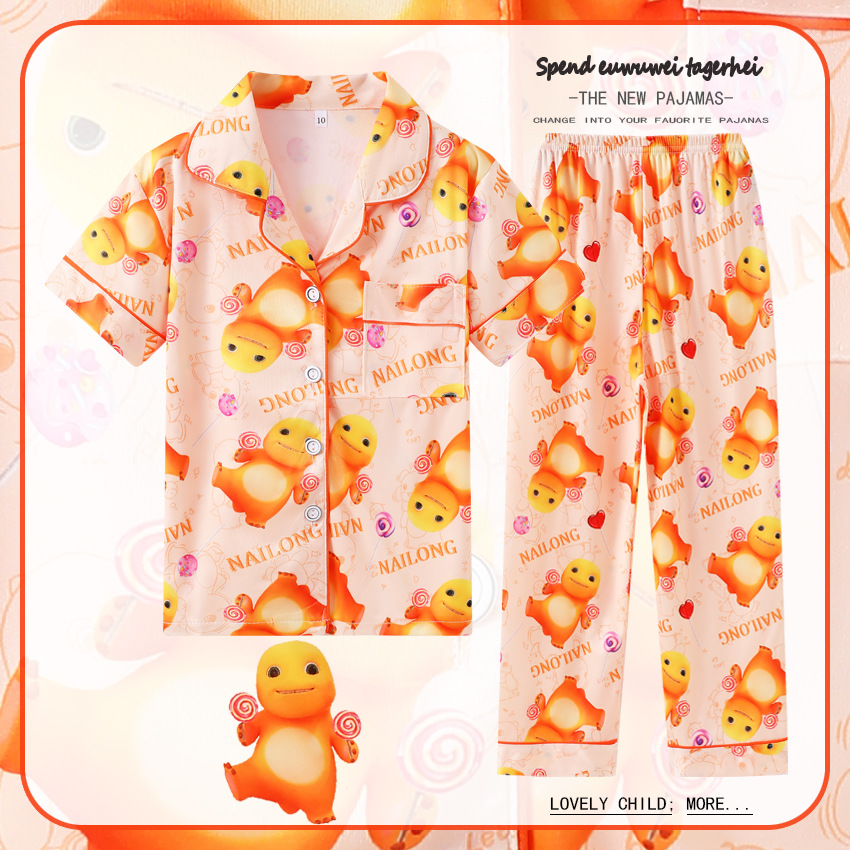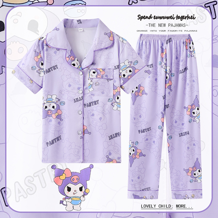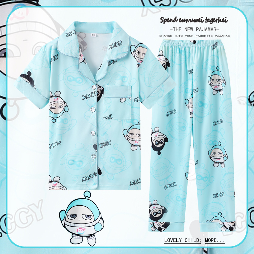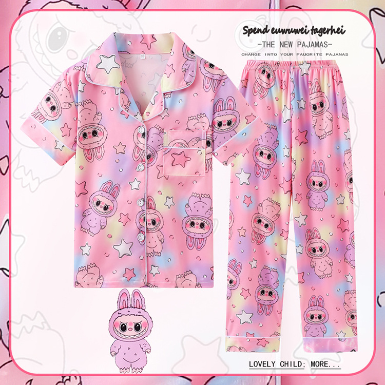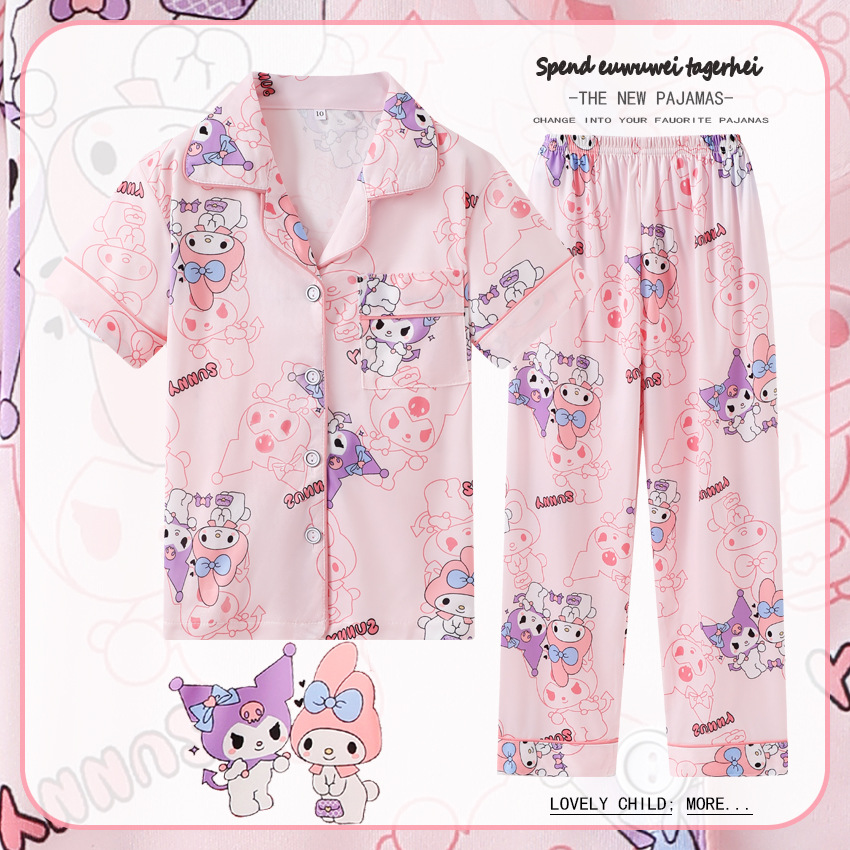 대외 무역 여름과 가을 어린이 잠옷 만화 소녀 귀여운 만화 소녀 반팔 바지 가디건 홈 의류 세트스토어 가기