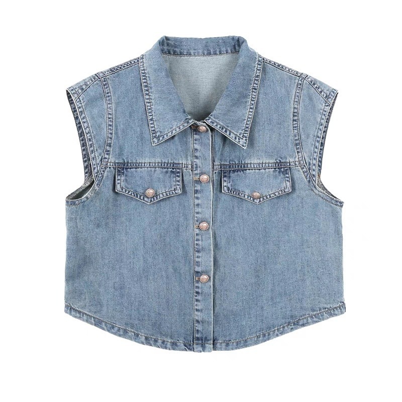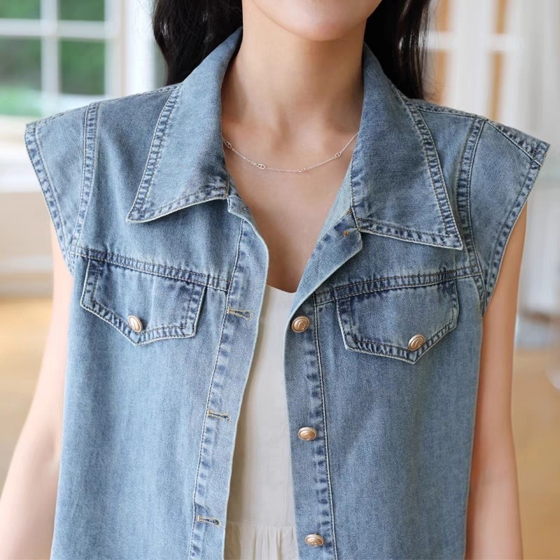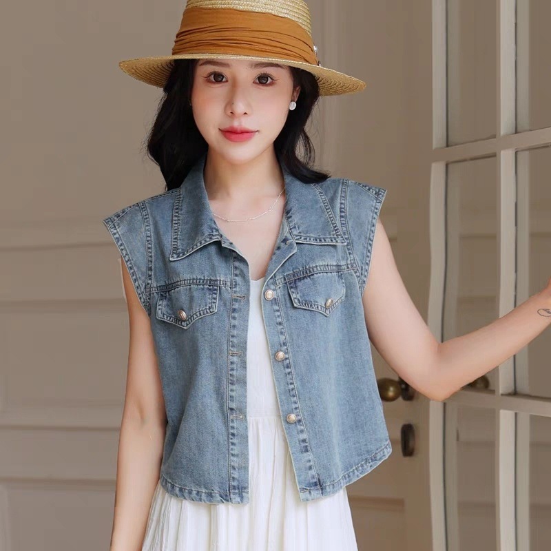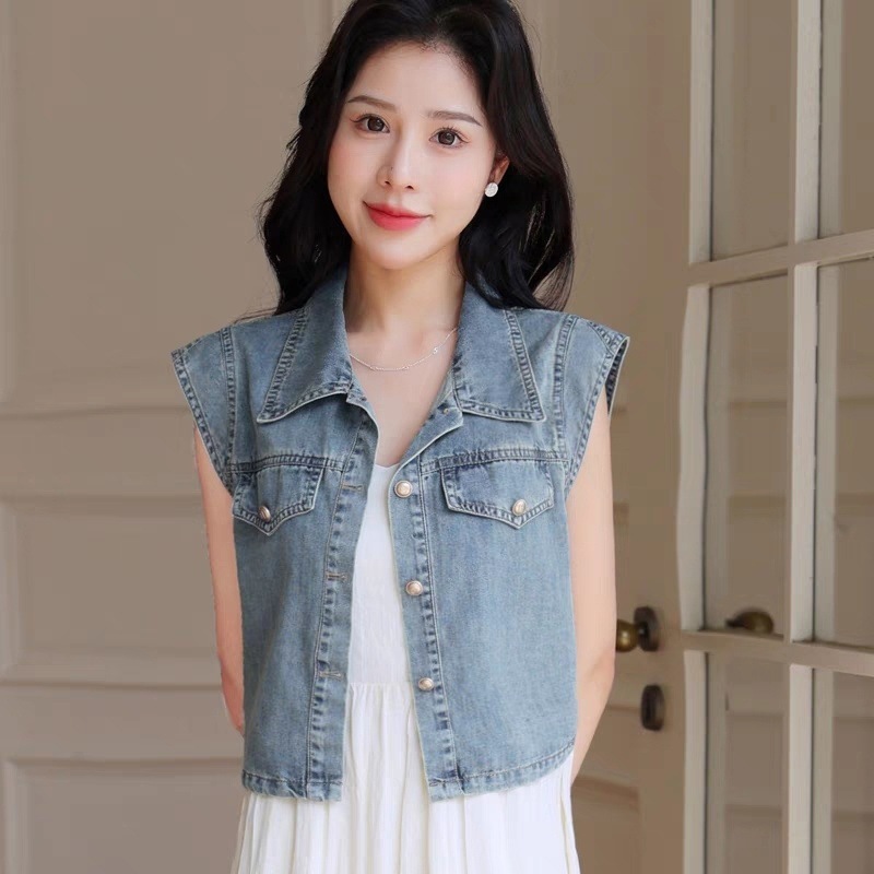 패션 데님 조끼 여성 여름 얇은 2025 새로운 스타일 민소매 짧은 조끼 탑스토어 가기