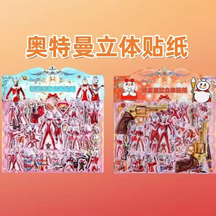 창조적 인 만화 울트라 맨 어린이 3 차원 더블 레이어 스티커 범프 영웅 슈퍼맨 스티커 방수 베이비 보이 디스토어 가기