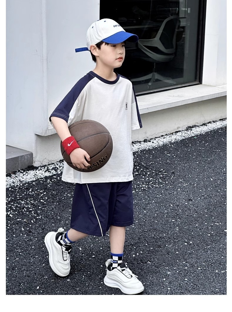 남자 큰 어린이 여름 옷 세트 2025 새로운 잘 생긴 어린이 옷 서양식 어린이 반팔 소년 운동복 세트 여름스토어 가기