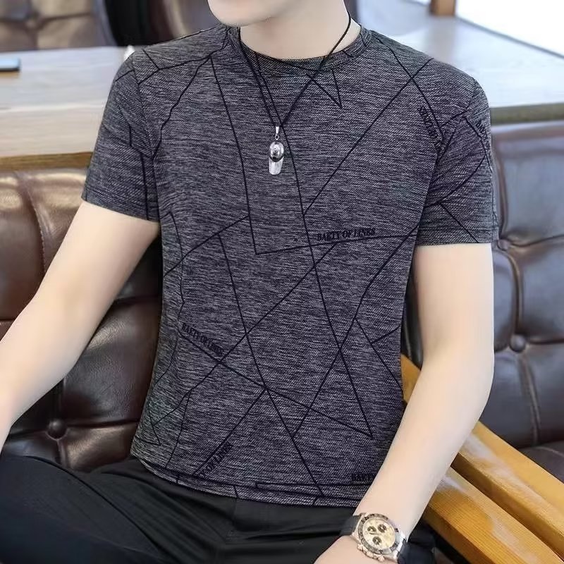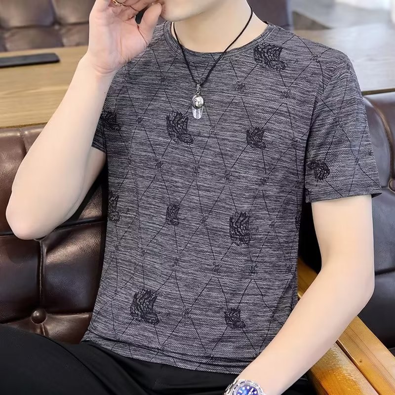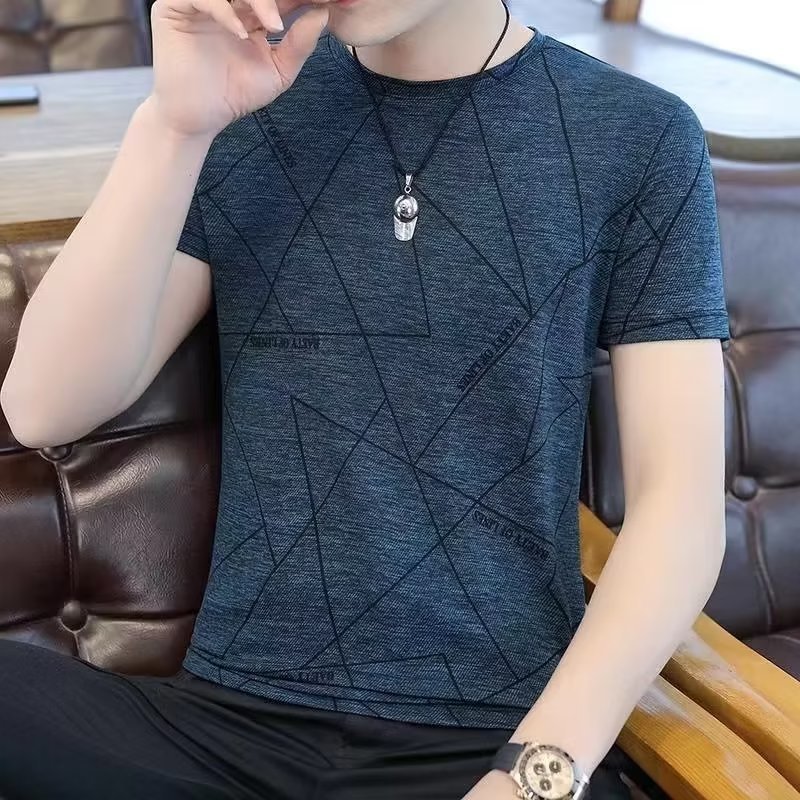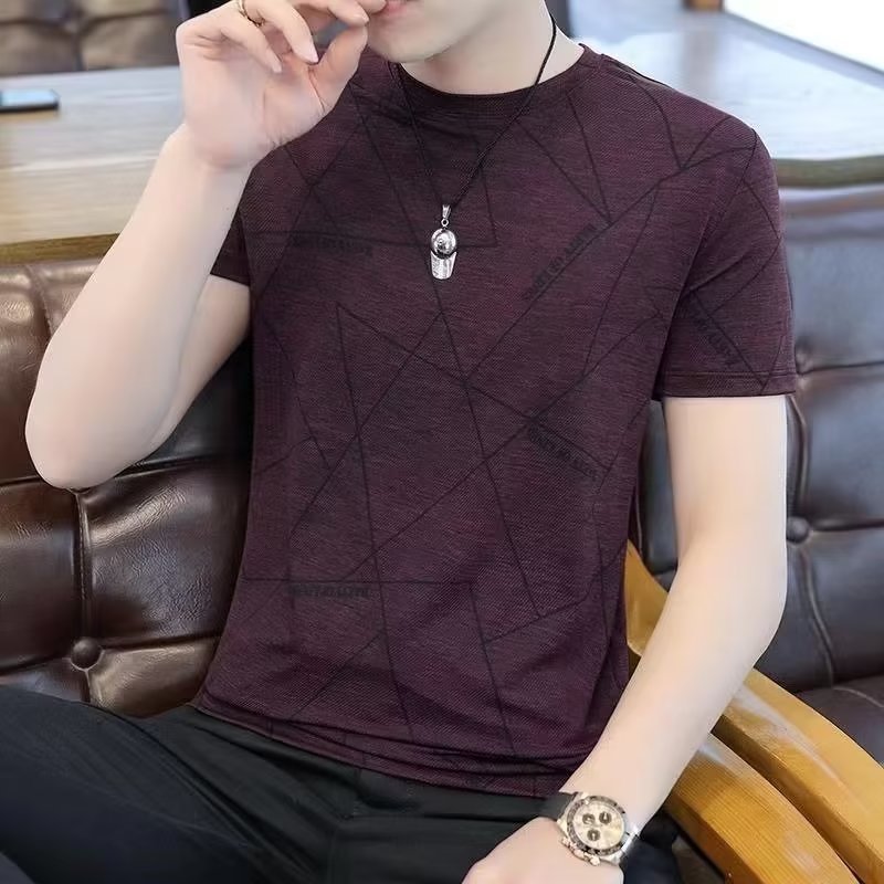 아이스 실크 티셔츠 남자 여름 새 도착 2024 한국식 반소매 티셔츠 인스 타 그램 인기 브랜드 반팔 남성 탑 옷