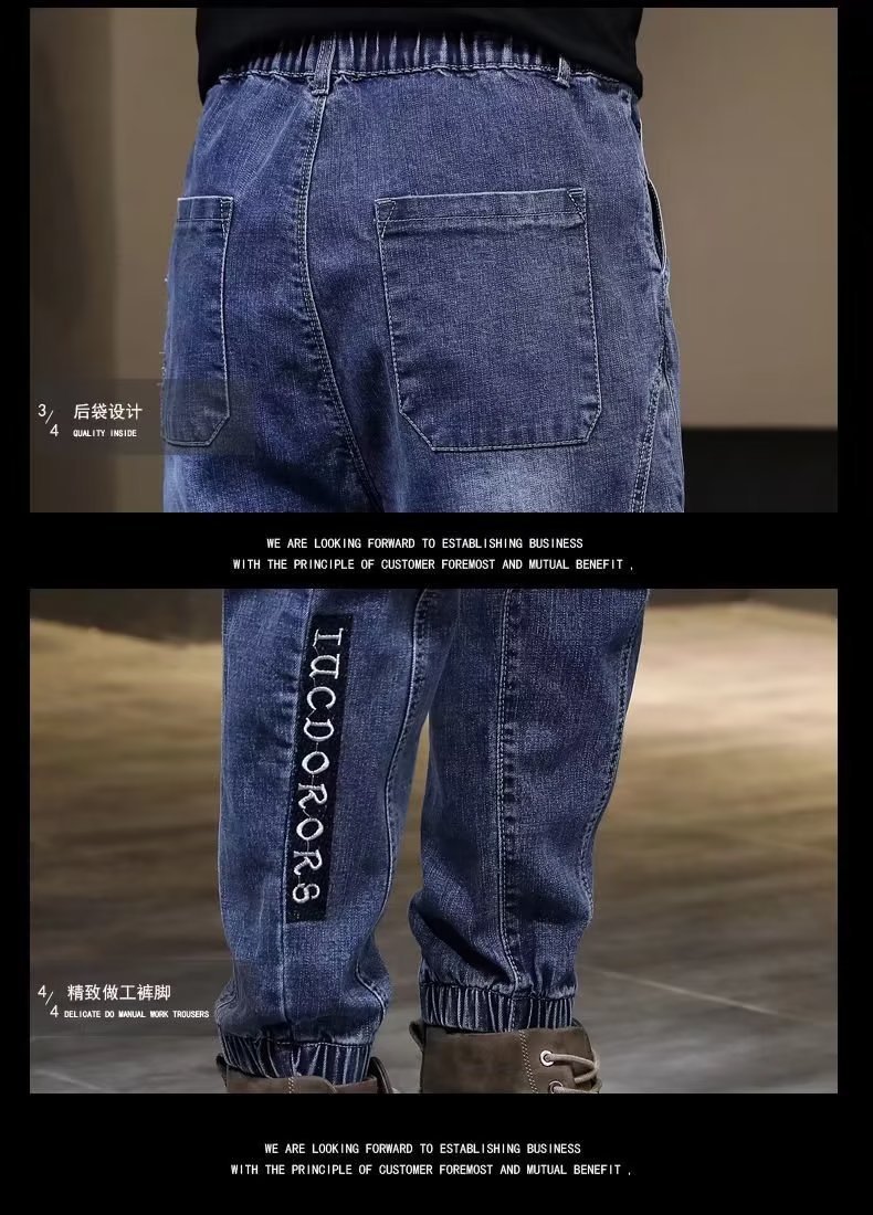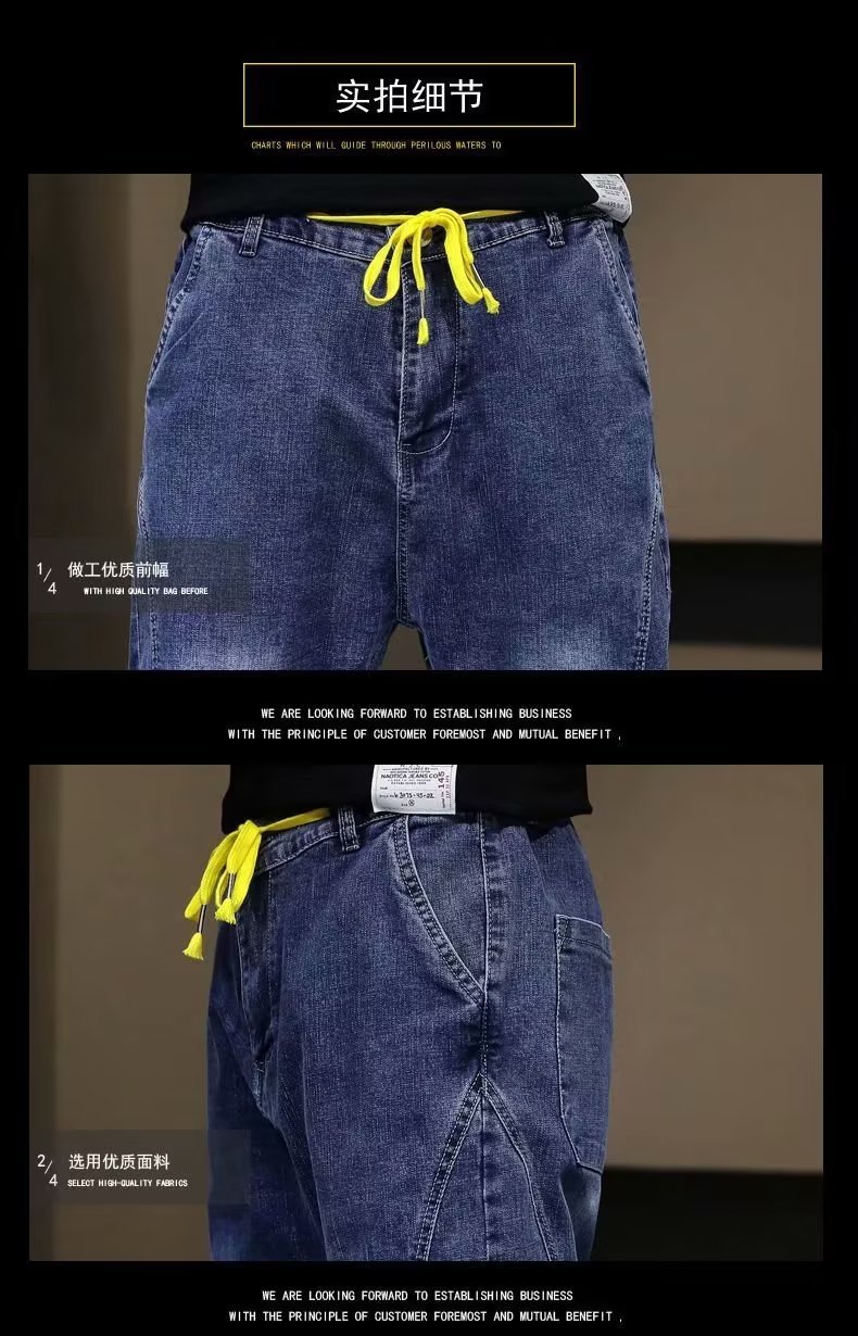 청바지 남성 봄과 가을 느슨한 얇은 레트로 트렌디 브랜드 다리 발가락 캐주얼 바지 화이트 화이트 엘라스토미 허리 스포츠 바지스토어 가기