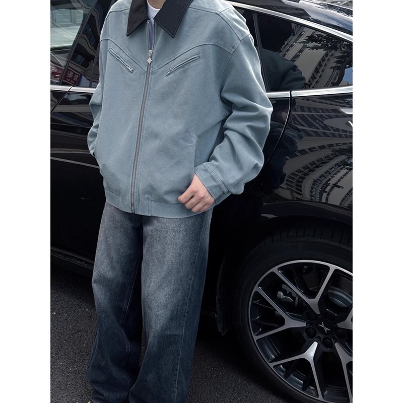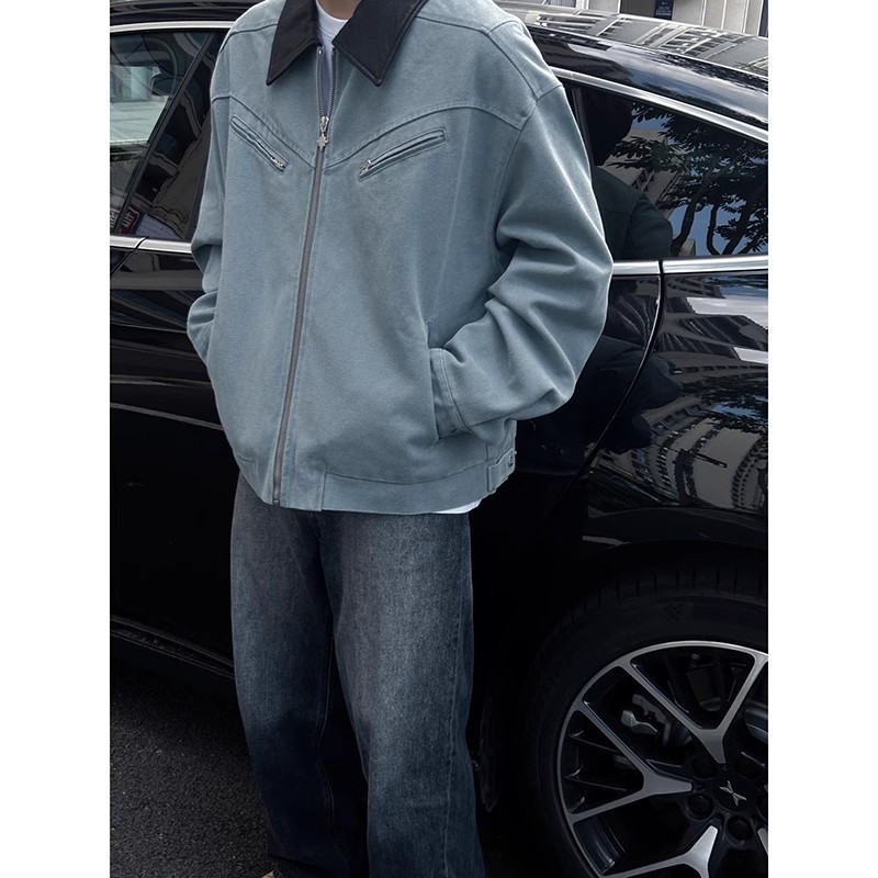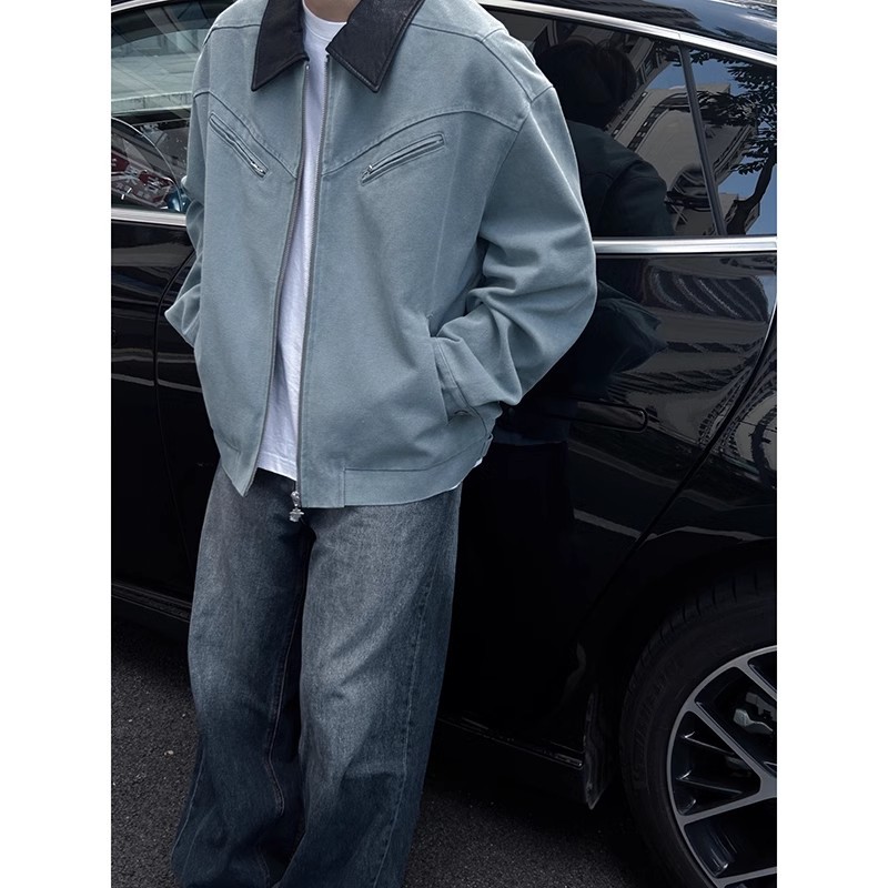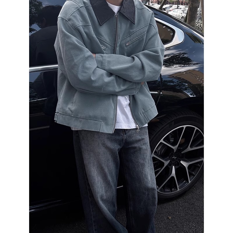 청록색 녹색 세척 랩 툴링 재킷 남성 트렌디 브랜드 유럽과 미국 스트리트 빈티지 디자인 센스 디트로이트 재킷스토어 가기