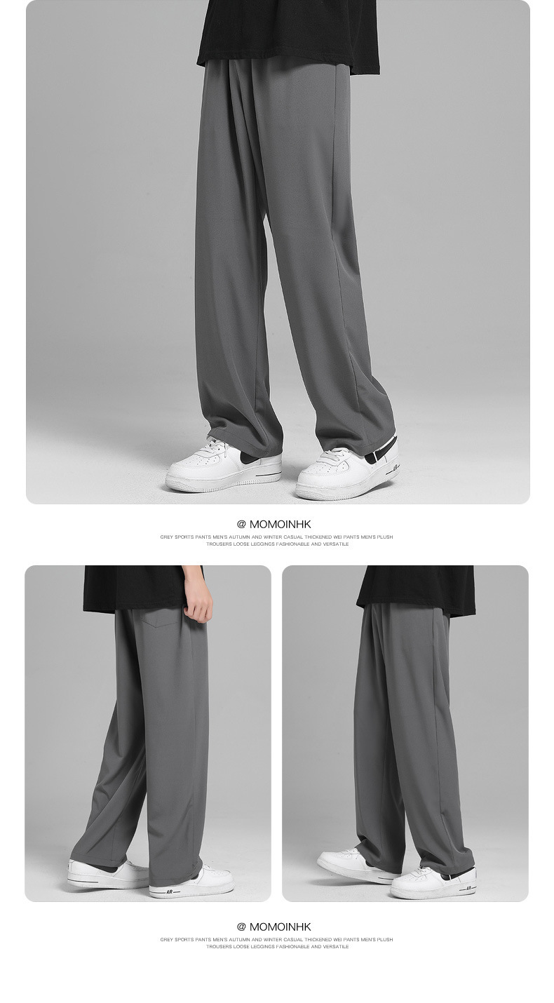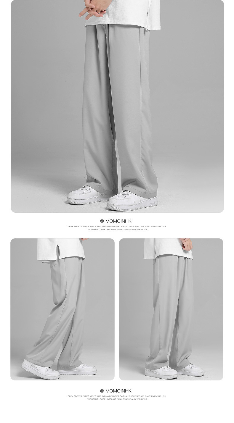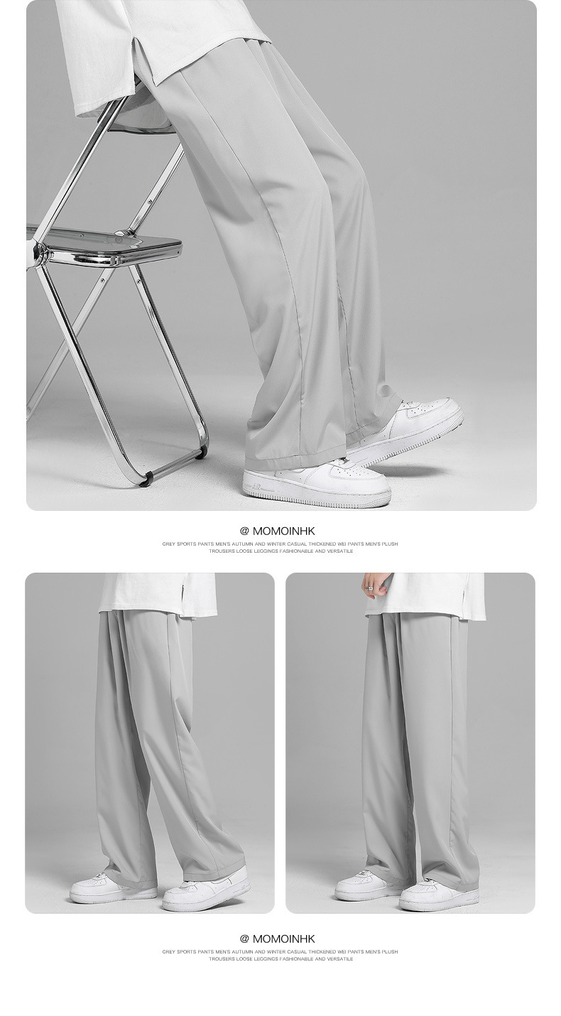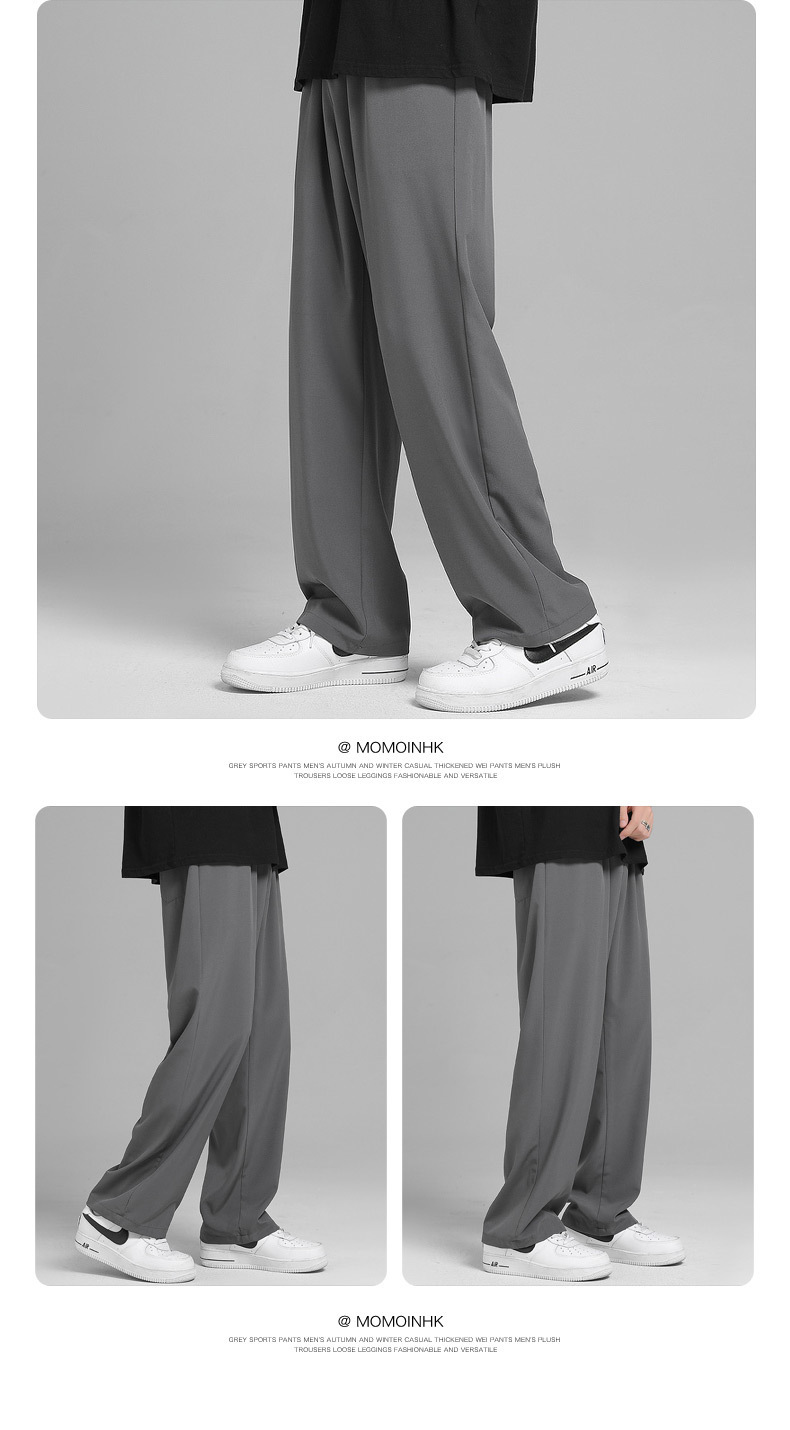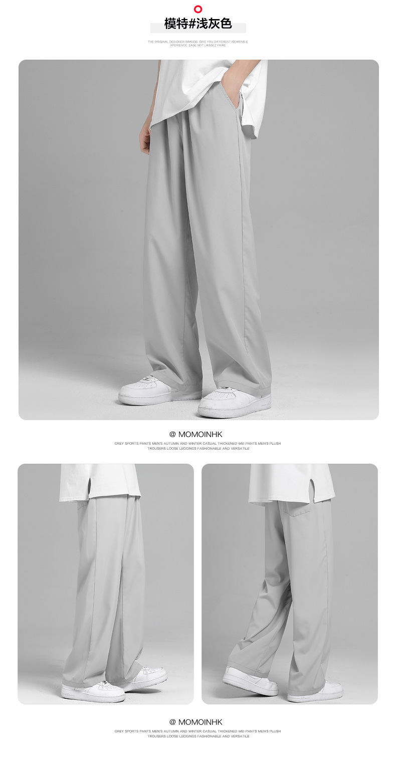 2024 새로운 여름 아이스 실크 바지 남자 느슨한 플러스 사이즈 홍콩 스타일 스포츠 얇은 통기성 빠른 건조 직선 바지