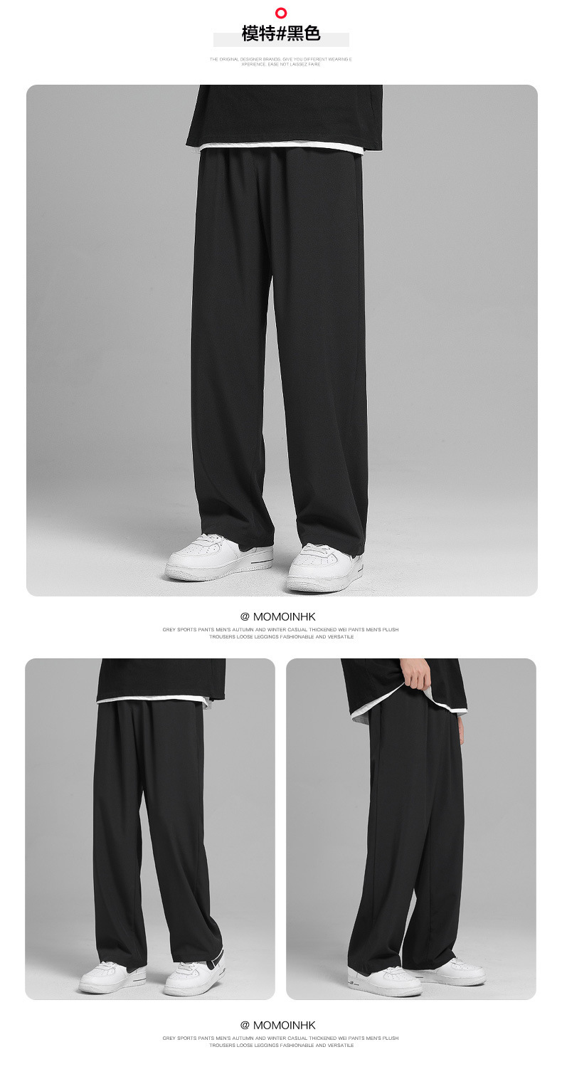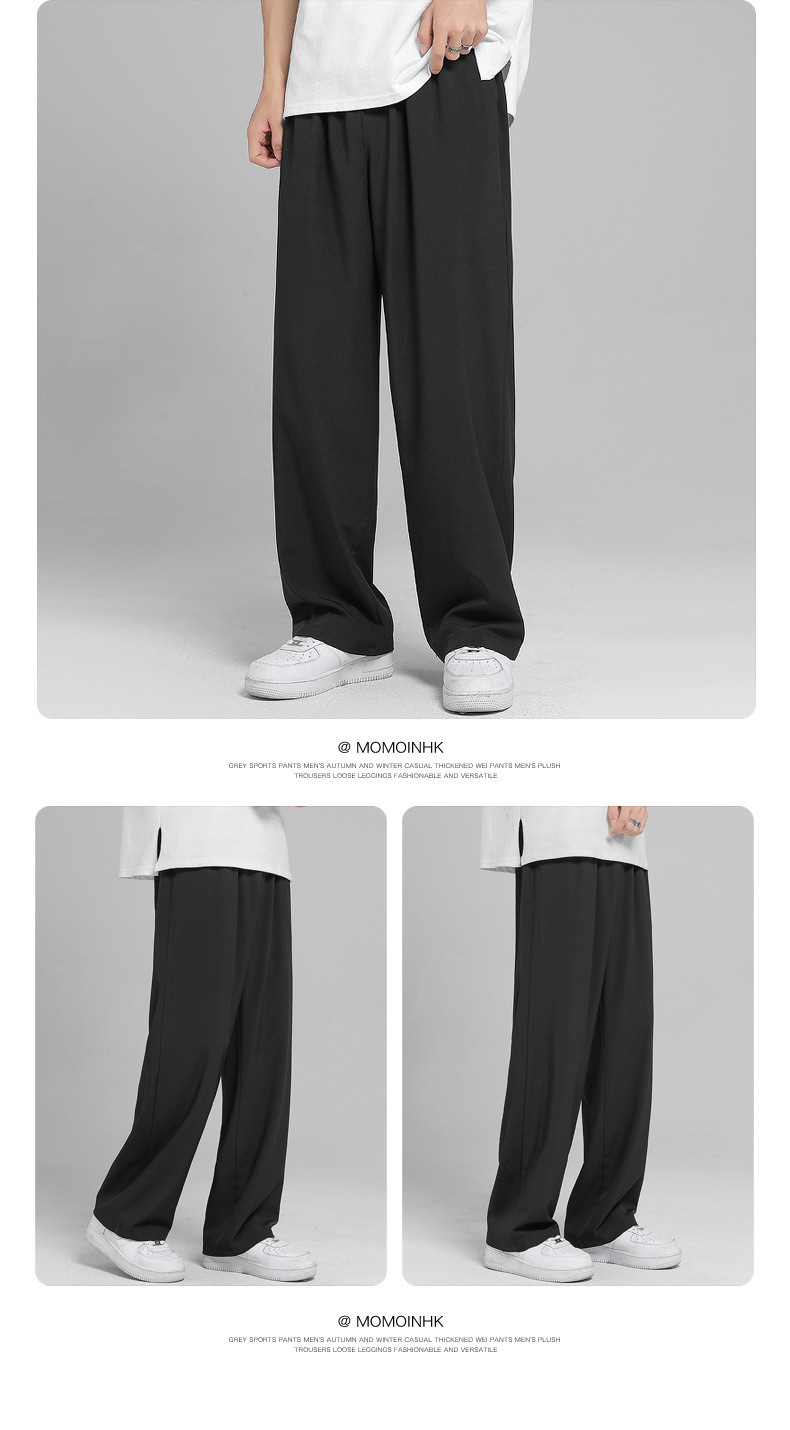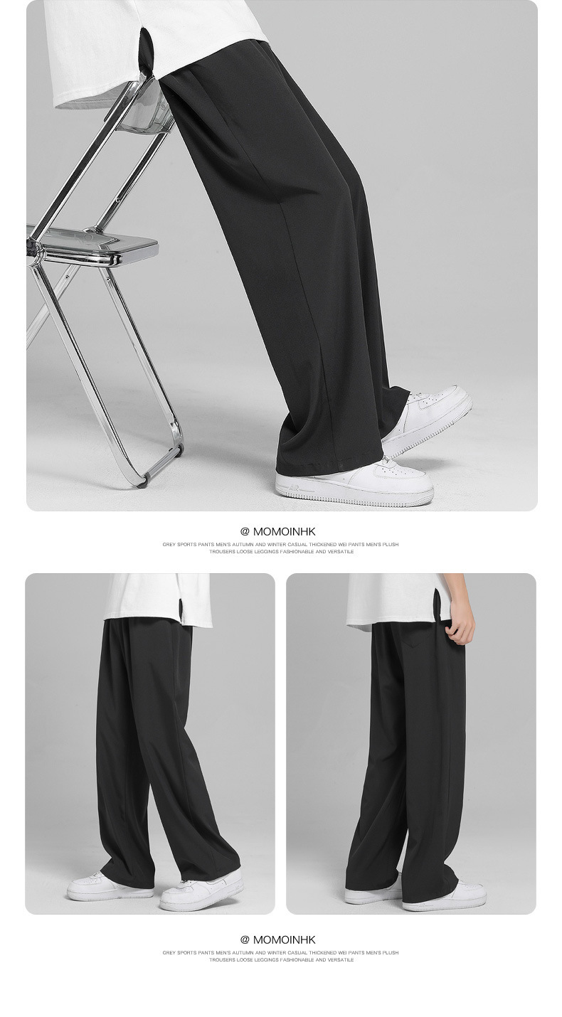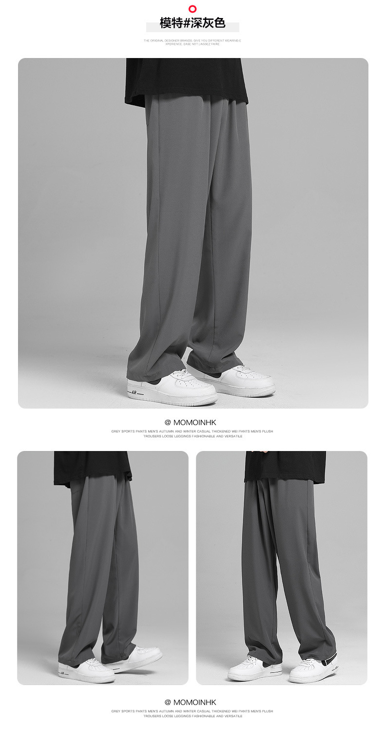 2024 새로운 여름 아이스 실크 바지 남자 느슨한 플러스 사이즈 홍콩 스타일 스포츠 얇은 통기성 빠른 건조 직선 바지