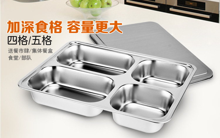 304 스테인레스 스틸 디너 플레이트 뚜껑 성인 학생 도시락 도시락 Dix 매점 디너 플레이트 어린이 도시락 식기스토어 가기