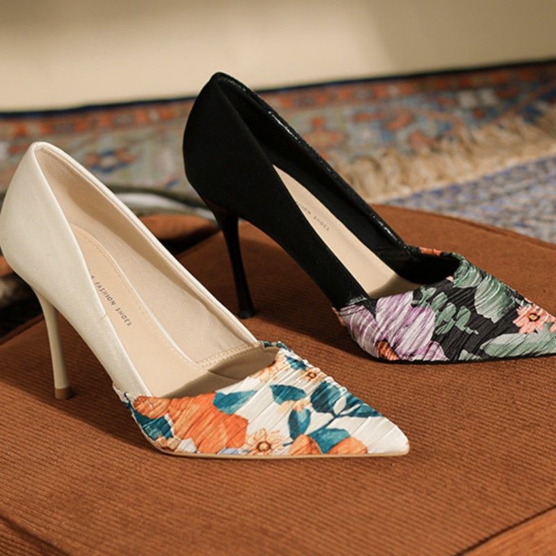 릴리 웨이 하이 세트 인쇄 하이힐 슈즈 스틸레토 힐 포인팅 디자인 틈새 우아한 스몰 사이즈 313233 청삼 신발스토어 가기