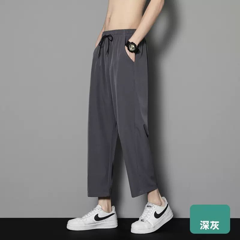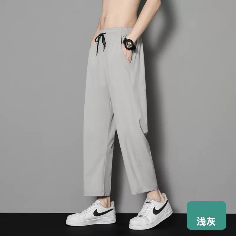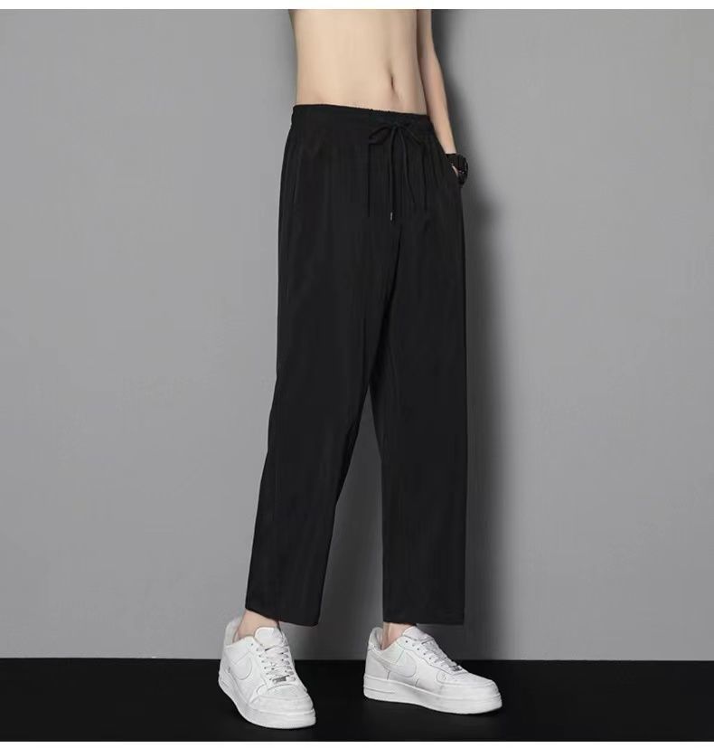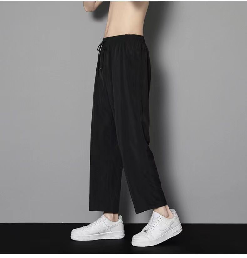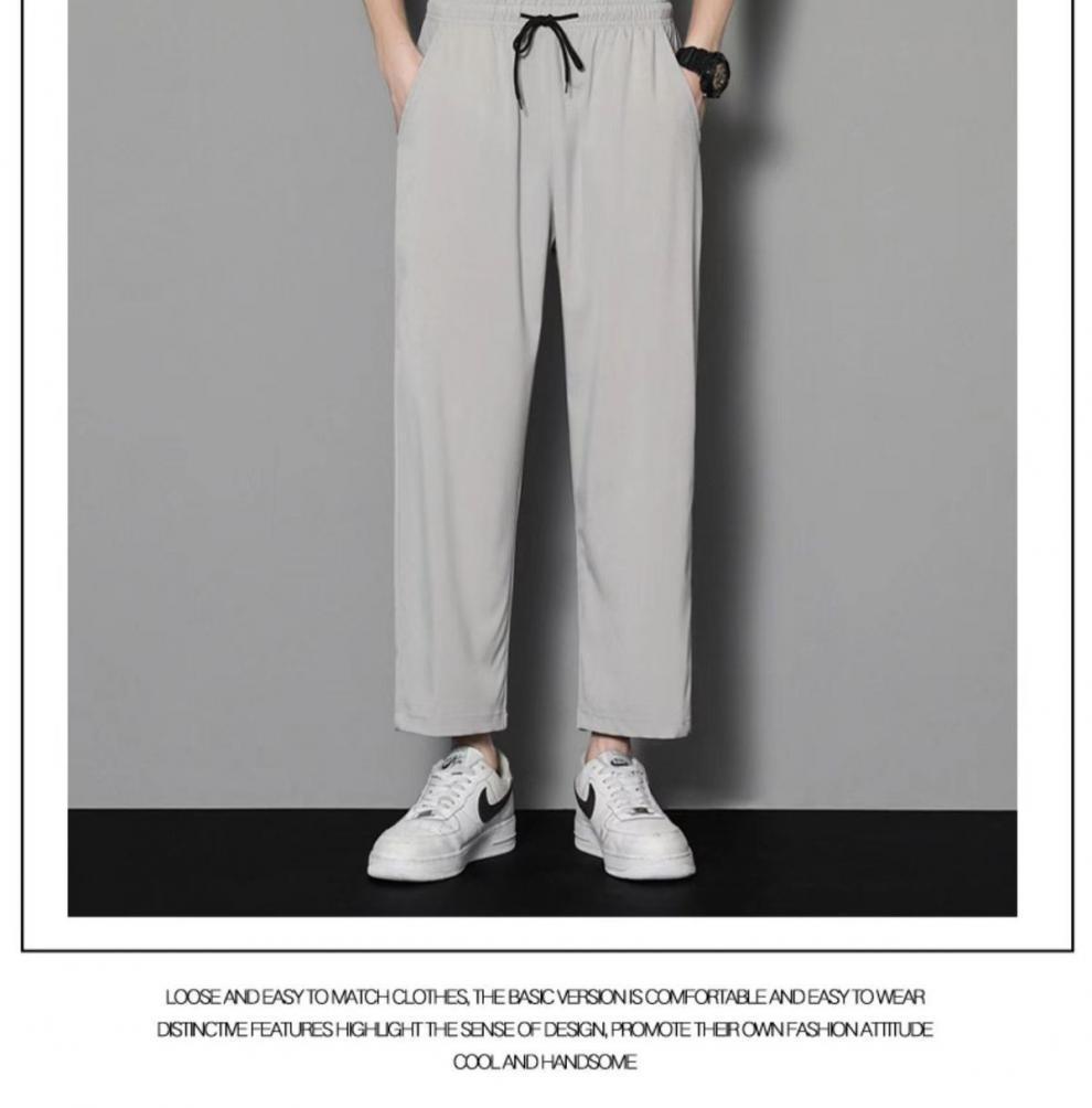 여름 얇은 아이스 실크 바지 간단한 느슨한 직선 발목 길이 바지 남자 한국식 올매치 남자 바지 캐주얼 바지