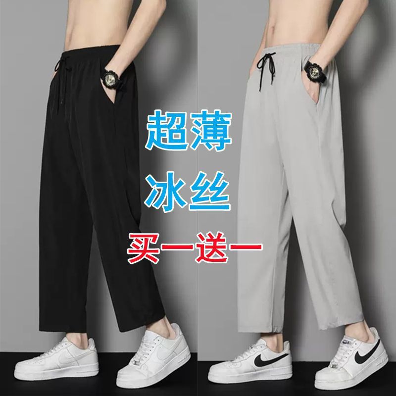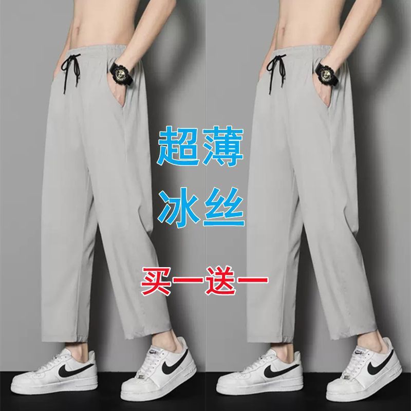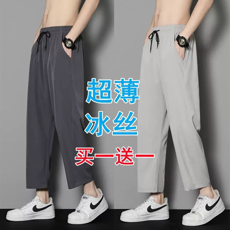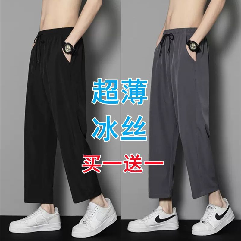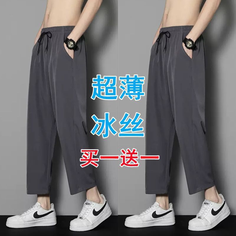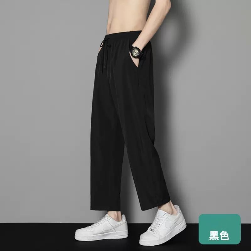 여름 얇은 아이스 실크 바지 간단한 느슨한 직선 발목 길이 바지 남자 한국식 올매치 남자 바지 캐주얼 바지