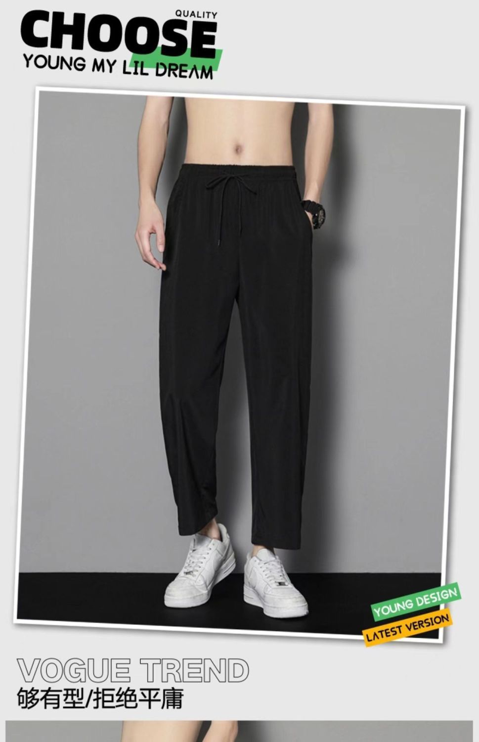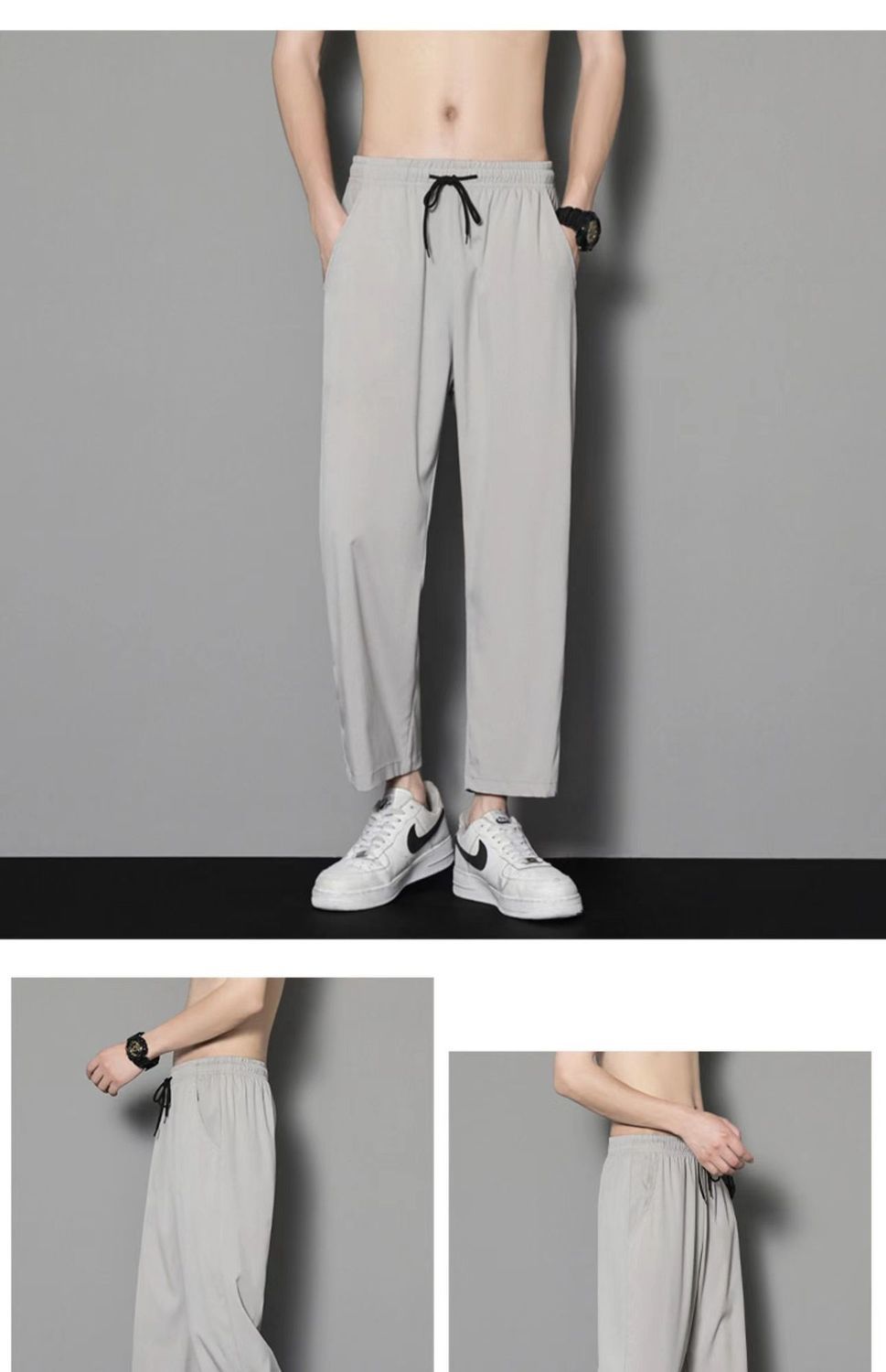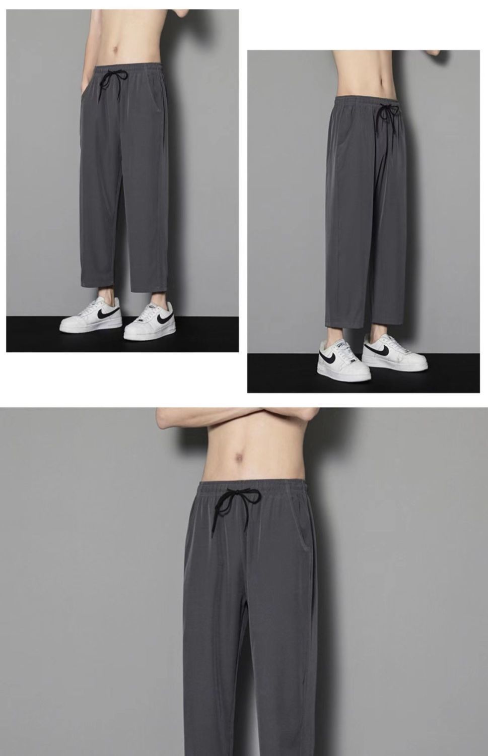 여름 얇은 아이스 실크 바지 간단한 느슨한 직선 발목 길이 바지 남자 한국식 올매치 남자 바지 캐주얼 바지스토어 가기
