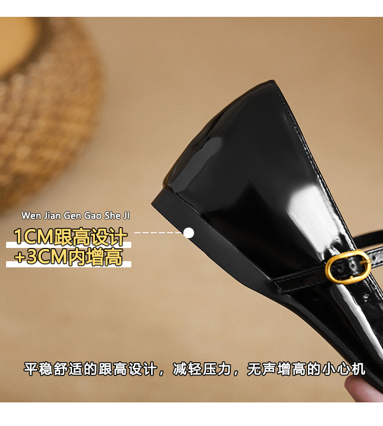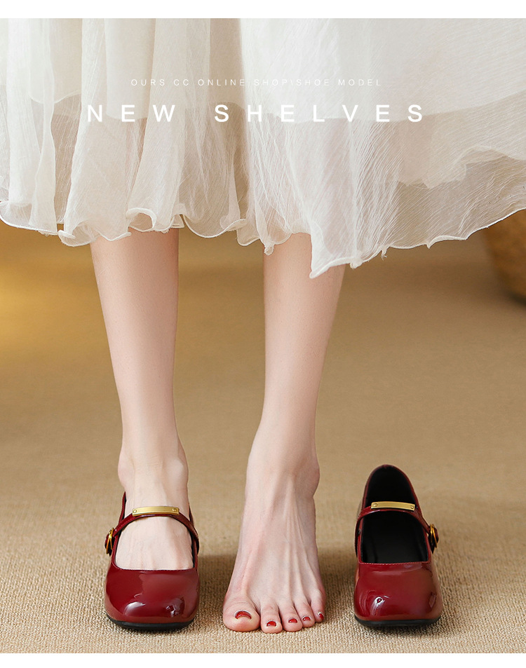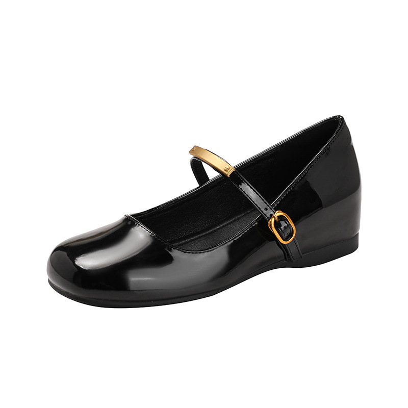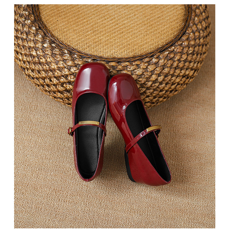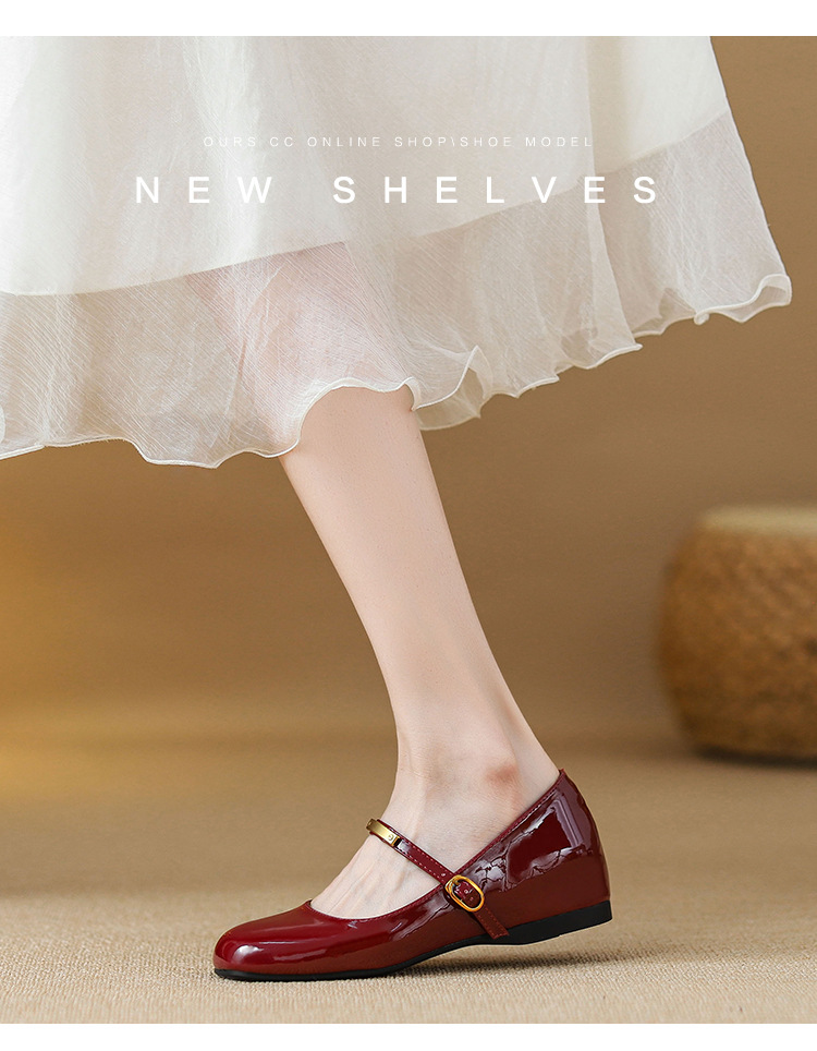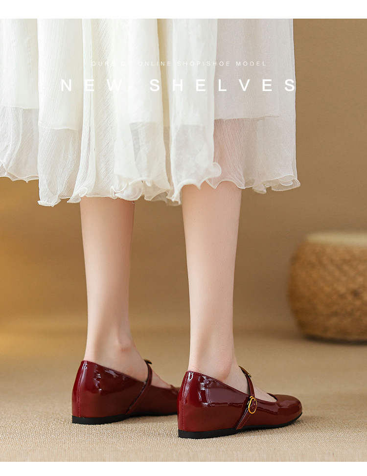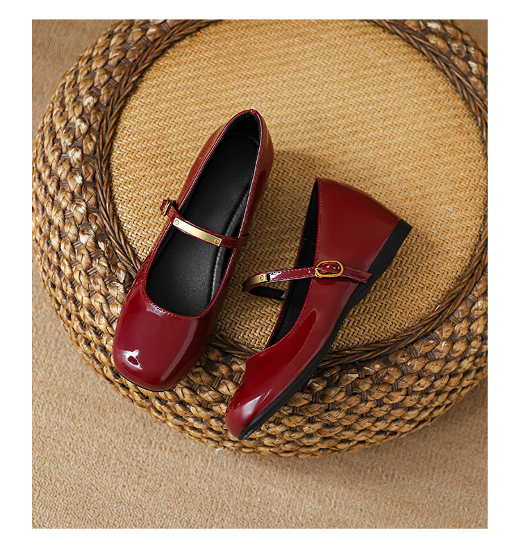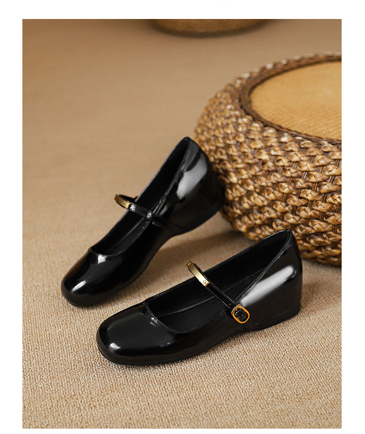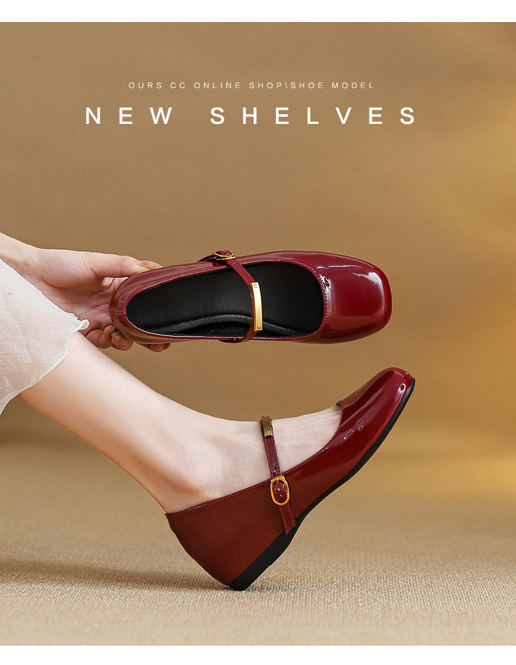 작은 내부 높이 5cm 발레 신발 스퀘어 버클 스트랩 복고풍 입 진품 가죽 메리 제인 신발 여성