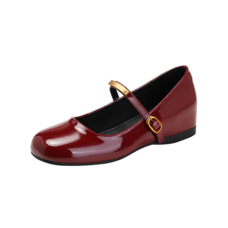 작은 내부 높이 5cm 발레 신발 스퀘어 버클 스트랩 복고풍 입 진품 가죽 메리 제인 신발 여성스토어 가기