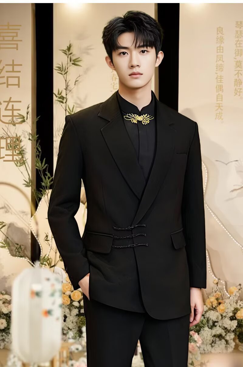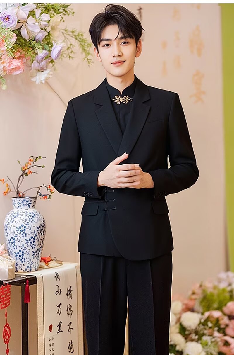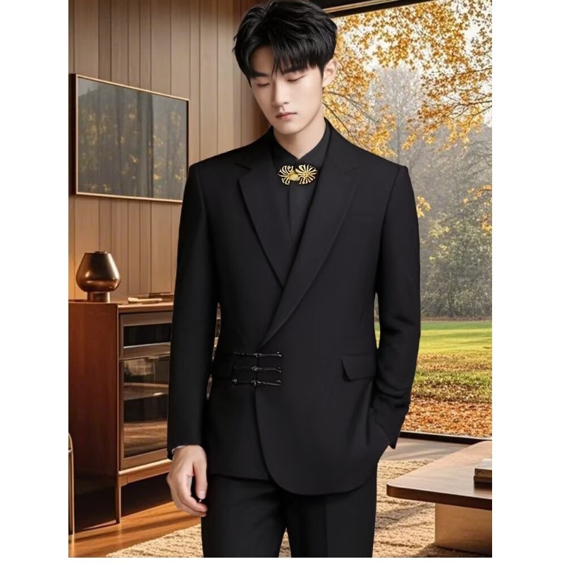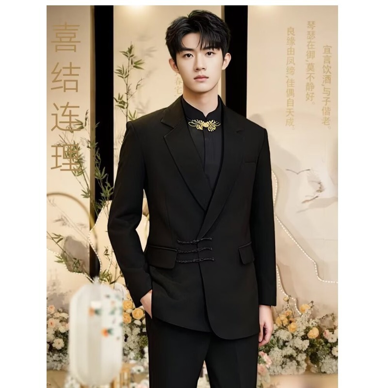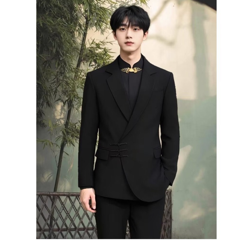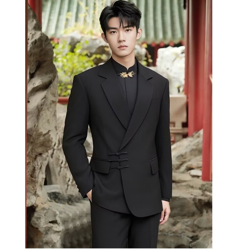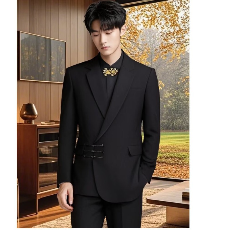 참여 새로운 중국 남성 탕 세트 뉴 중산 세트 세트 세트 느슨한 중화 민국 스타일 웨딩 세트 봄과 가을 세트 버클