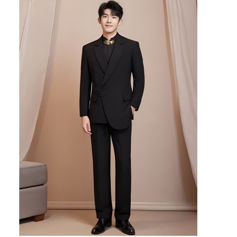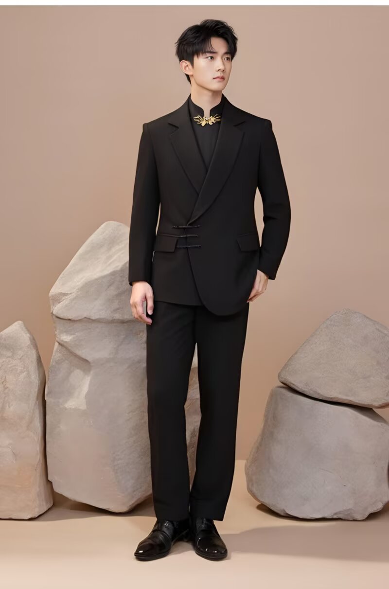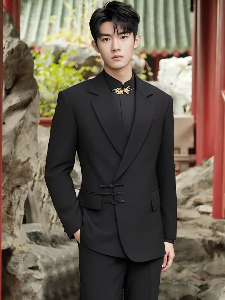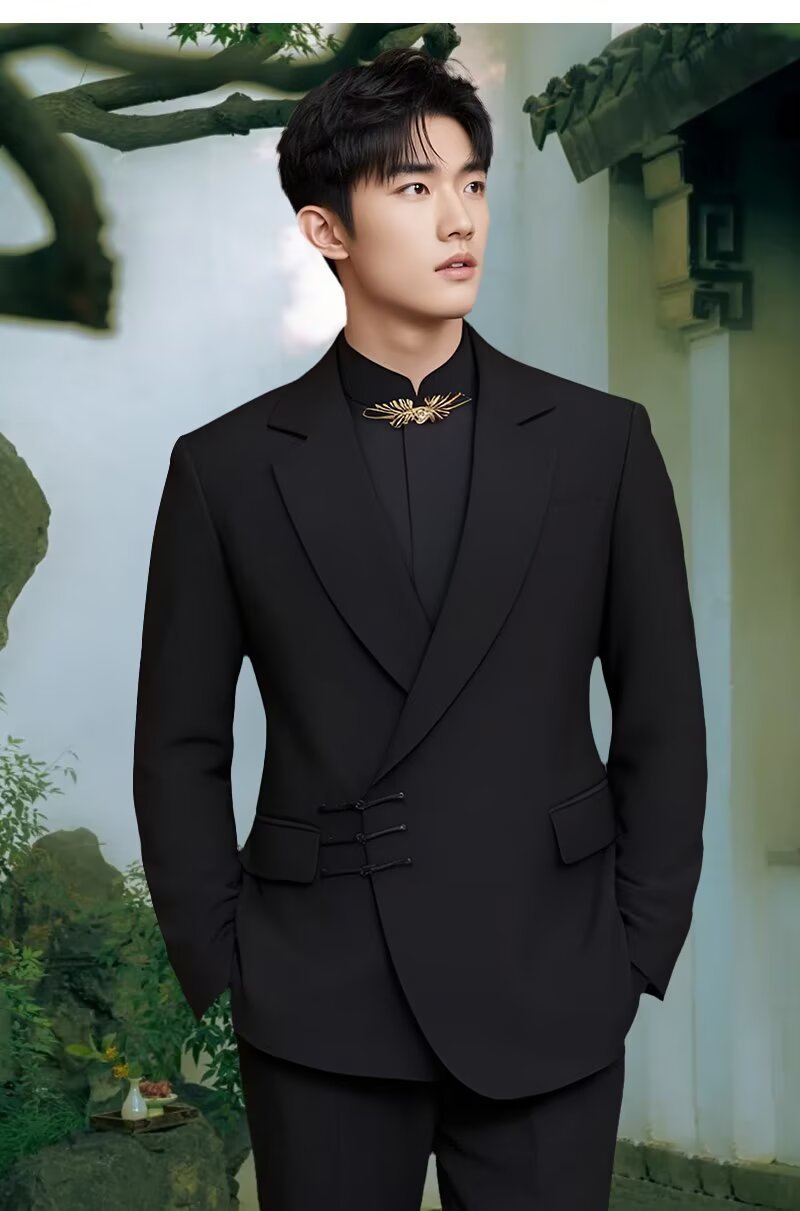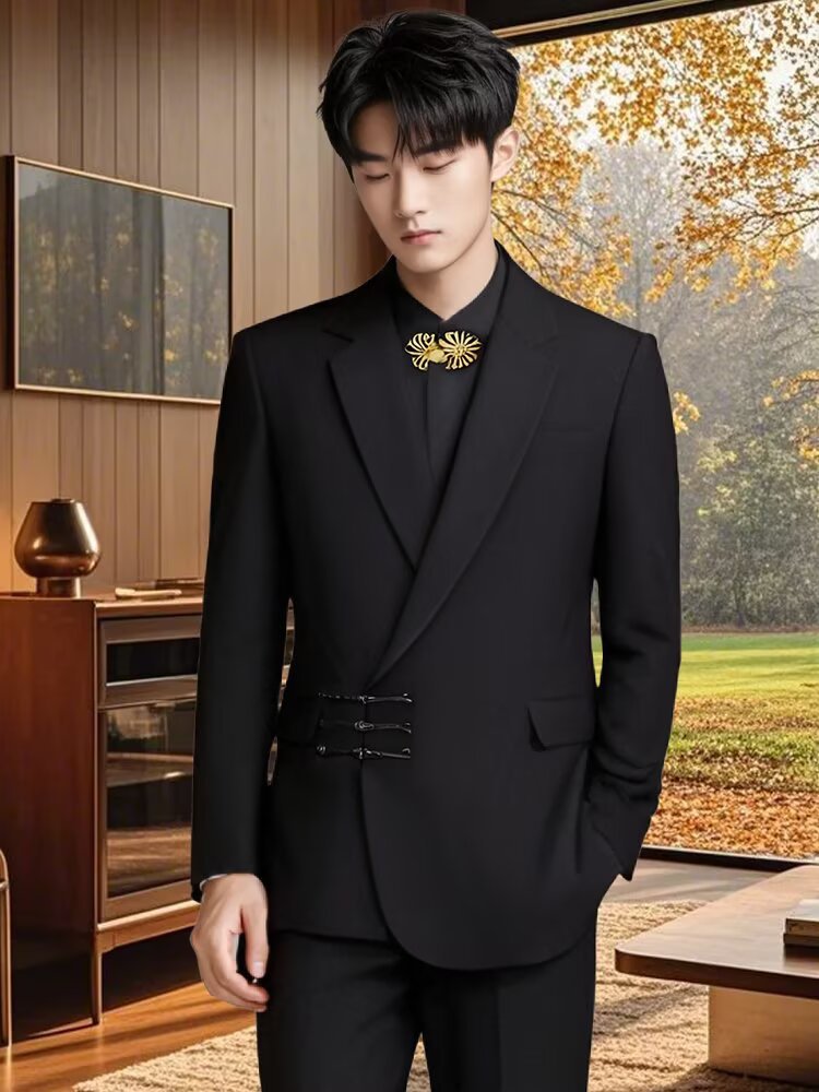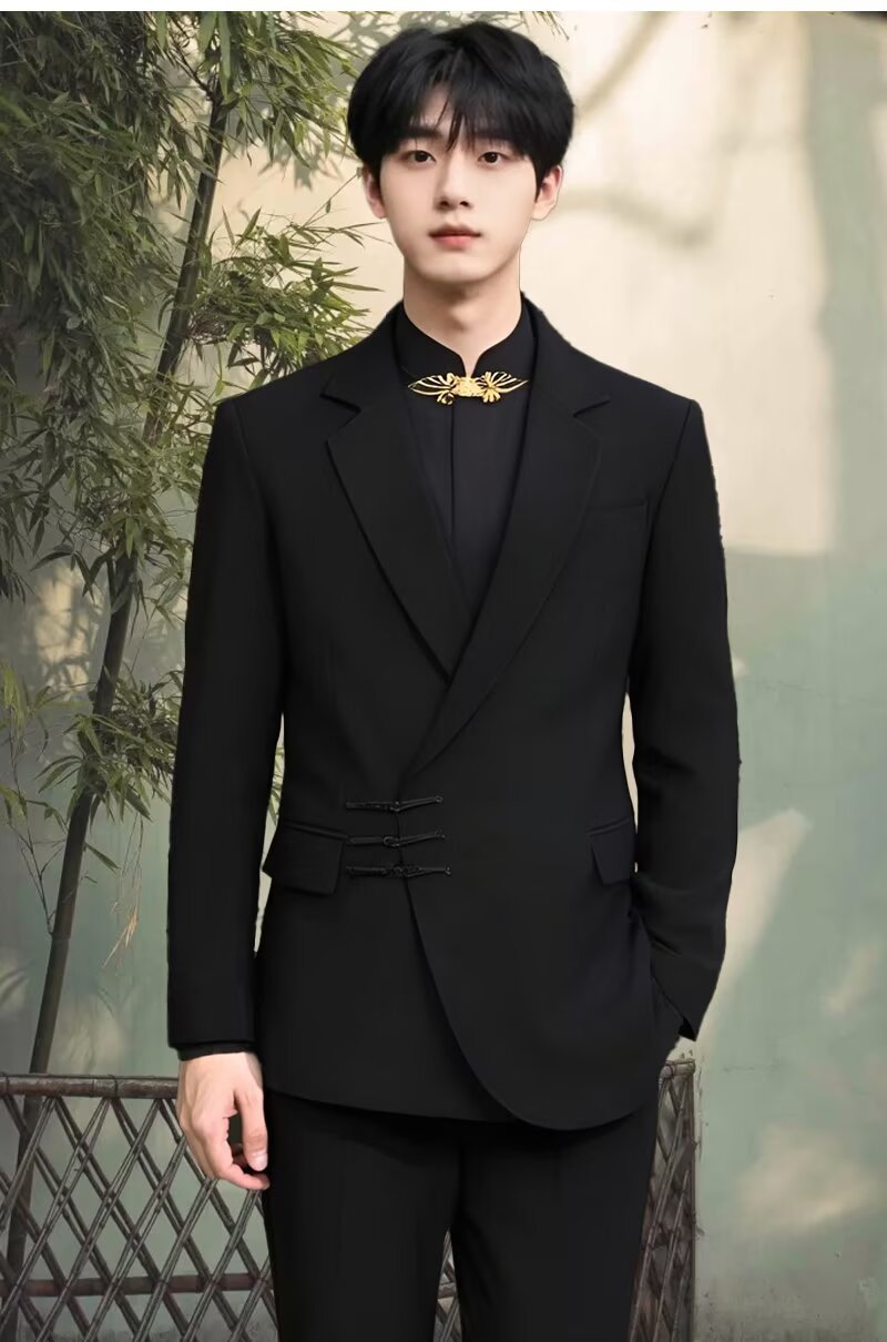 참여 새로운 중국 남성 탕 세트 뉴 중산 세트 세트 세트 느슨한 중화 민국 스타일 웨딩 세트 봄과 가을 세트 버클