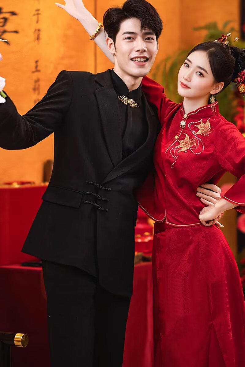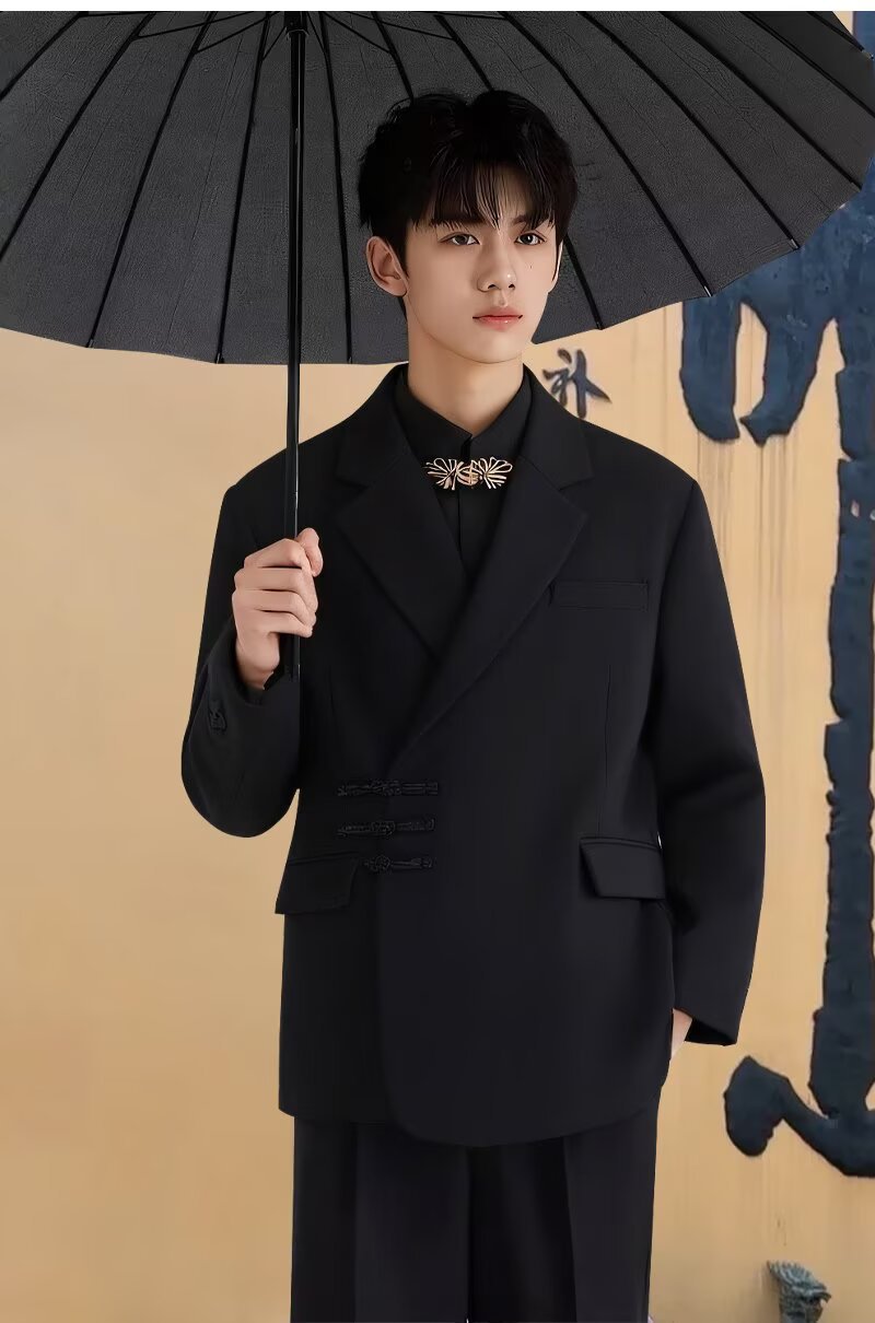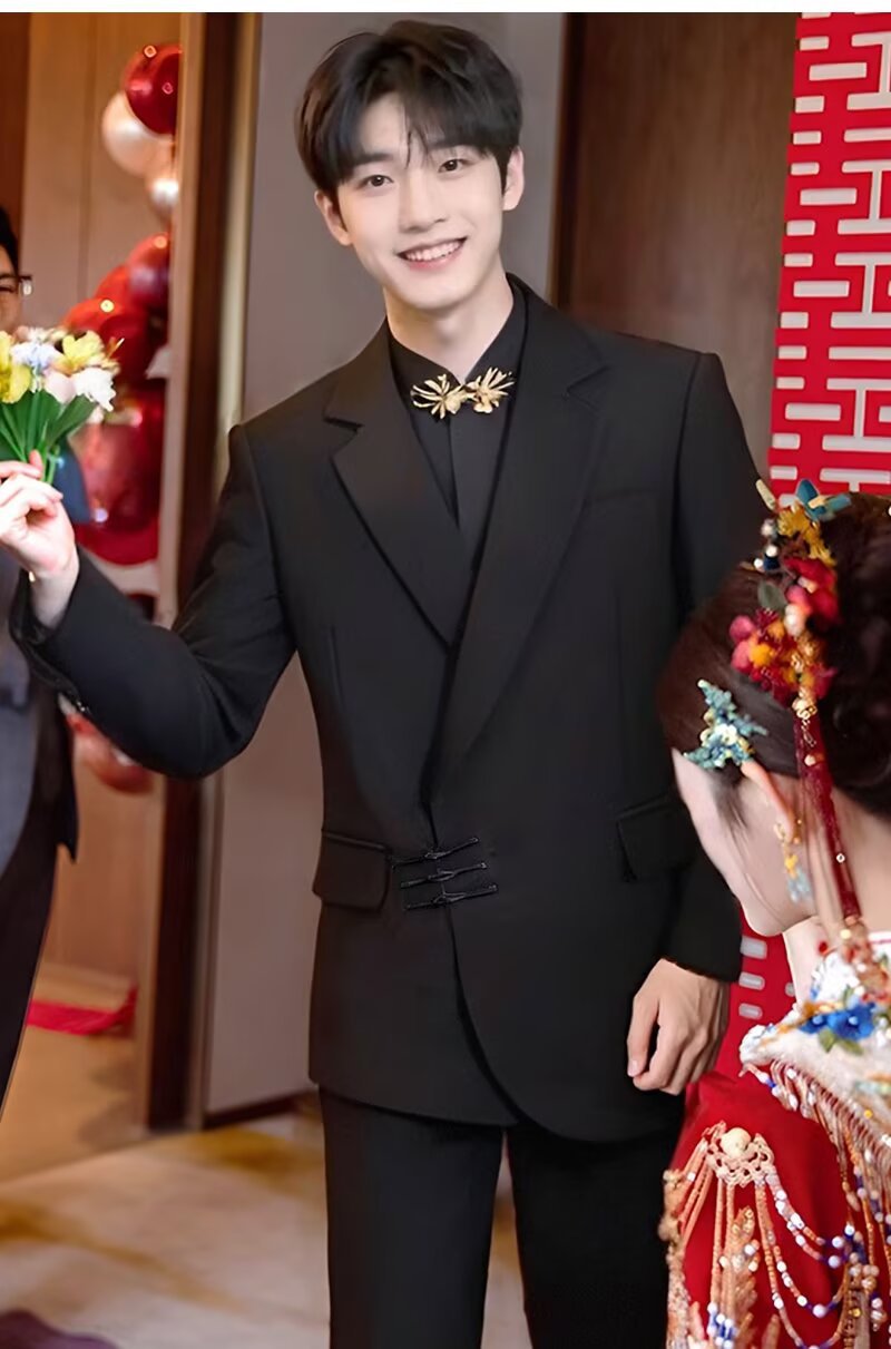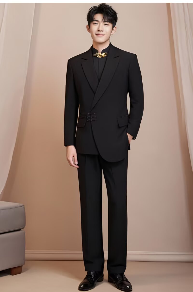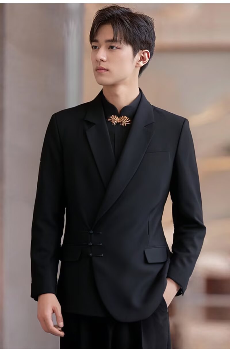 참여 새로운 중국 남성 탕 세트 뉴 중산 세트 세트 세트 느슨한 중화 민국 스타일 웨딩 세트 봄과 가을 세트 버클