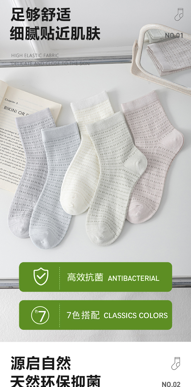 쿨센스 양말 여성용 여름 중형 튜브 대나무 섬유 항균 통기성 땀 흡수 여성의 초박형 에어컨 메쉬 스타킹스토어 가기