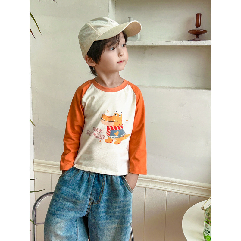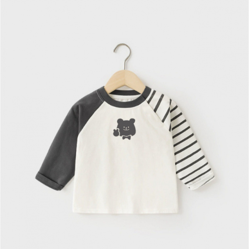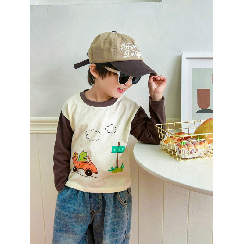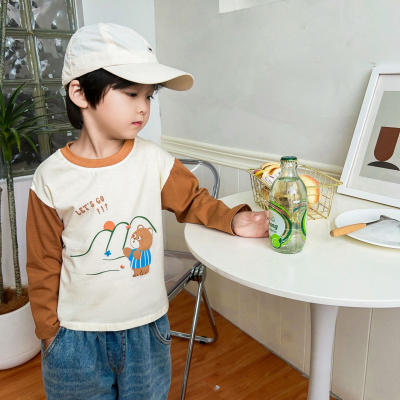 새로운 어린이 티셔츠 100% 코튼 보이즈 탑 긴 소매 싱글 피스 여성의 보물 순수한 면베이스 옷 만화 어린이 의류스토어 가기