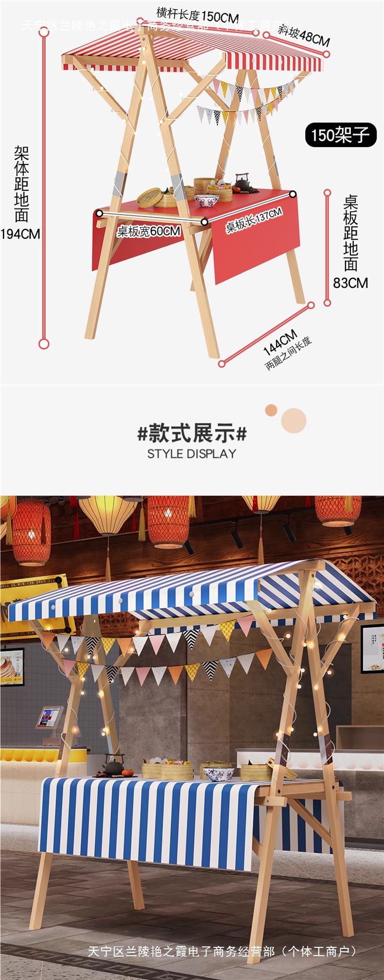 • [바퀴 달린 모델] 150 빨간색과 흰색 천장 천 + 빨간색과 흰색 식탁보