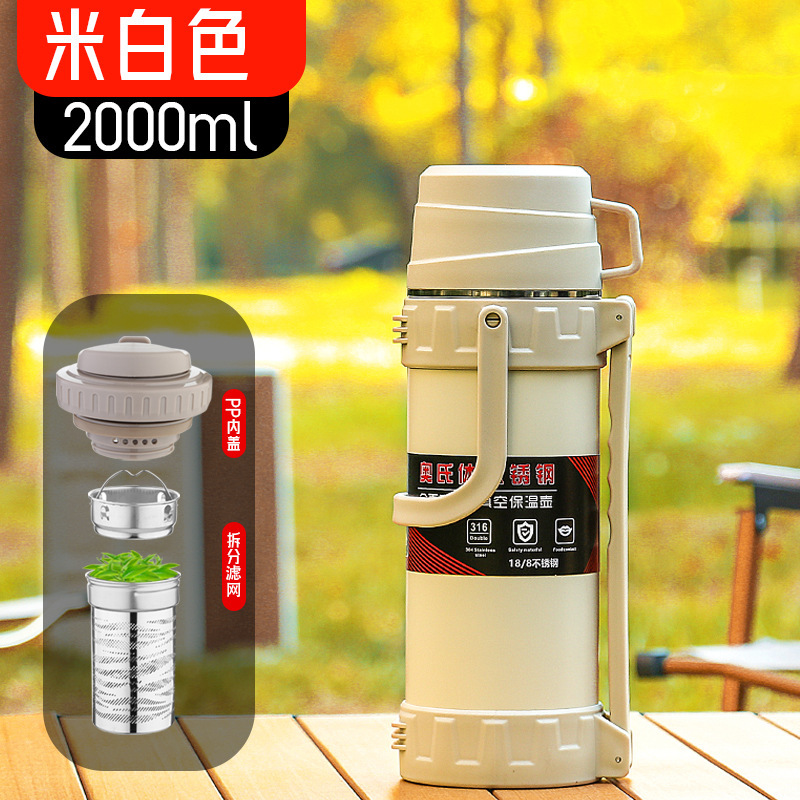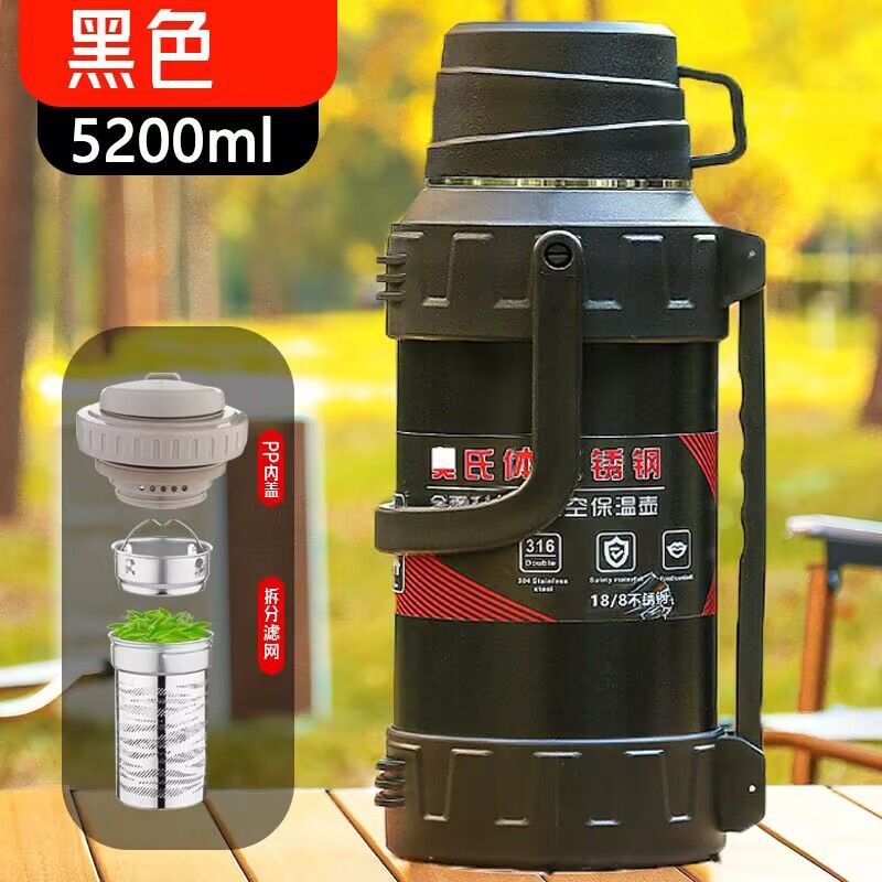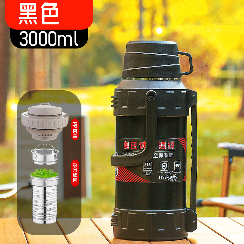 보온병 대용량 야외 36 스테인레스 스틸 자동차 휴대용 여행 주전자 대형 차 찻잔 3L