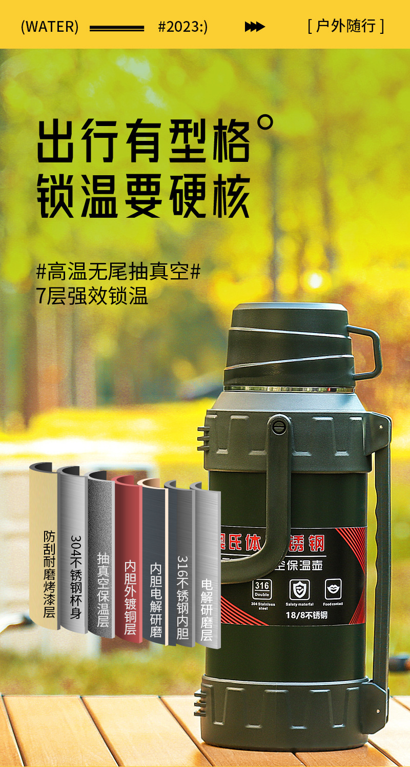 보온병 대용량 야외 36 스테인레스 스틸 자동차 휴대용 여행 주전자 대형 차 찻잔 3L스토어 가기