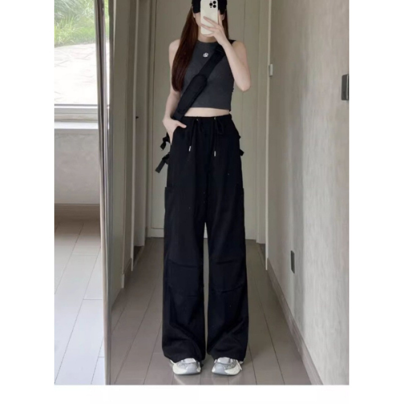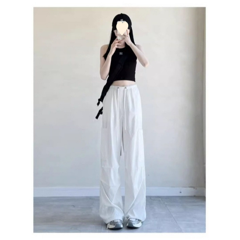 흰색 낙하산 크록 바지 여성 여름 2025 새로운 높은 허리 캐주얼 빠른 건조 낙하산 바지 야외 등산 스포츠 바지스토어 가기