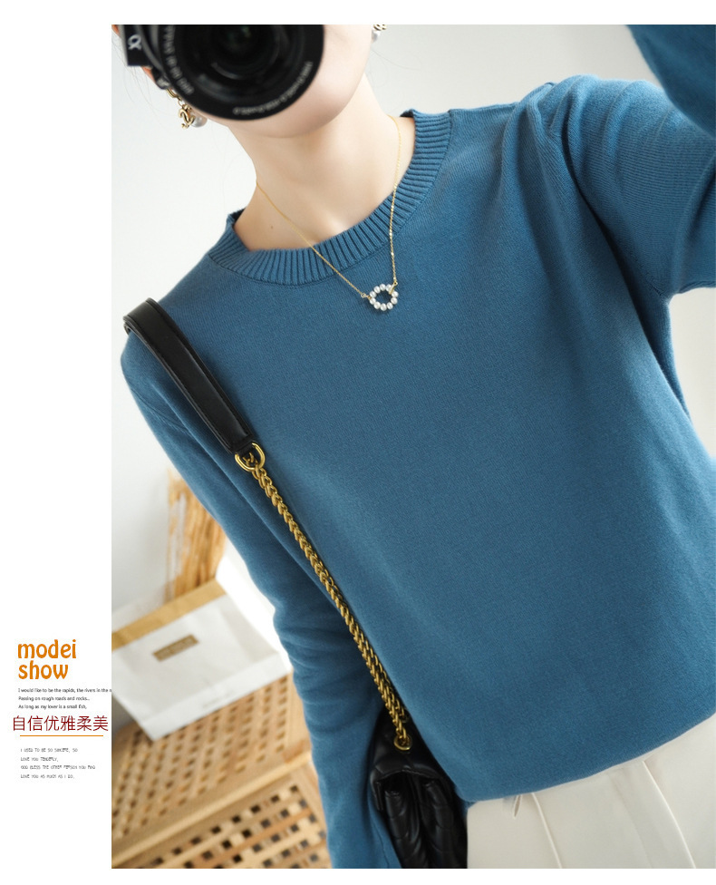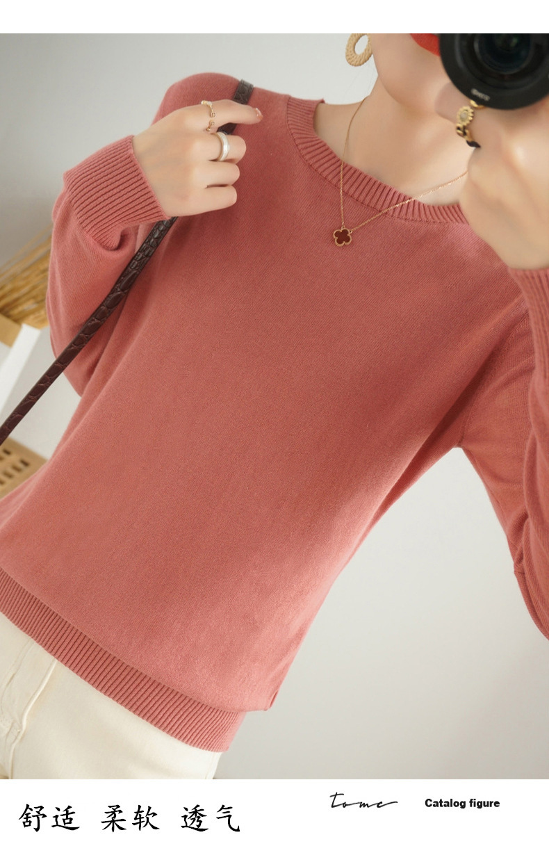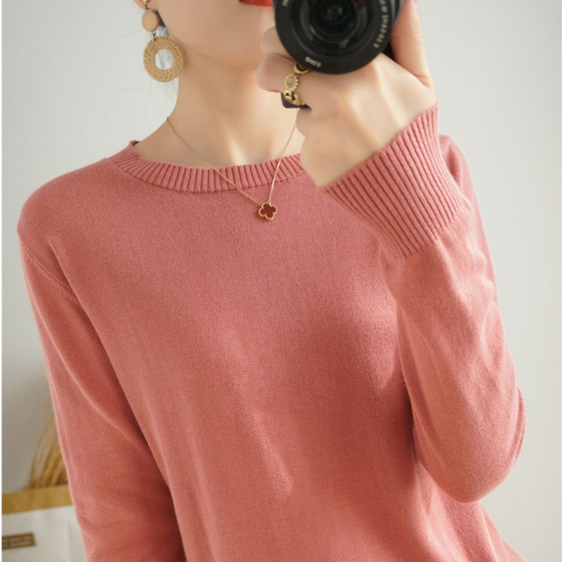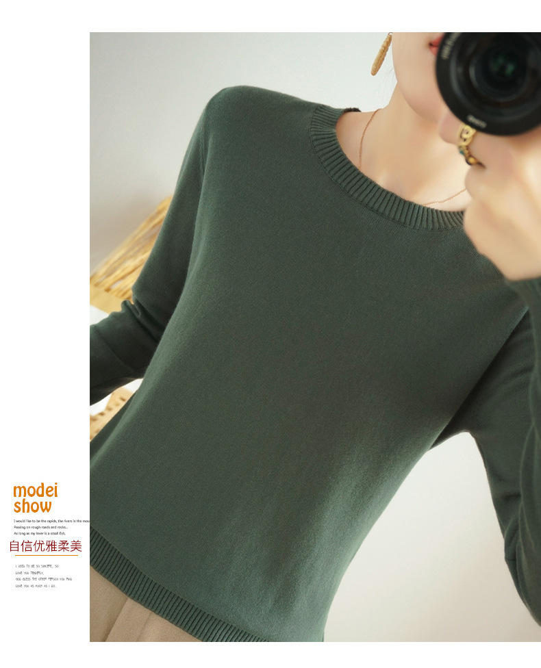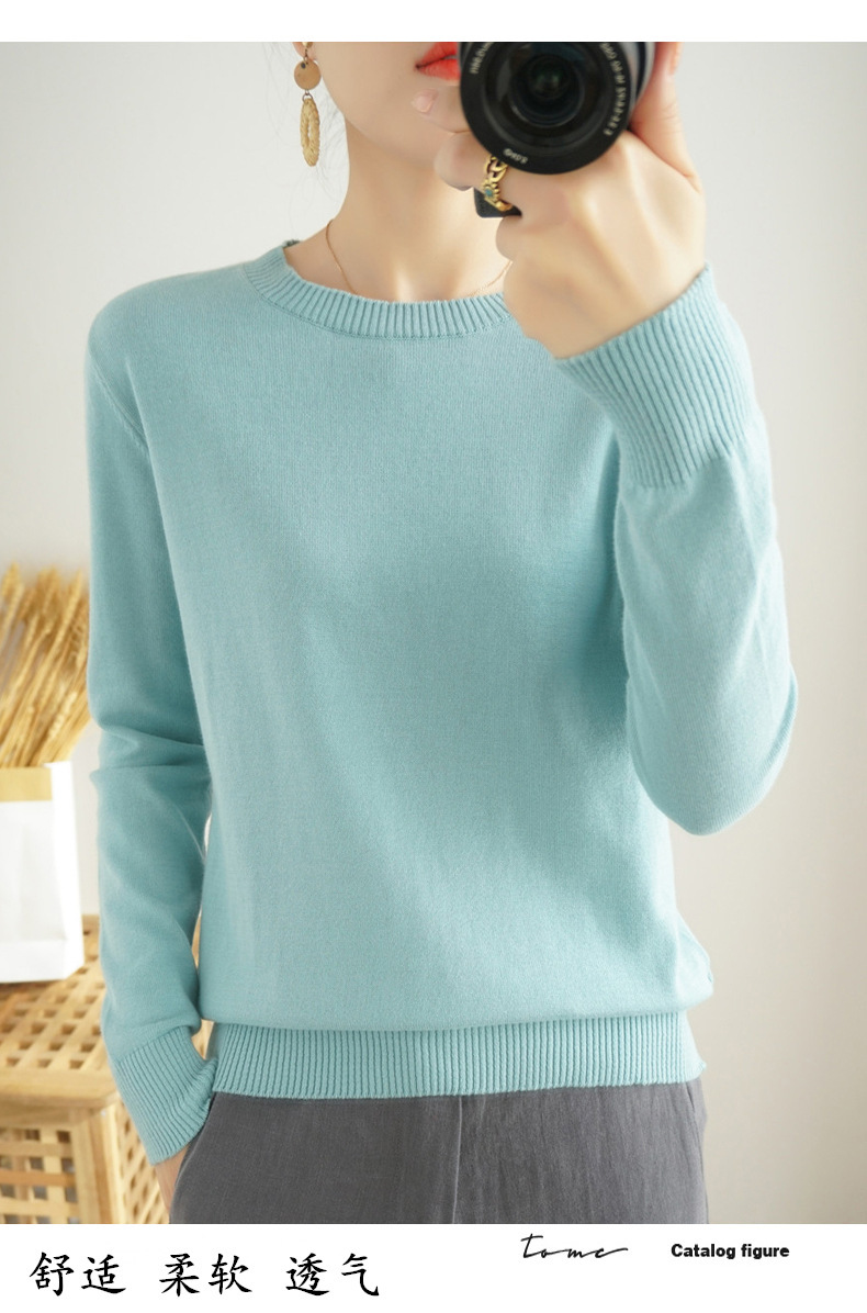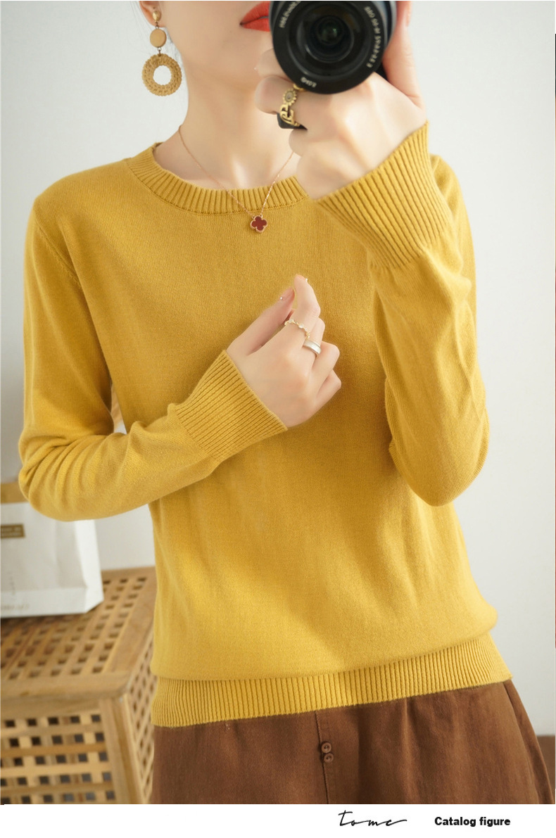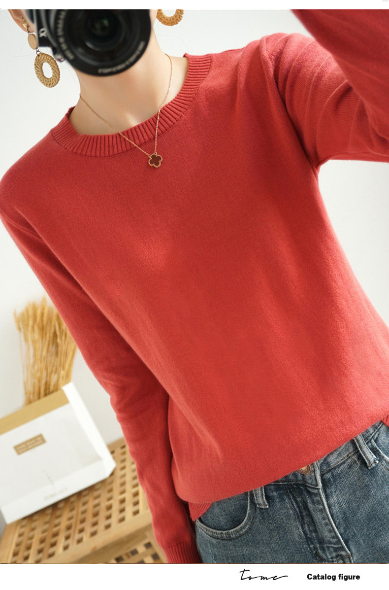 봄과 가을 100 면 니트 스웨터 여성용 라운드 넥 솔리드 컬러 긴 소매 얇은 탑 느슨한 풀오버 스웨터스토어 가기