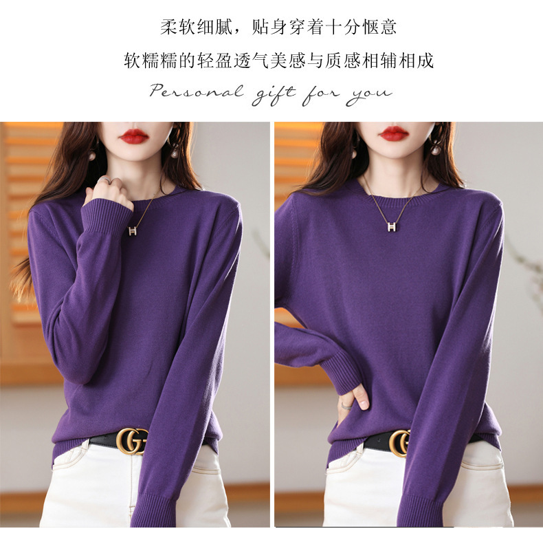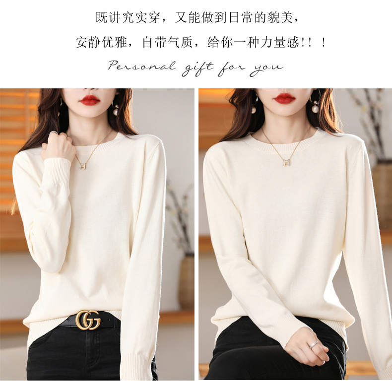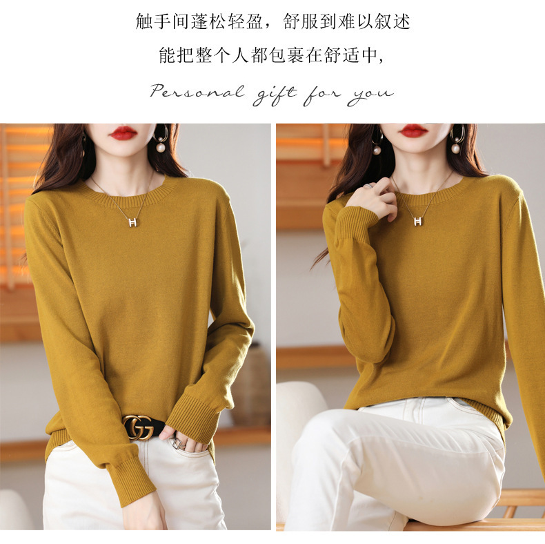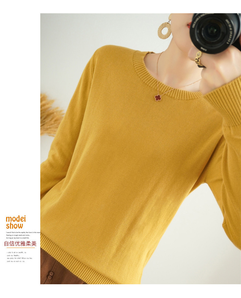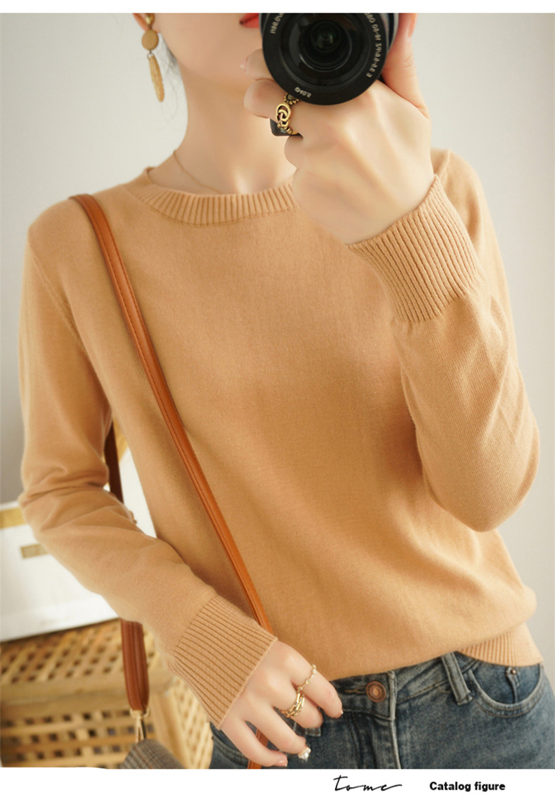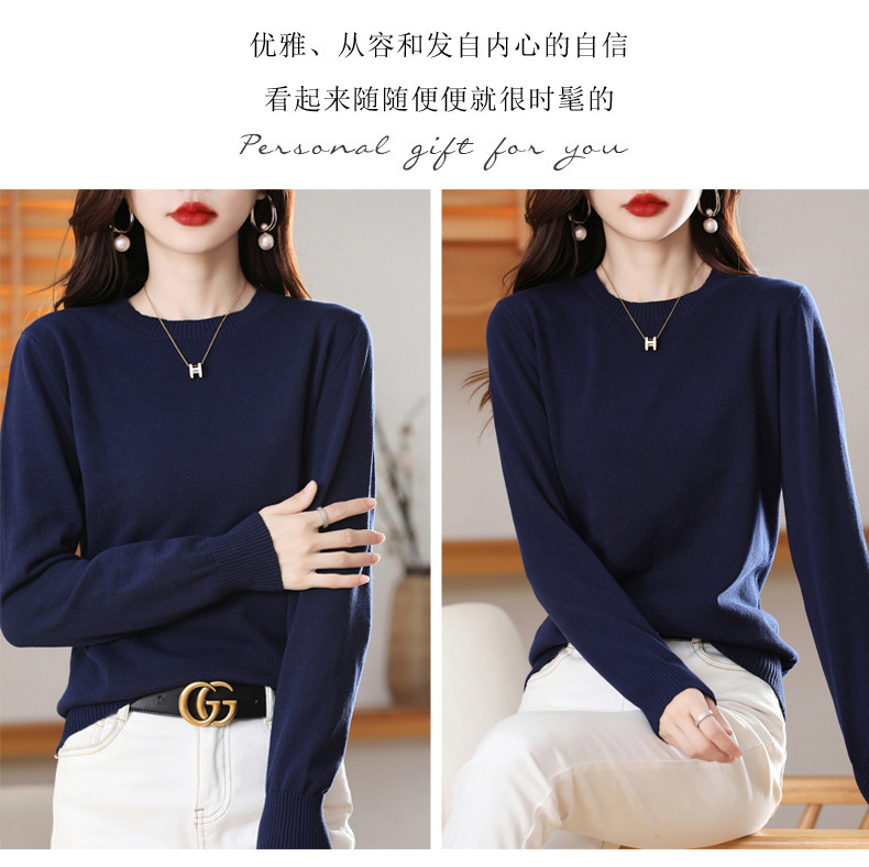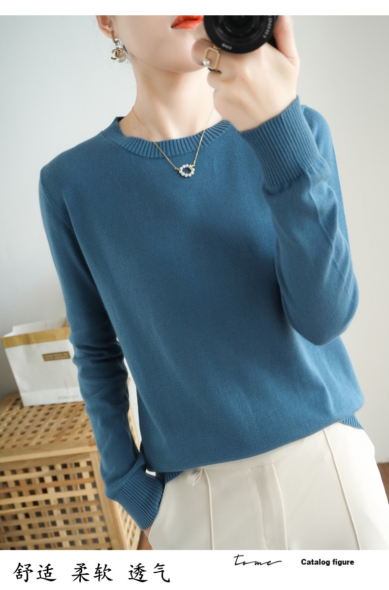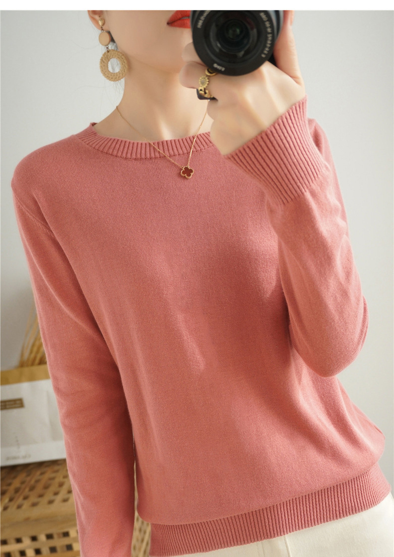봄과 가을 100 면 니트 스웨터 여성용 라운드 넥 솔리드 컬러 긴 소매 얇은 탑 느슨한 풀오버 스웨터스토어 가기