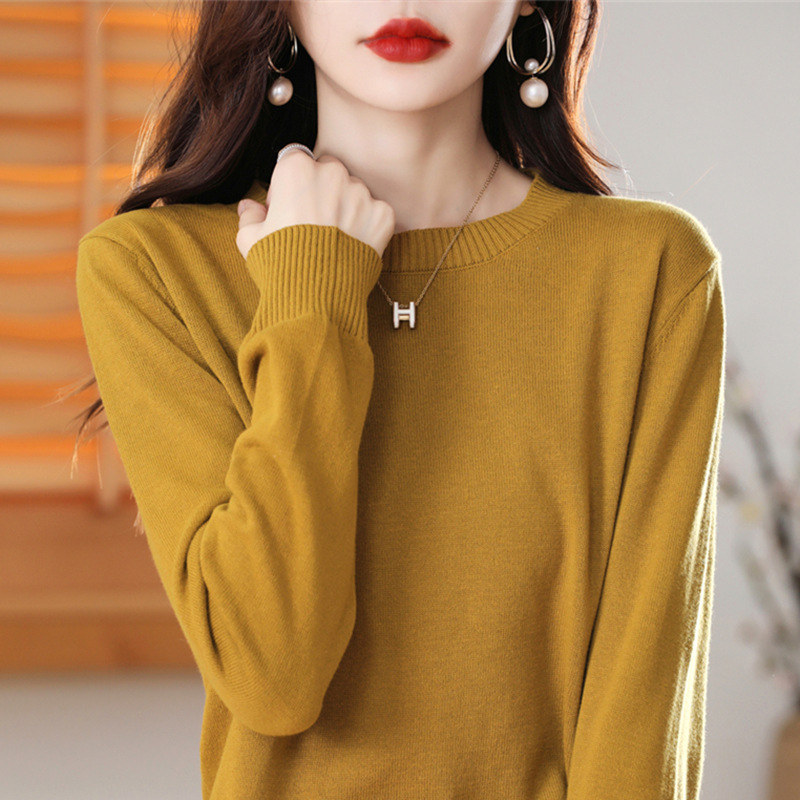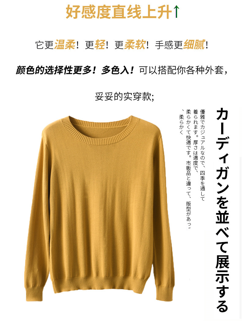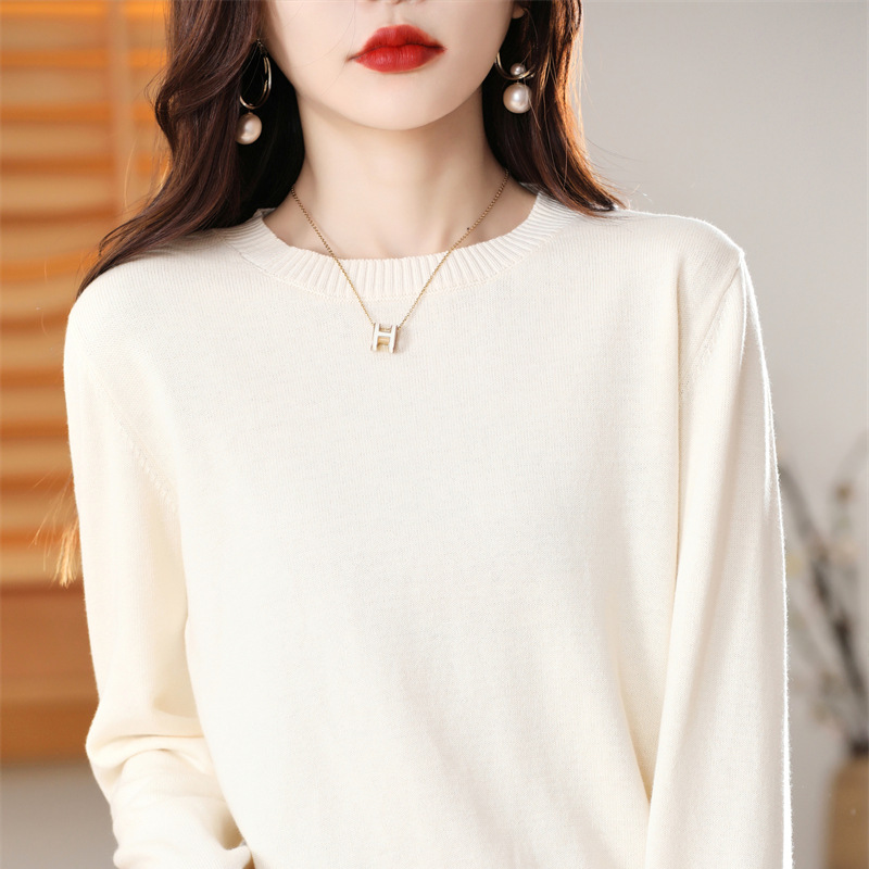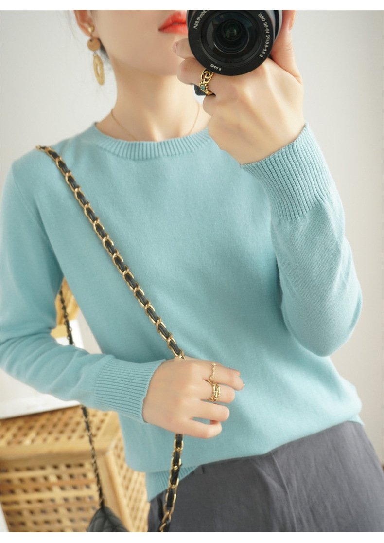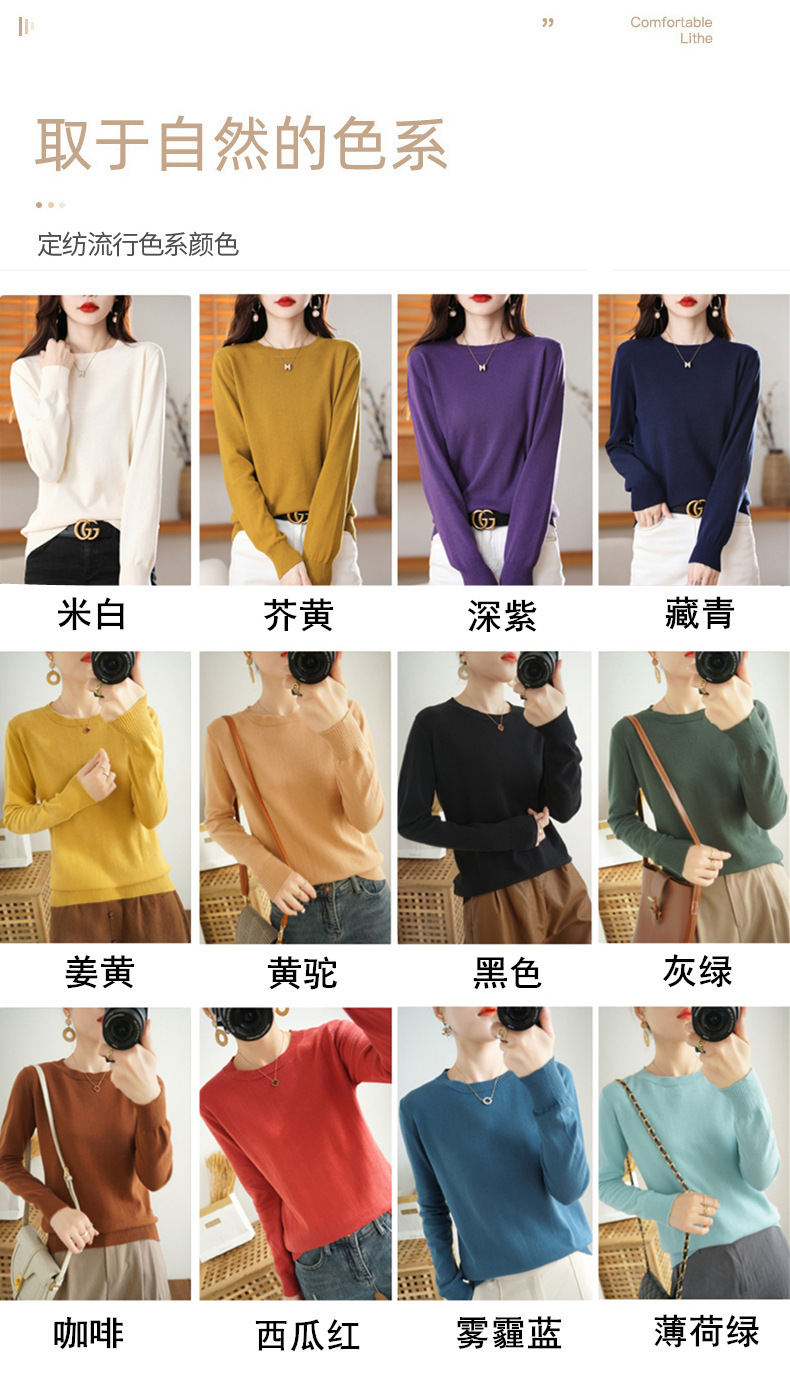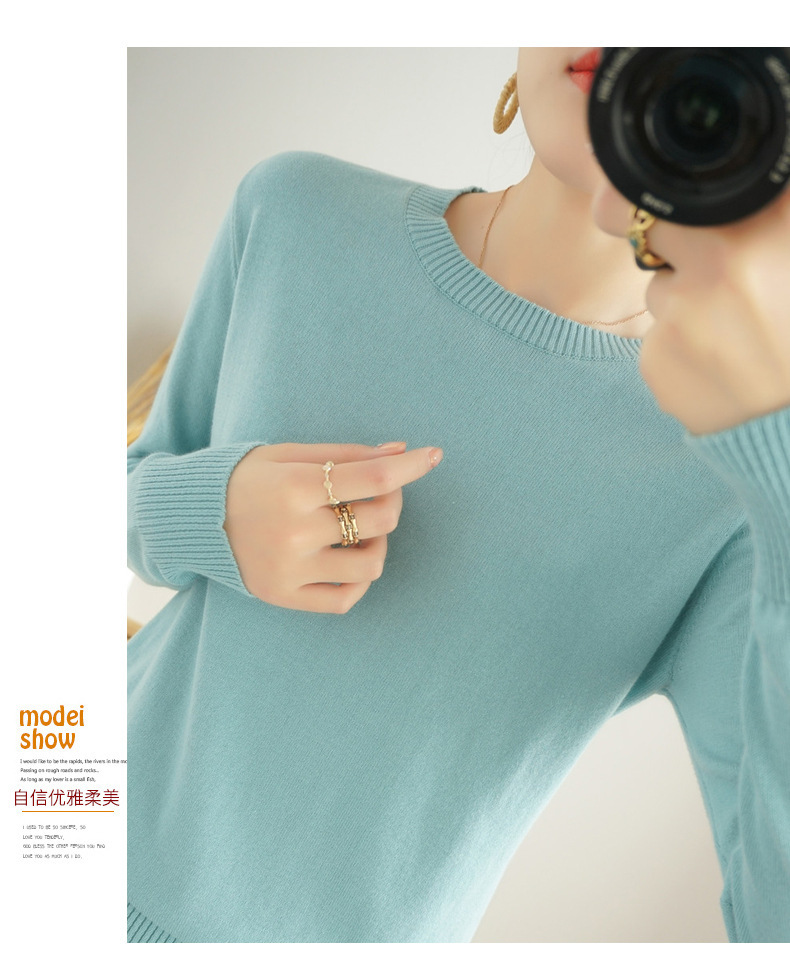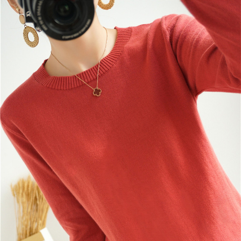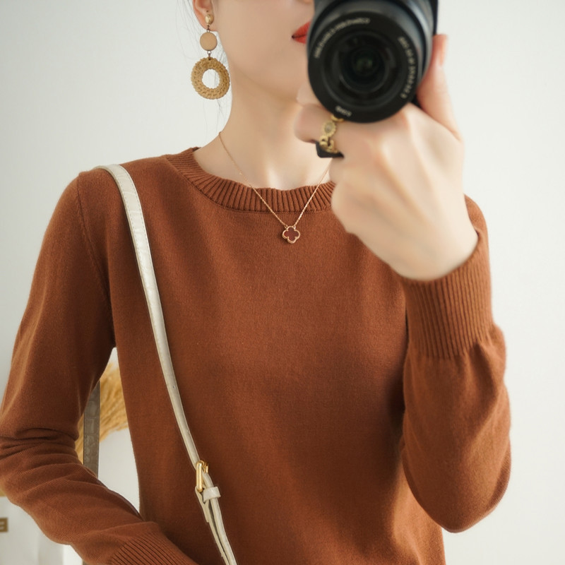 봄과 가을 100 면 니트 스웨터 여성용 라운드 넥 솔리드 컬러 긴 소매 얇은 탑 느슨한 풀오버 스웨터스토어 가기