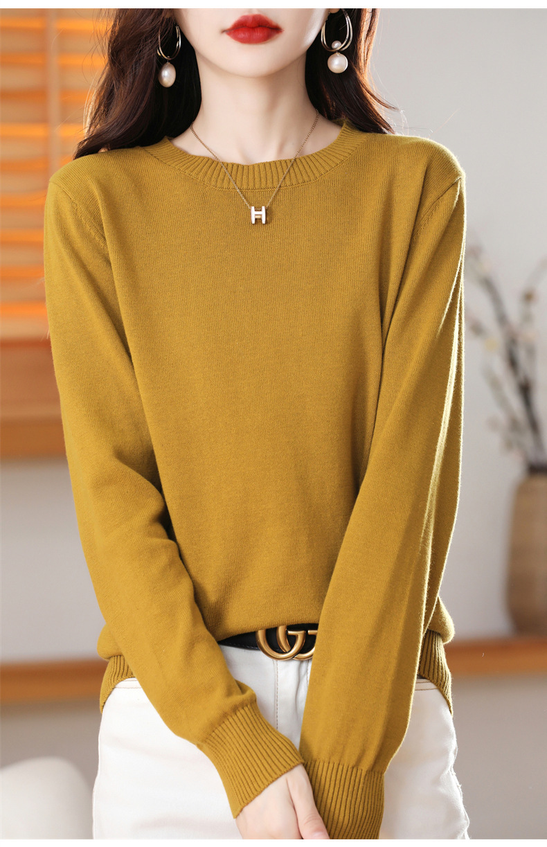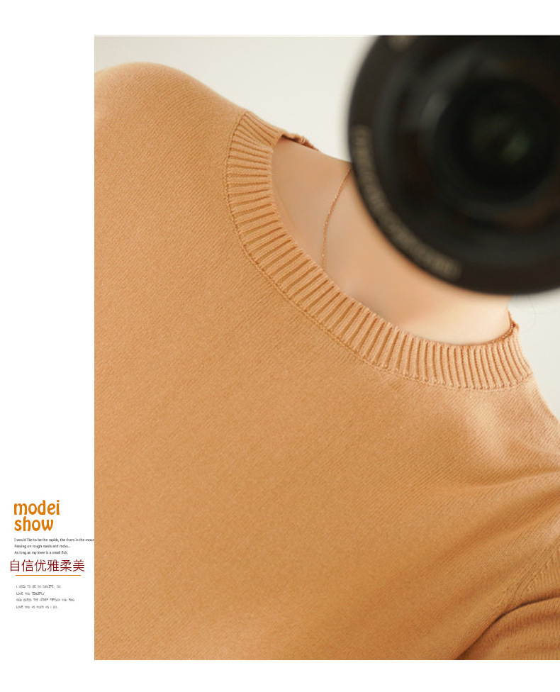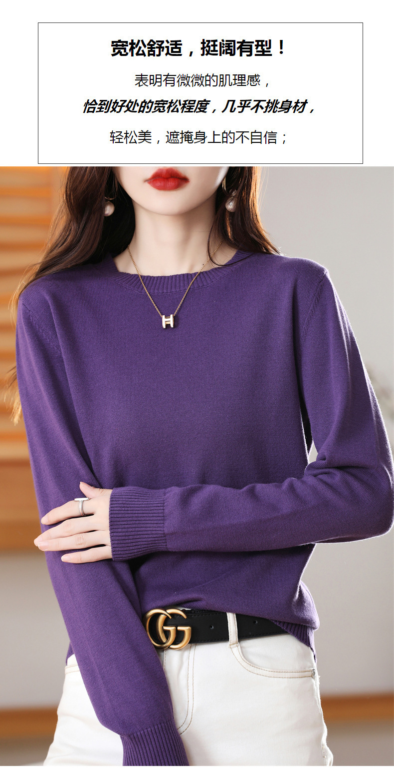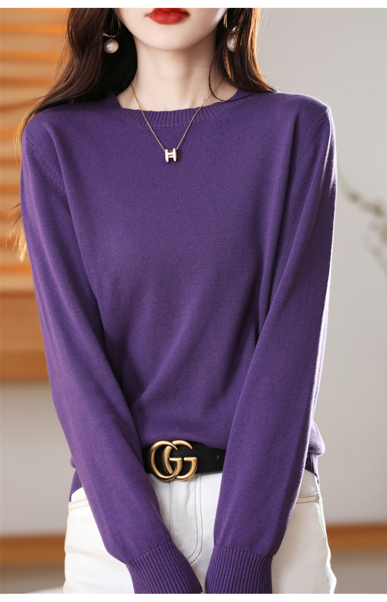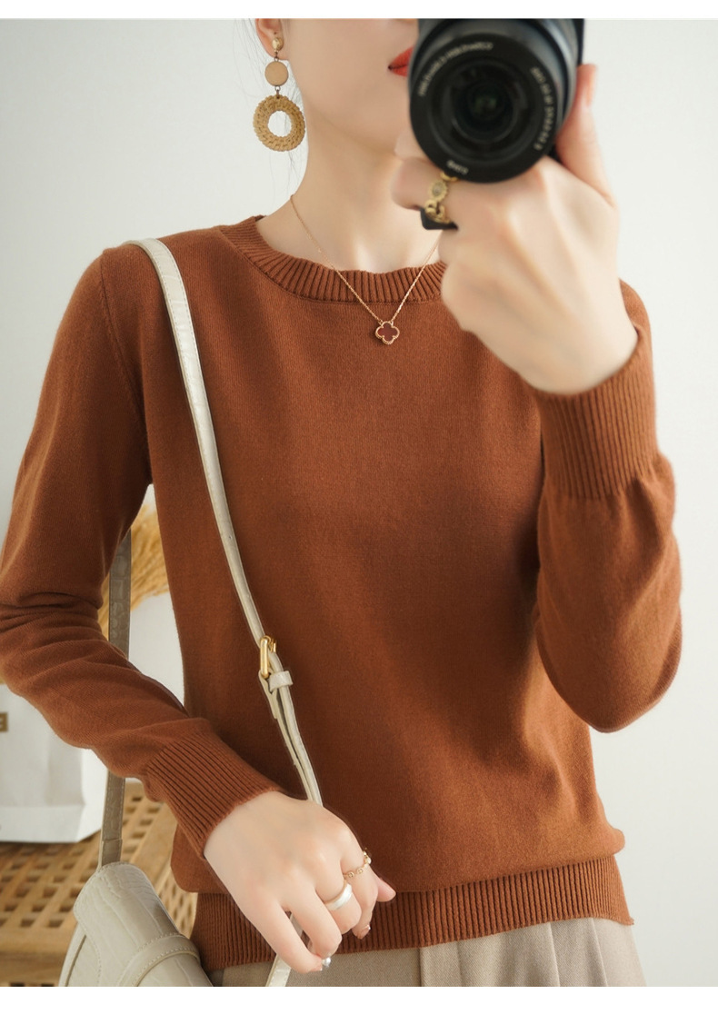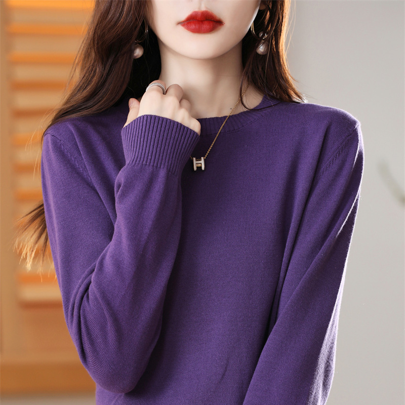 봄과 가을 100 면 니트 스웨터 여성용 라운드 넥 솔리드 컬러 긴 소매 얇은 탑 느슨한 풀오버 스웨터스토어 가기