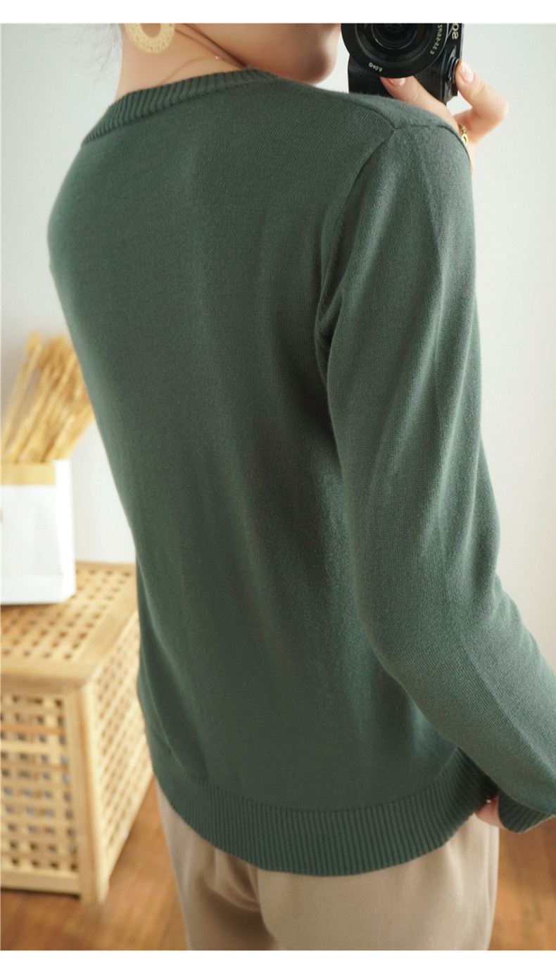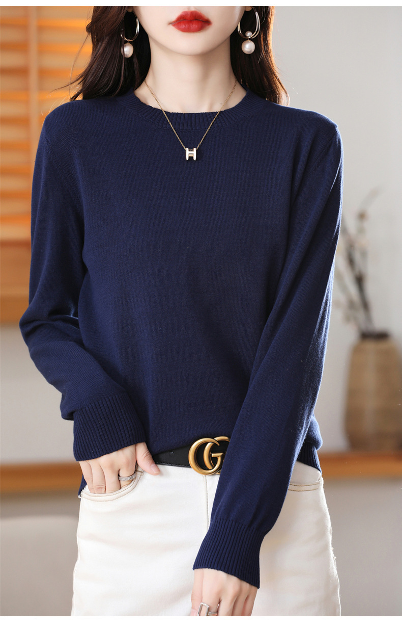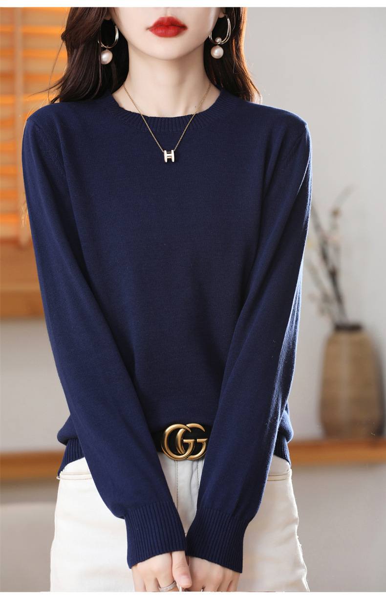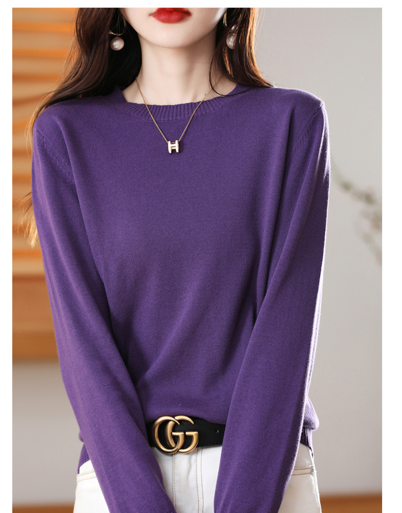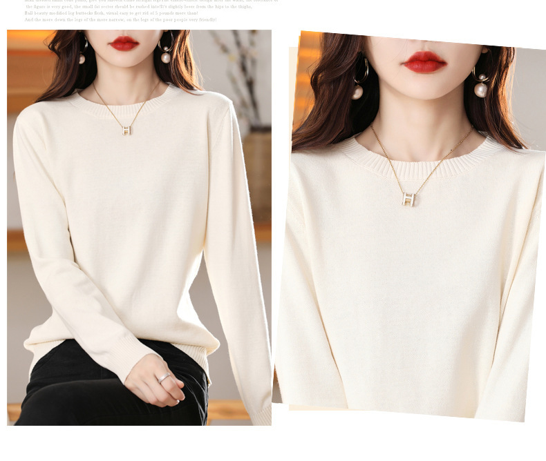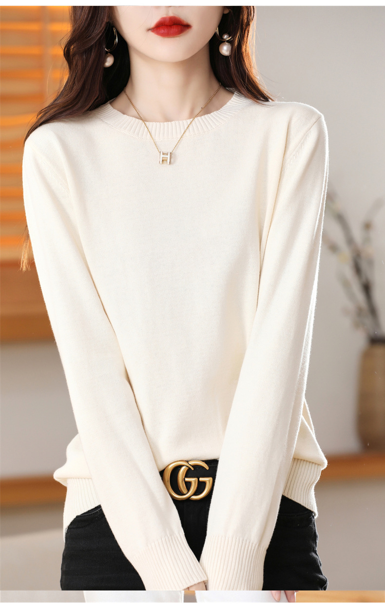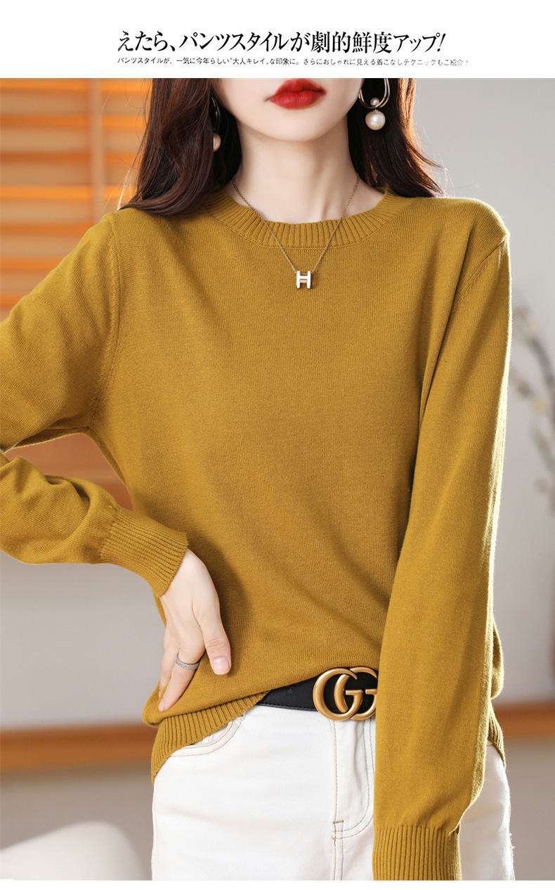 봄과 가을 100 면 니트 스웨터 여성용 라운드 넥 솔리드 컬러 긴 소매 얇은 탑 느슨한 풀오버 스웨터스토어 가기