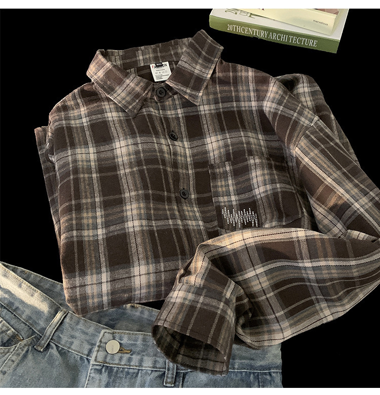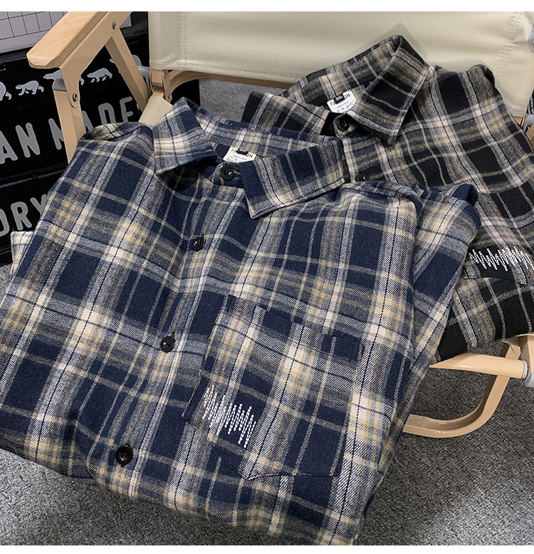 美式格子衬衫男春秋季新款潮牌百搭复古长袖衬衣高街休闲外套上衣