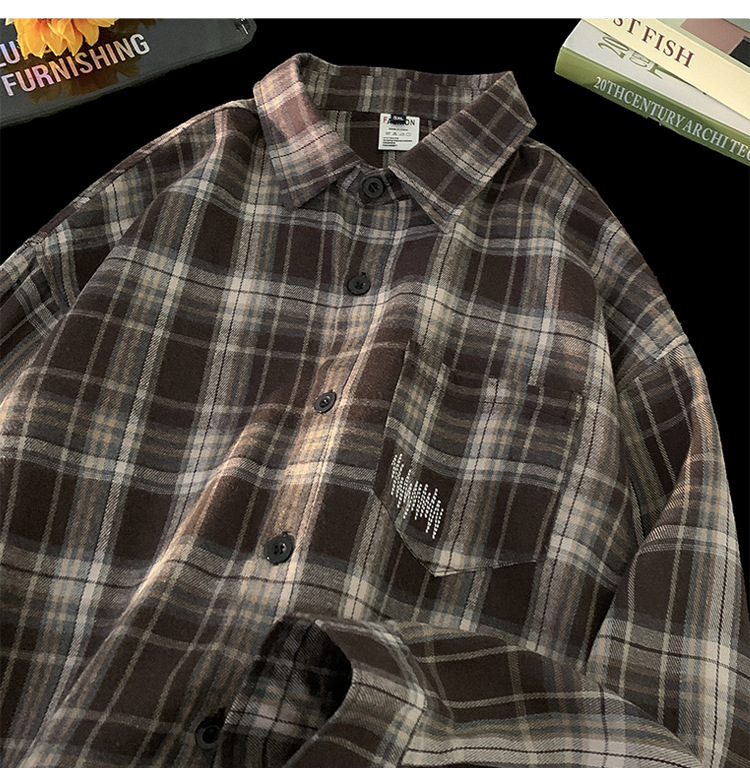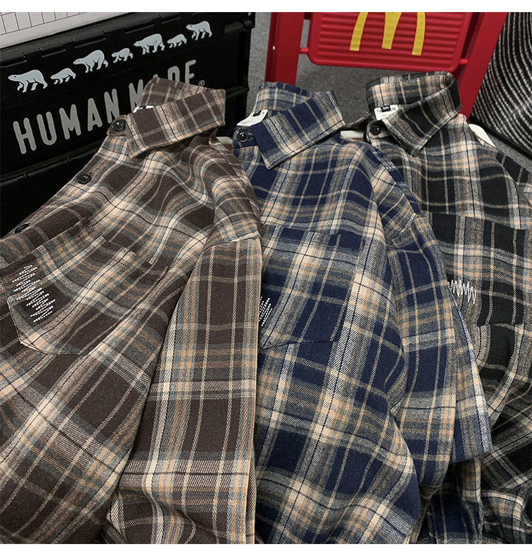 미국 격자 무늬 셔츠 남자의 봄과 가을 새로운 패션 브랜드 올 매치 레트로 긴 소매 셔츠 하이 스트리트 캐주얼 재킷 탑