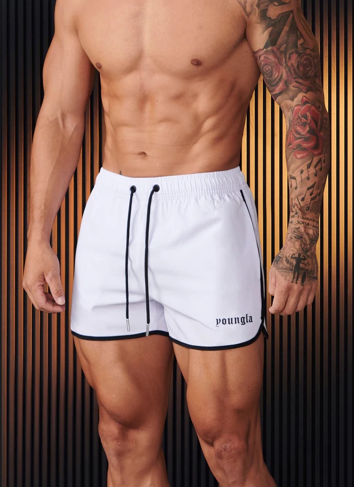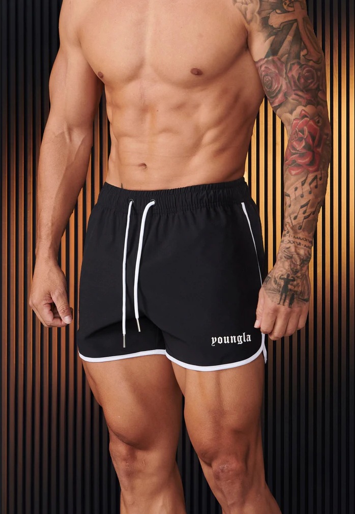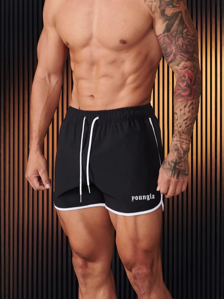 YOUNGLA 남성 반바지 고급 메쉬 빠른 건조 통기성 인쇄 캐주얼 반바지 야외 러닝 트레이닝 비치 바지스토어 가기
