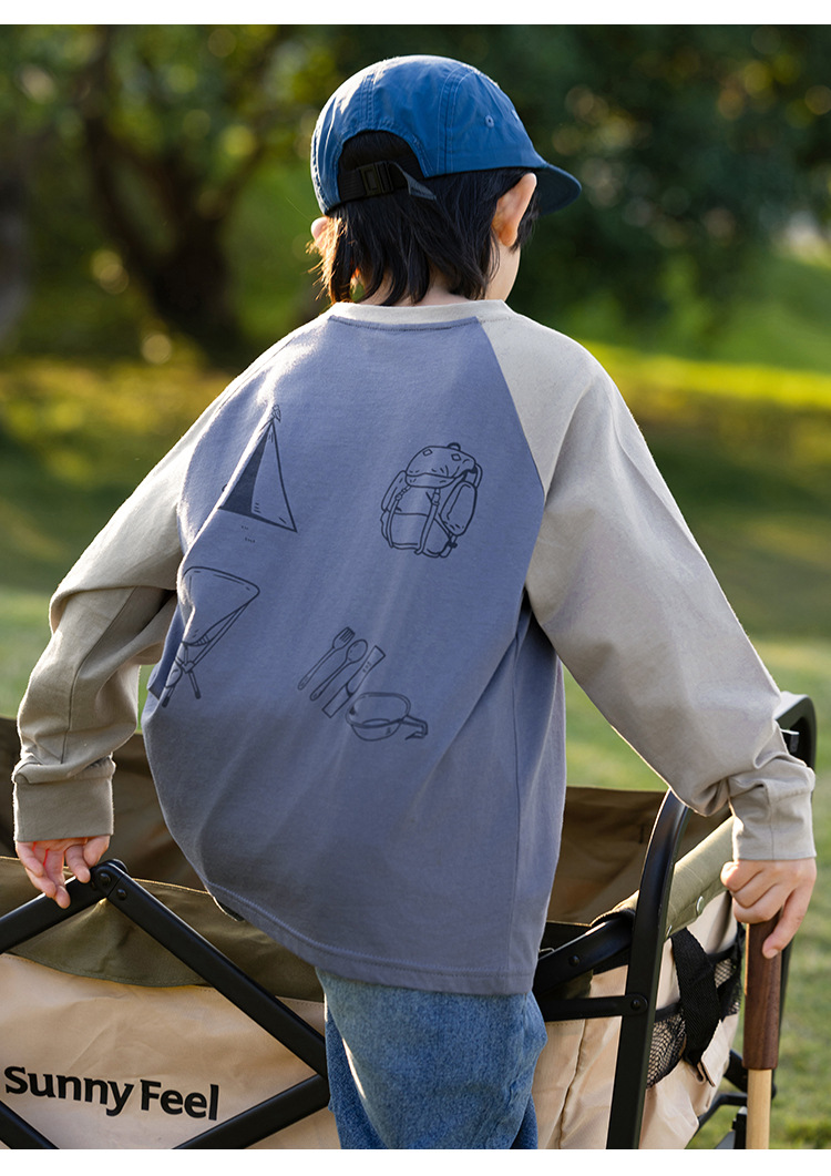 EK 아동복 마운틴 스타일 야외 소년 스티칭 대조 어깨 긴팔 티셔츠 크고 큰 어린이 서양식 베이스 탑스토어 가기