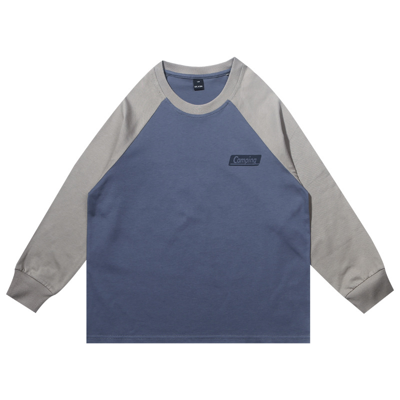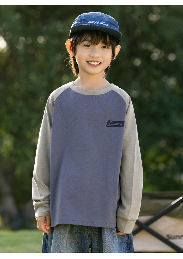 EK 아동복 마운틴 스타일 야외 소년 스티칭 대조 어깨 긴팔 티셔츠 크고 큰 어린이 서양식 베이스 탑