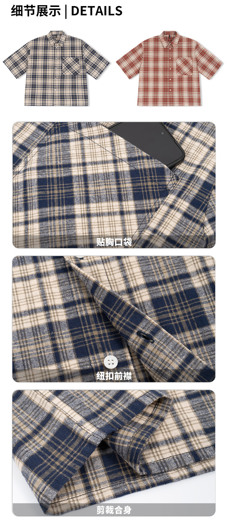 ETAI 남성복 | 여름 커플 스타일 트렌디 브랜드 박시 셔츠 남성 캐주얼 아우터 짧은 격자 무늬 반소매 셔츠스토어 가기