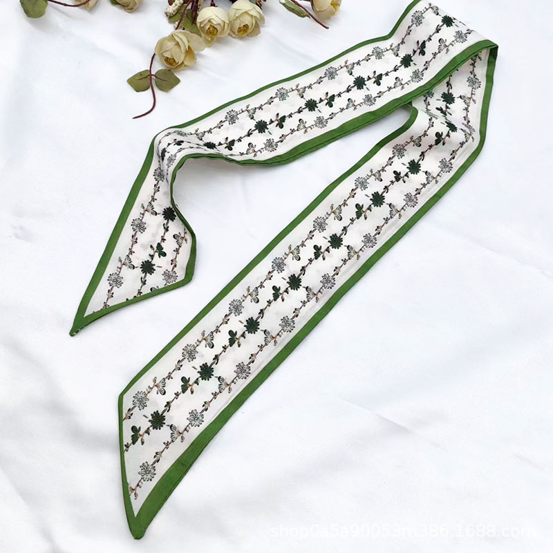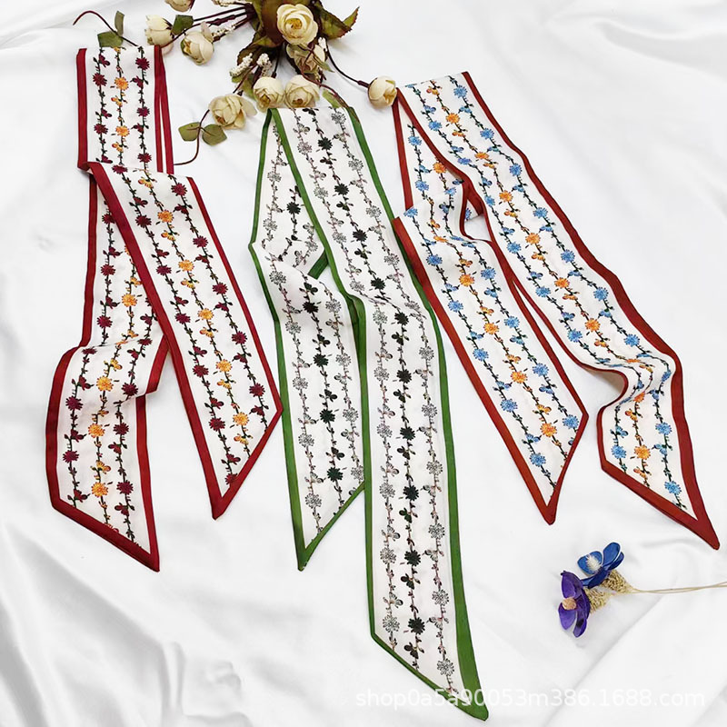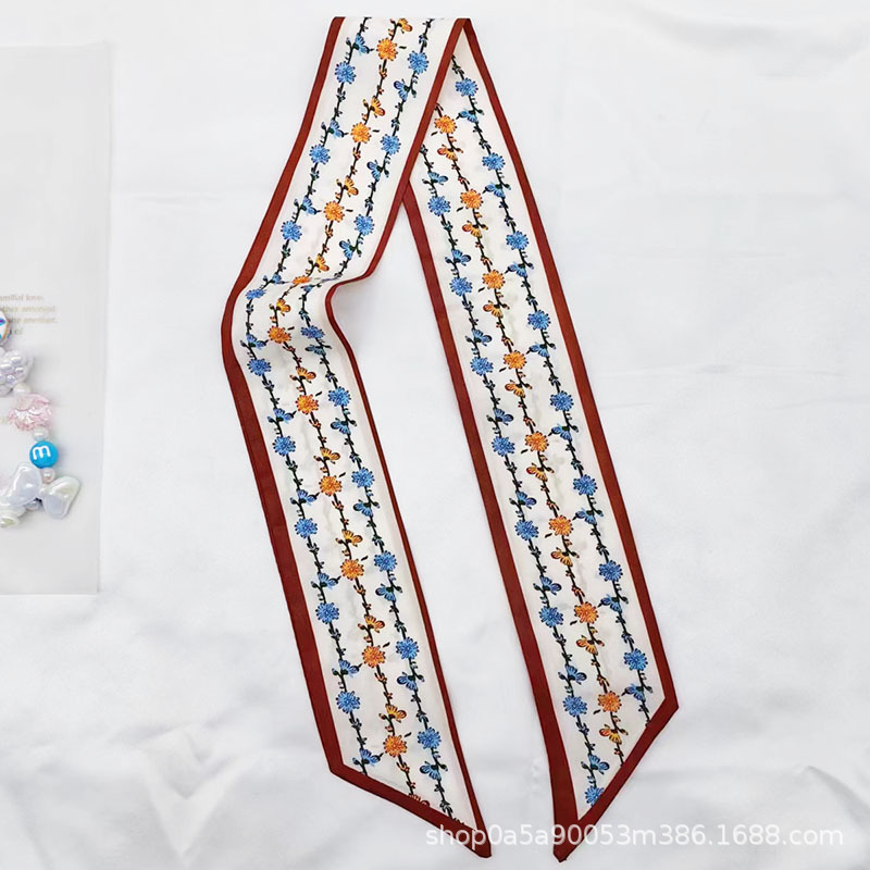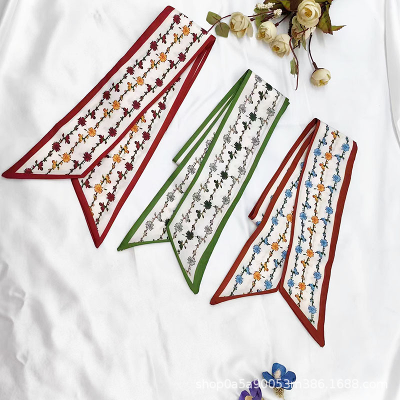 새로운 스타일 좁은 긴 작은 실크 스카프 여성 한국식 올매치 국화 꽃 넥타이 헤어 넥타이 가방 동반 손 선물 헤어 벨트 리본 스카프스토어 가기